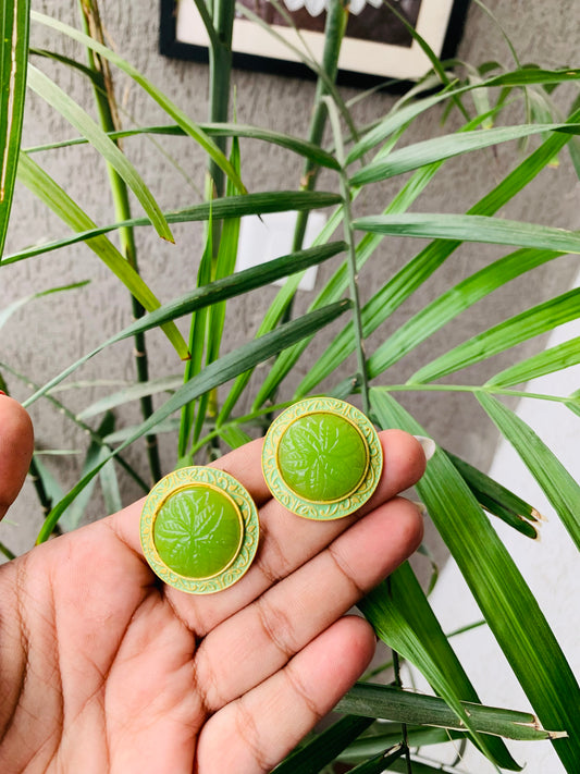 Green Leaf Carved Stud Earrings
