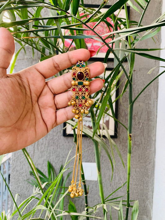 Kashmiri Ruby Emerald Green Golden Long Ghungroo Earrings