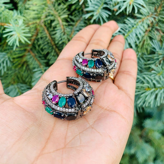 Multicolor American Diamond Hoop Earrings (Baalis)