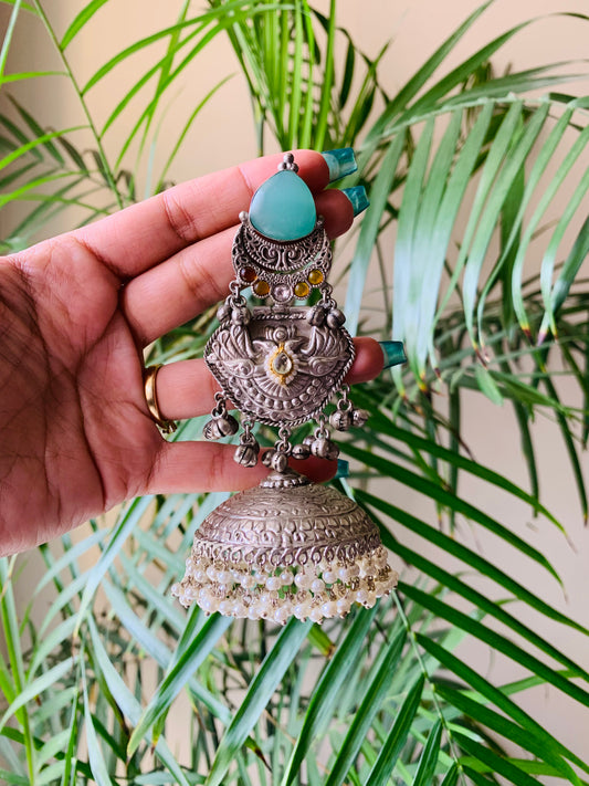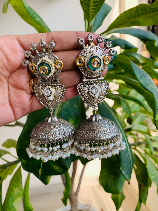 Jumbo Peacock Jaipuri Jhumka Earrings
