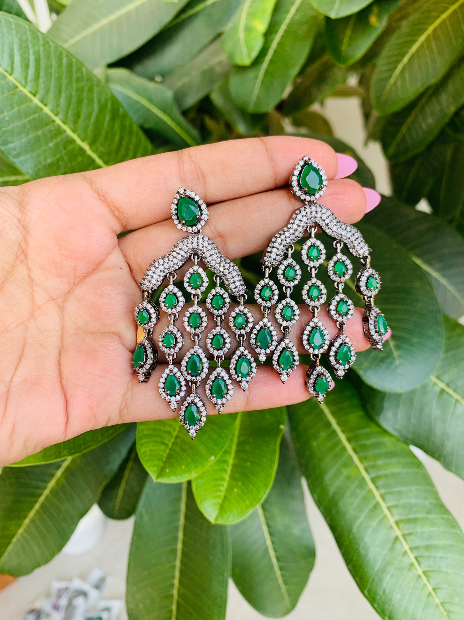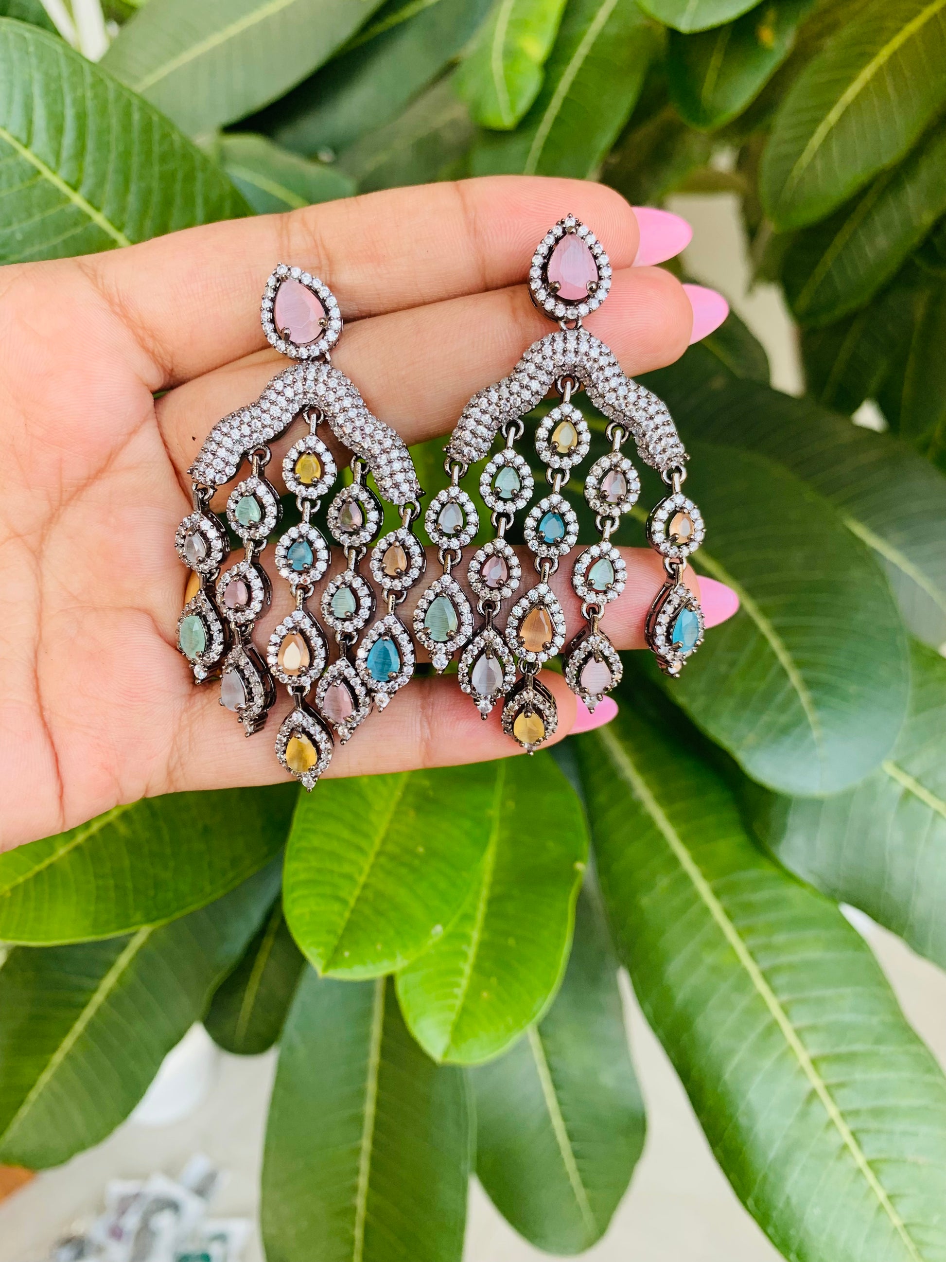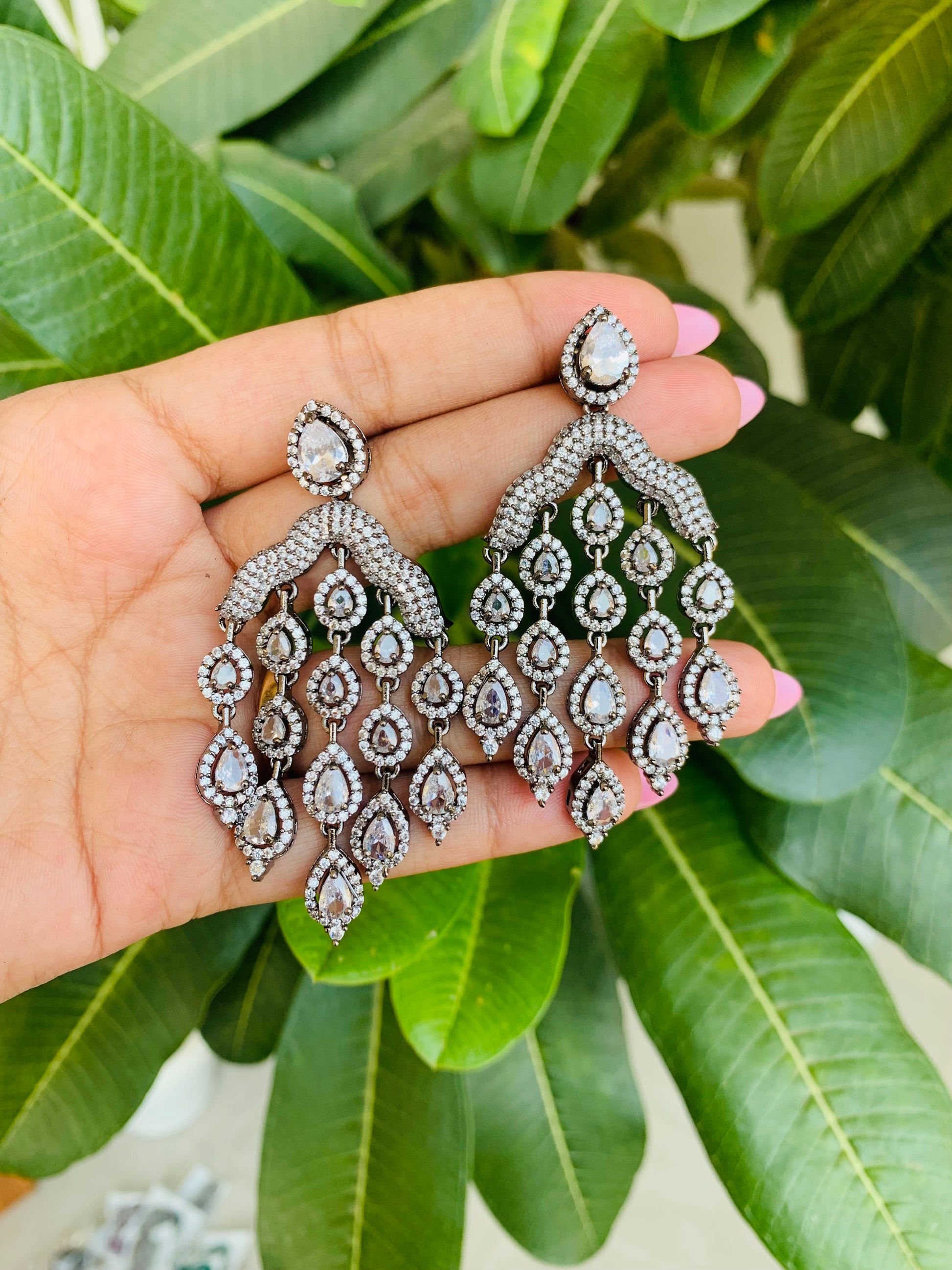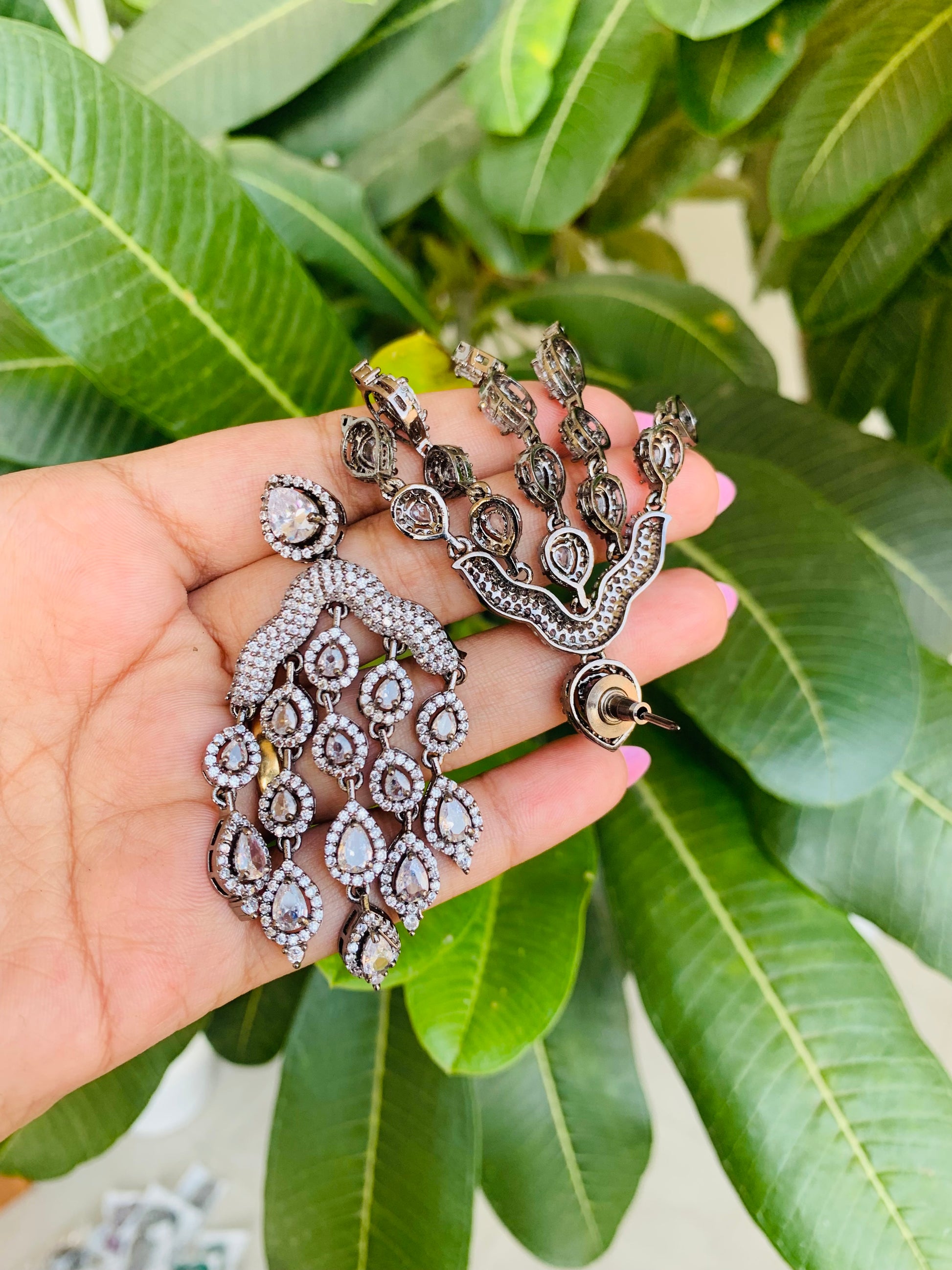Elevate your style with our 5 Drop American Diamond Earrings – Designer Finish, a dazzling piece designed to catch every eye. These earrings feature five meticulously crafted American diamond drops that shimmer with brilliance, giving you an elegant cascade effect that’s perfect for special occasions or adding sparkle to everyday looks.