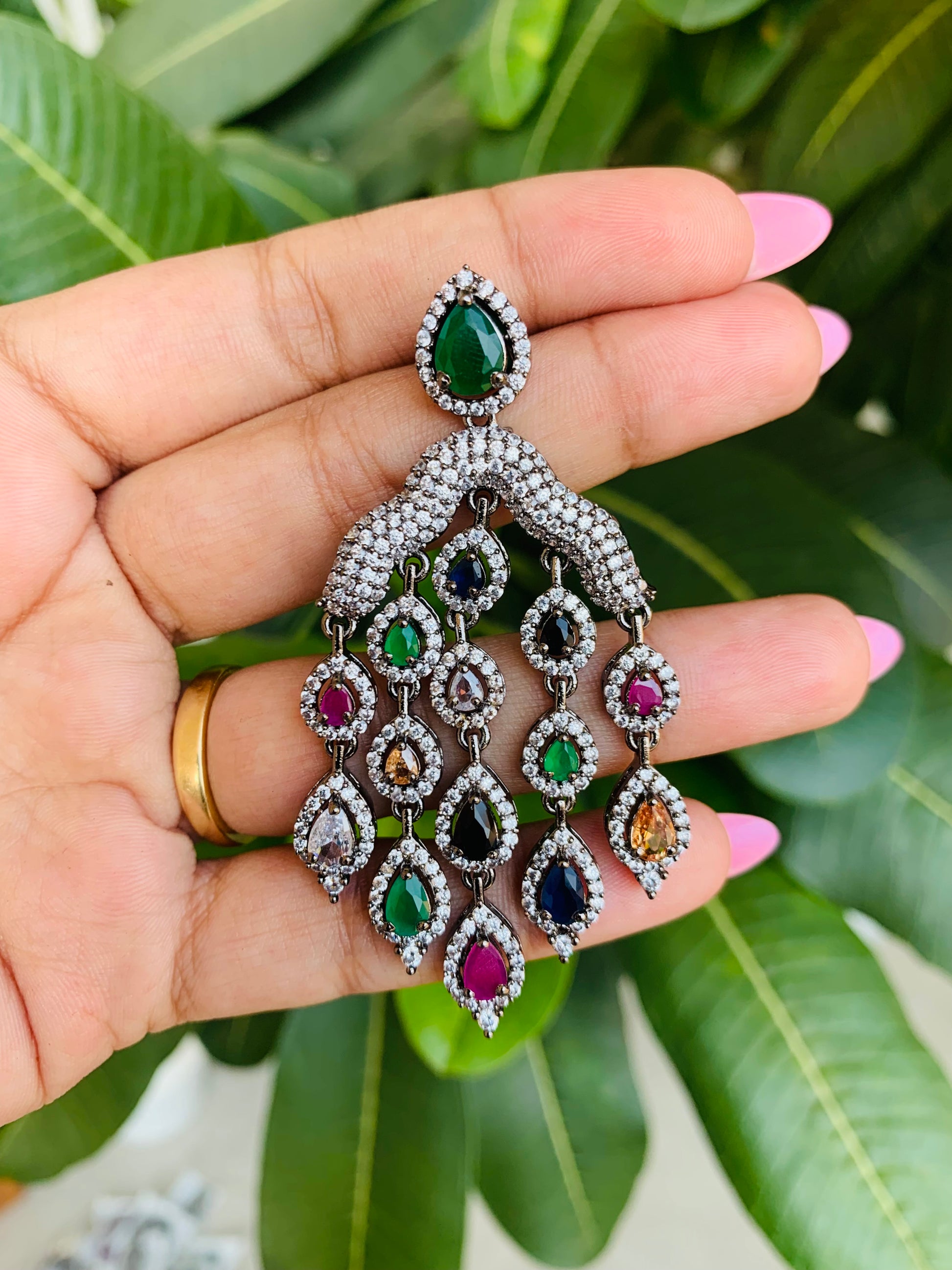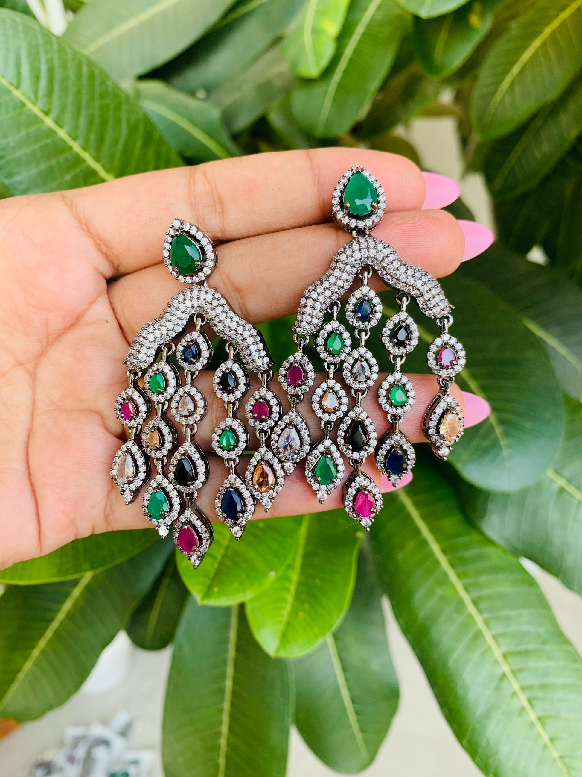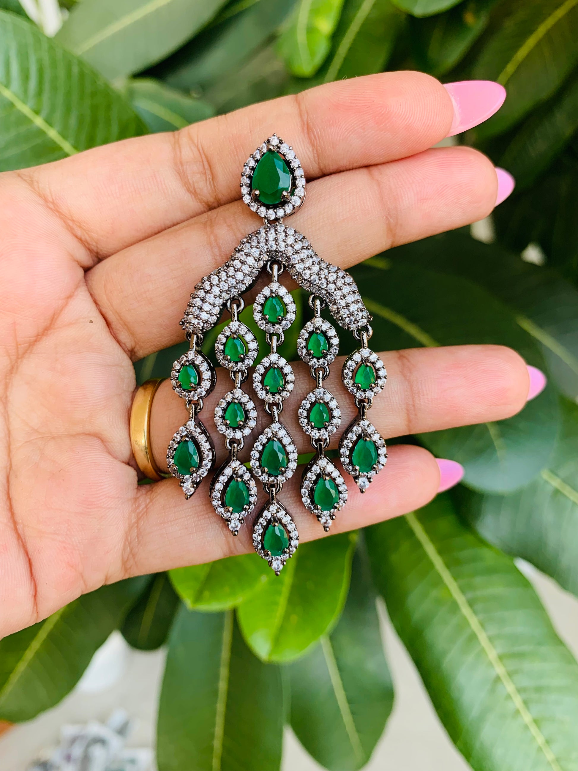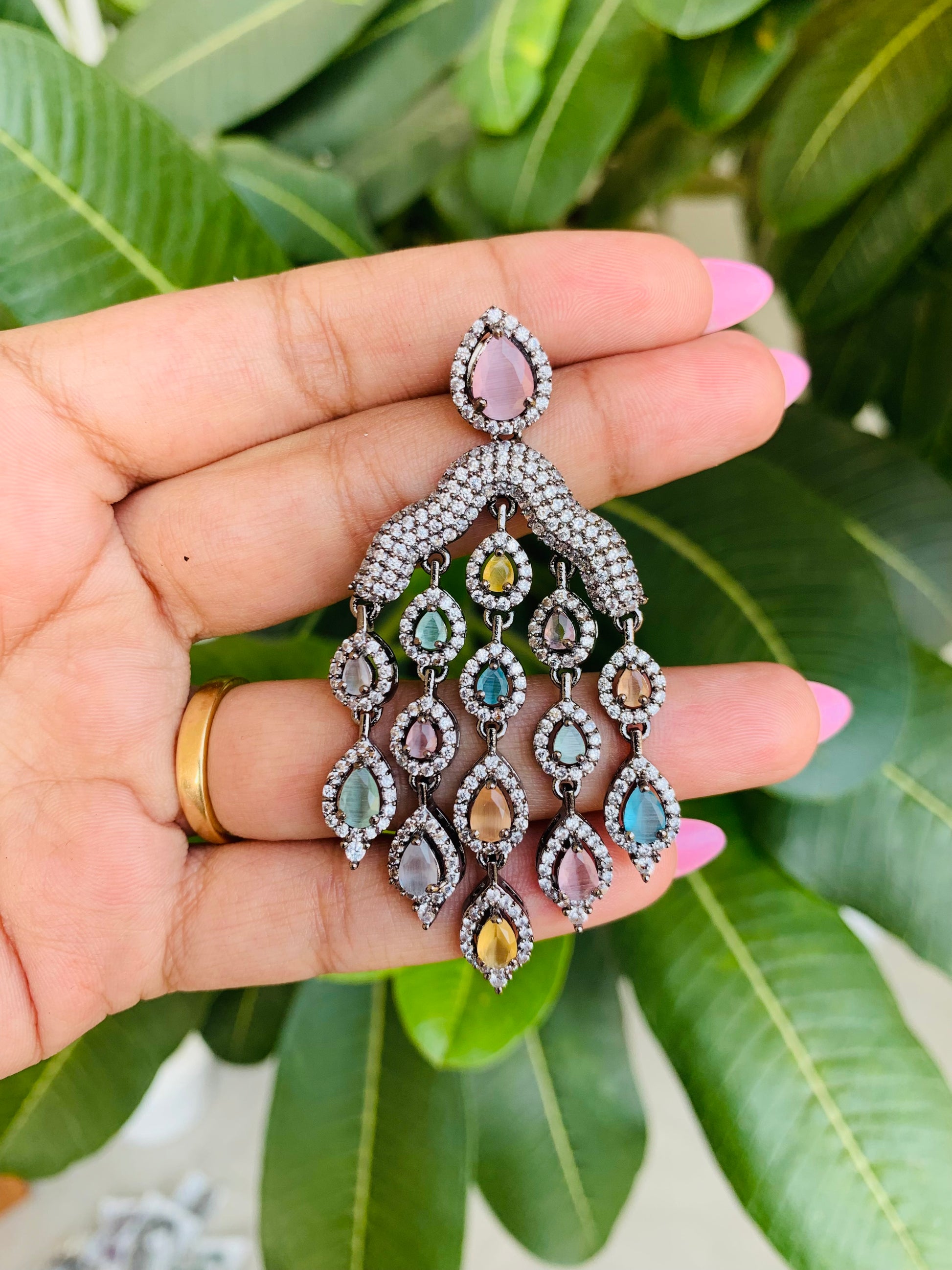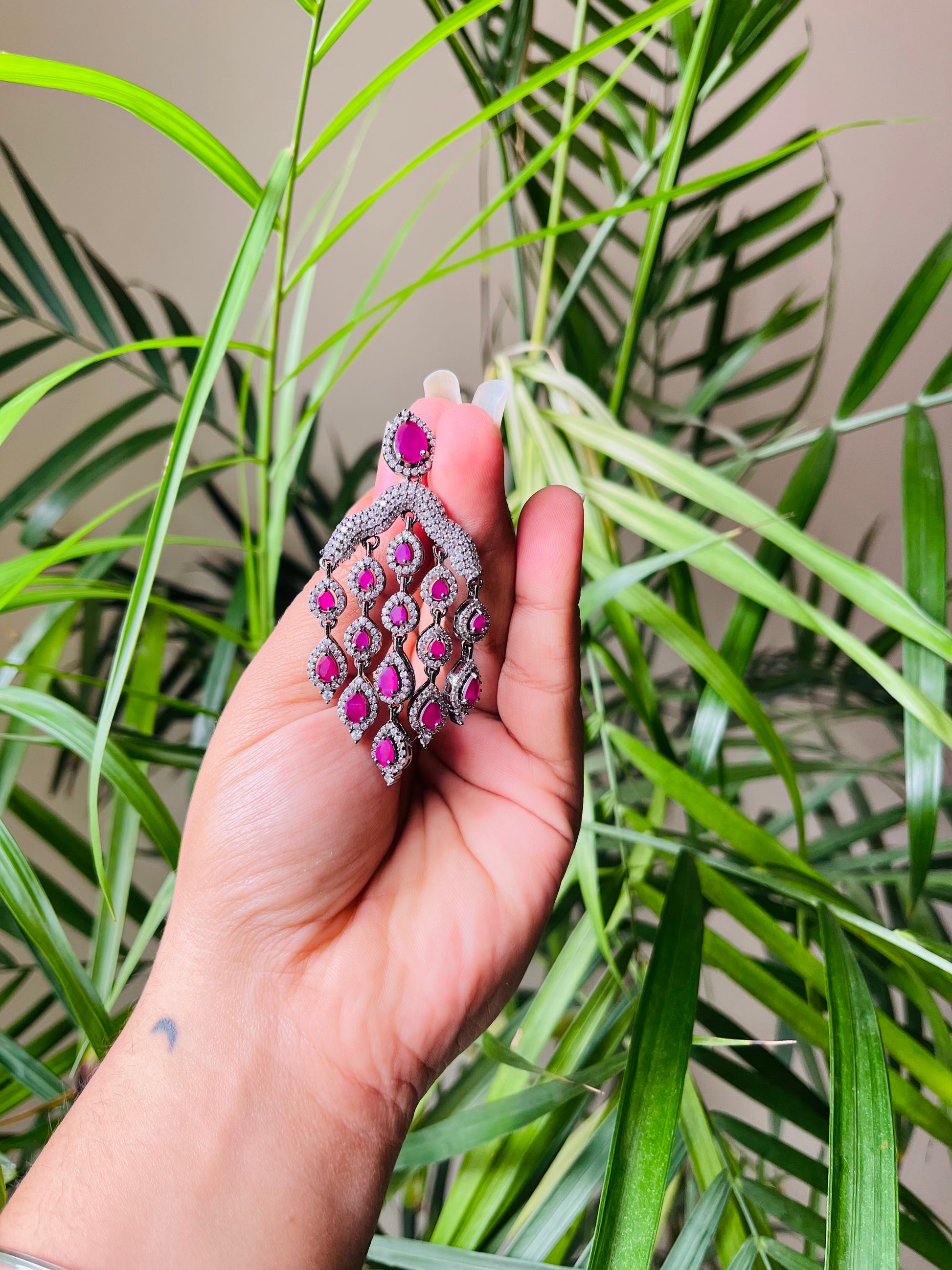 Elevate your style with our 5 Drop American Diamond Earrings – Designer Finish, a dazzling piece designed to catch every eye. These earrings feature five meticulously crafted American diamond drops that shimmer with brilliance, giving you an elegant cascade effect that’s perfect for special occasions or adding sparkle to everyday looks.
