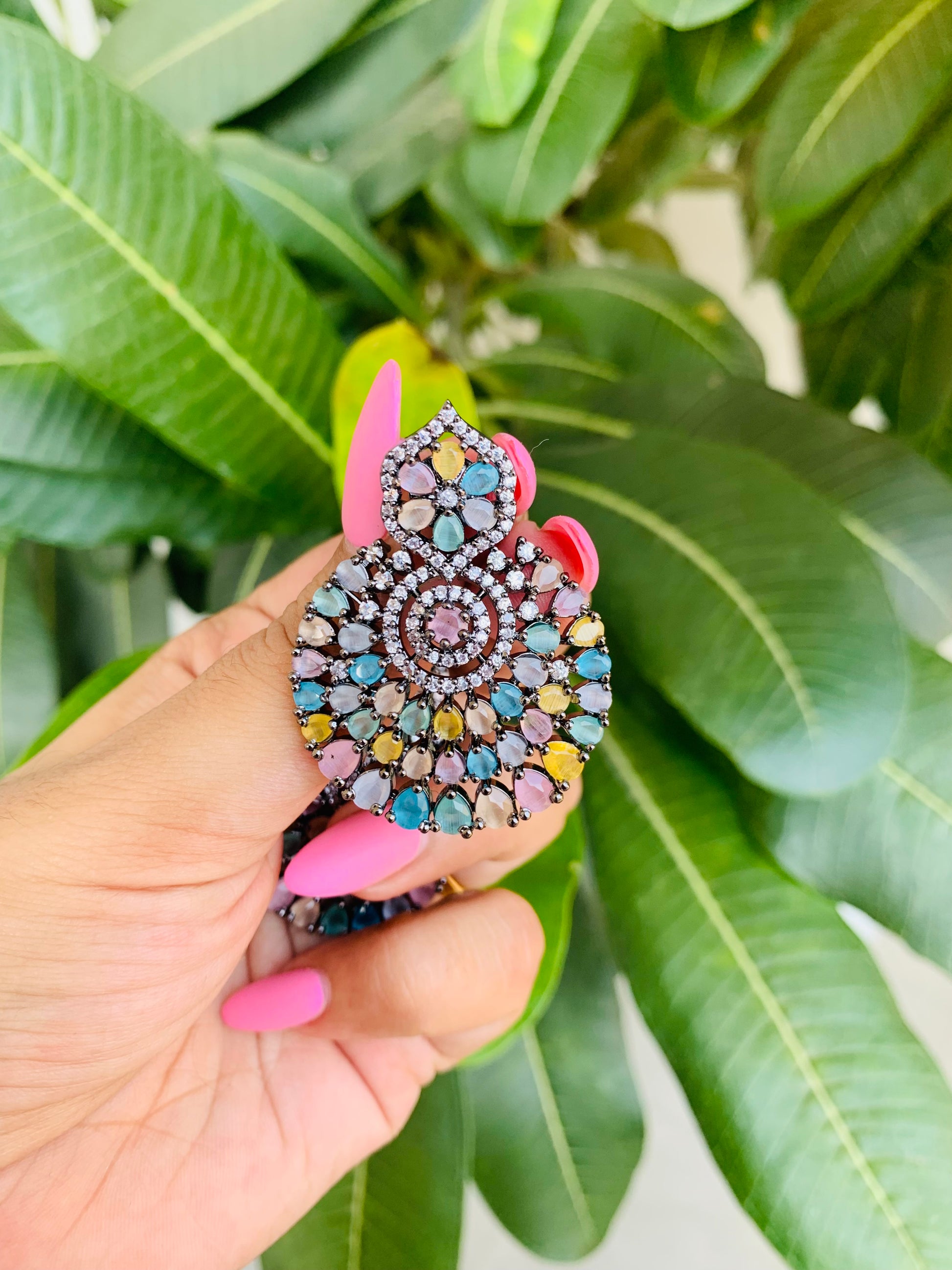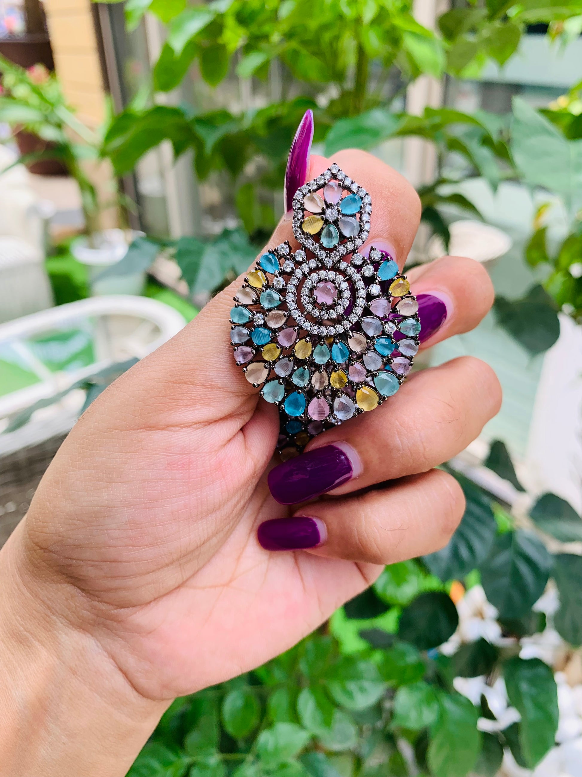 This piece is one of the hot selling items at our store, we constantly restock it, yet are never able to fulfill the demand. These studs are made with so much detailing and are available in some very beautiful colors. The design and size is so wearable and compliments both Western and Indo-western outfits.