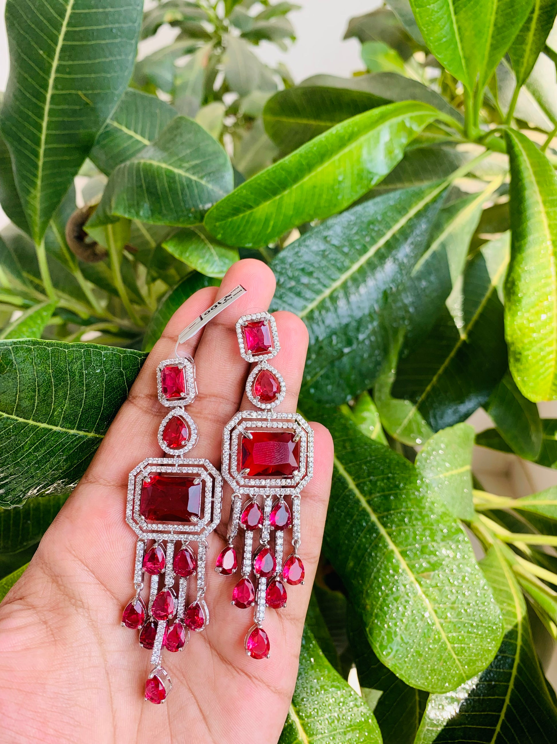 Expertly crafted with American Diamond and Swarovski crystal, these long danglers add a touch of elegance to any outfit. The sparkling gems catch the light and are sure to make a statement. Perfect for a formal event or a night out.