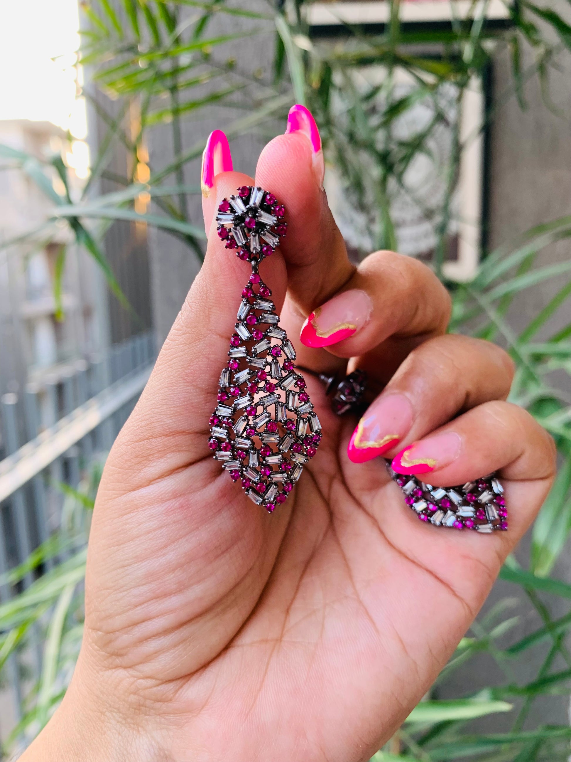 Elevate your elegance with these Baguette Stones Dangler earrings, crafted to showcase premium-quality baguette stones that deliver a refined sparkle. Their elongated design enhances facial contours, adding sophistication to any ensemble. Ideal for formal occasions or elevating everyday wear, these earrings combine expert craftsmanship with timeless style for a statement that lasts.