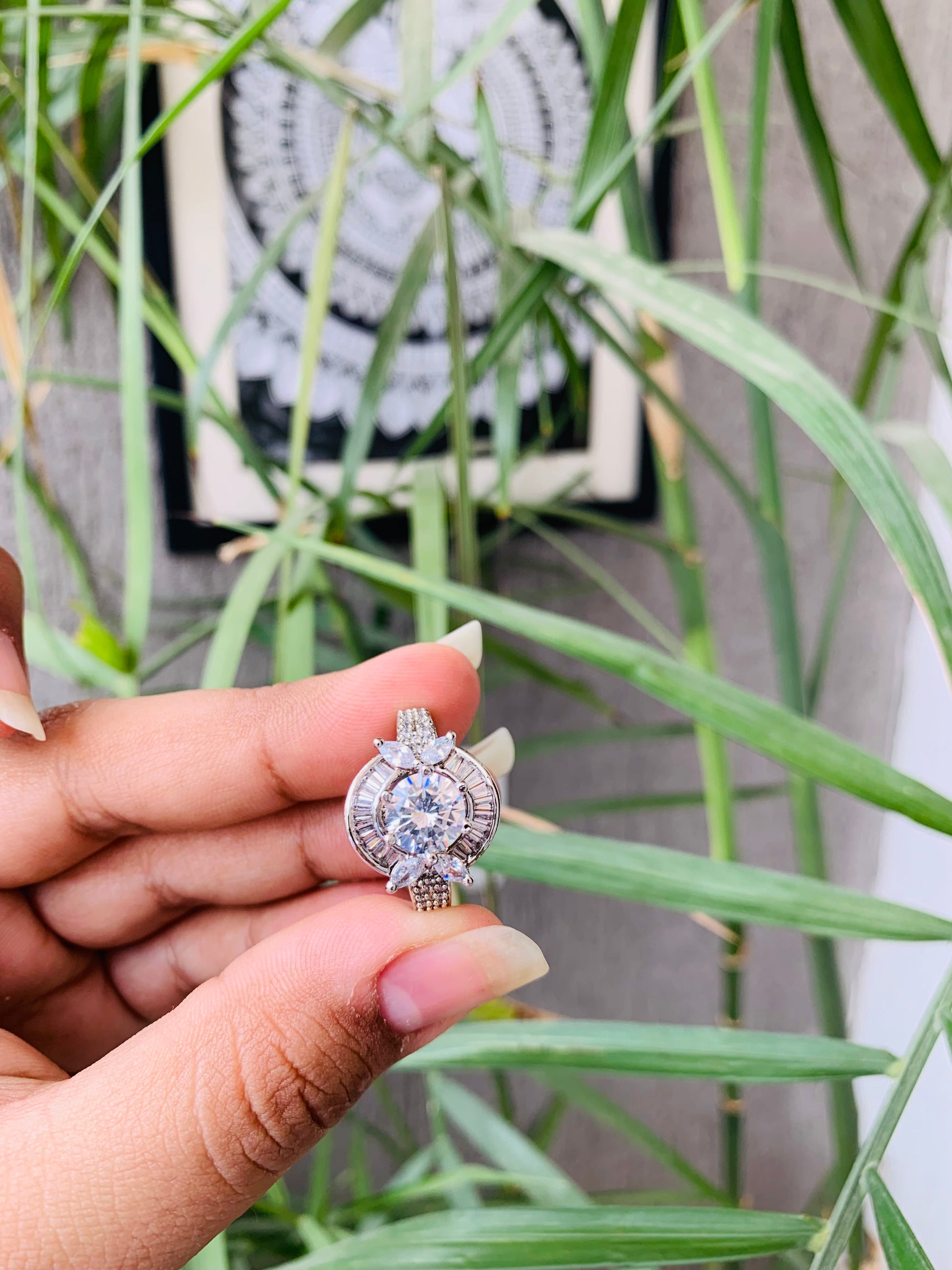 Crafted with precision and expert design, this Big Size Solitaire Ring features an elegant American Diamond Design. The perfect blend of style and sophistication, this ring is sure to make a statement. Its large size and sparkling diamonds will elevate any outfit, making it a must-have for any fashion-forward individual.