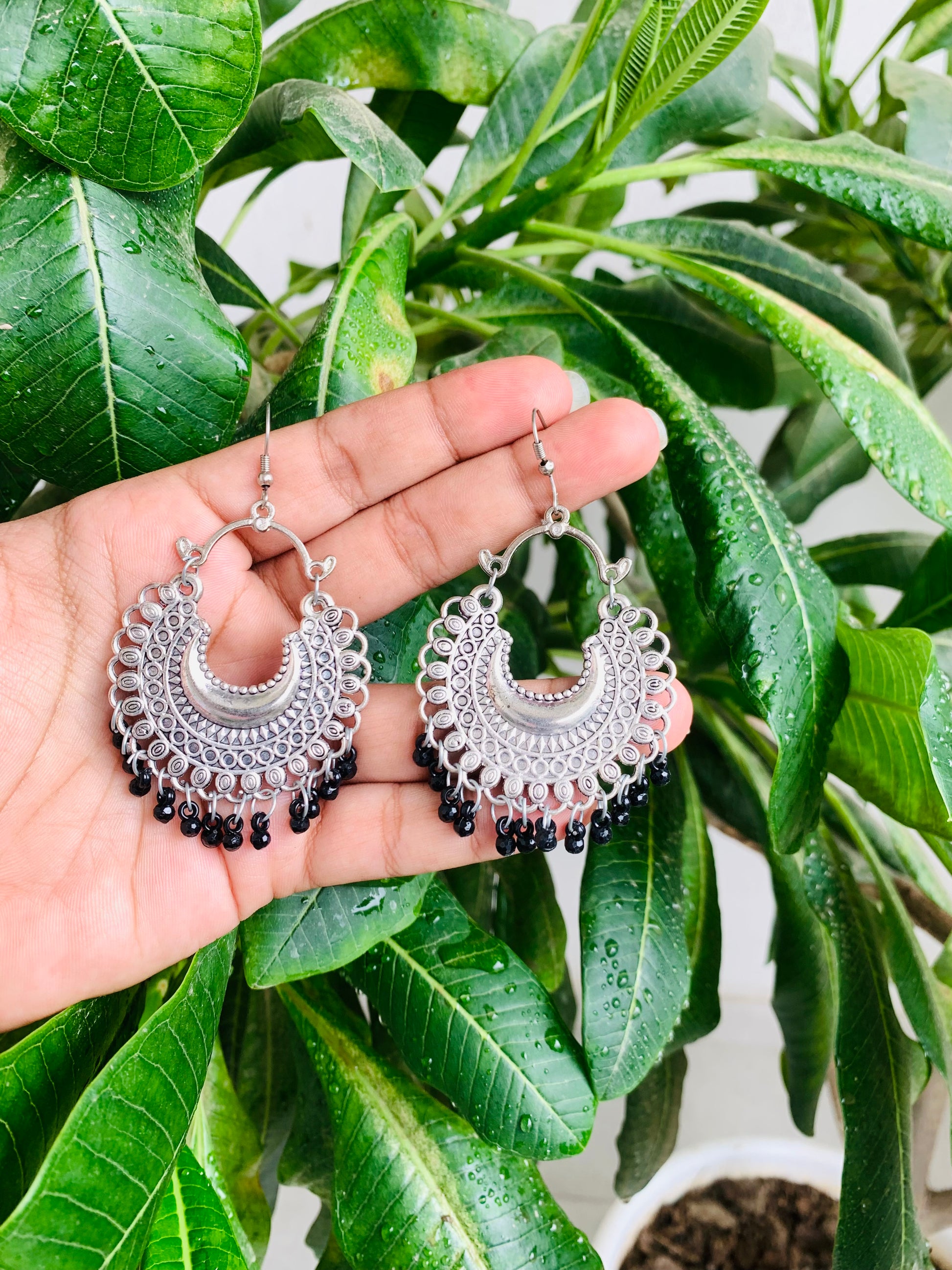 Discover the elegance of our Black Drops ChandBaali earrings. Made of lightweight and small black beads, these earrings are perfect for adding a touch of sophistication to any outfit. With a classic and timeless design, they are a must-have accessory for any occasion.