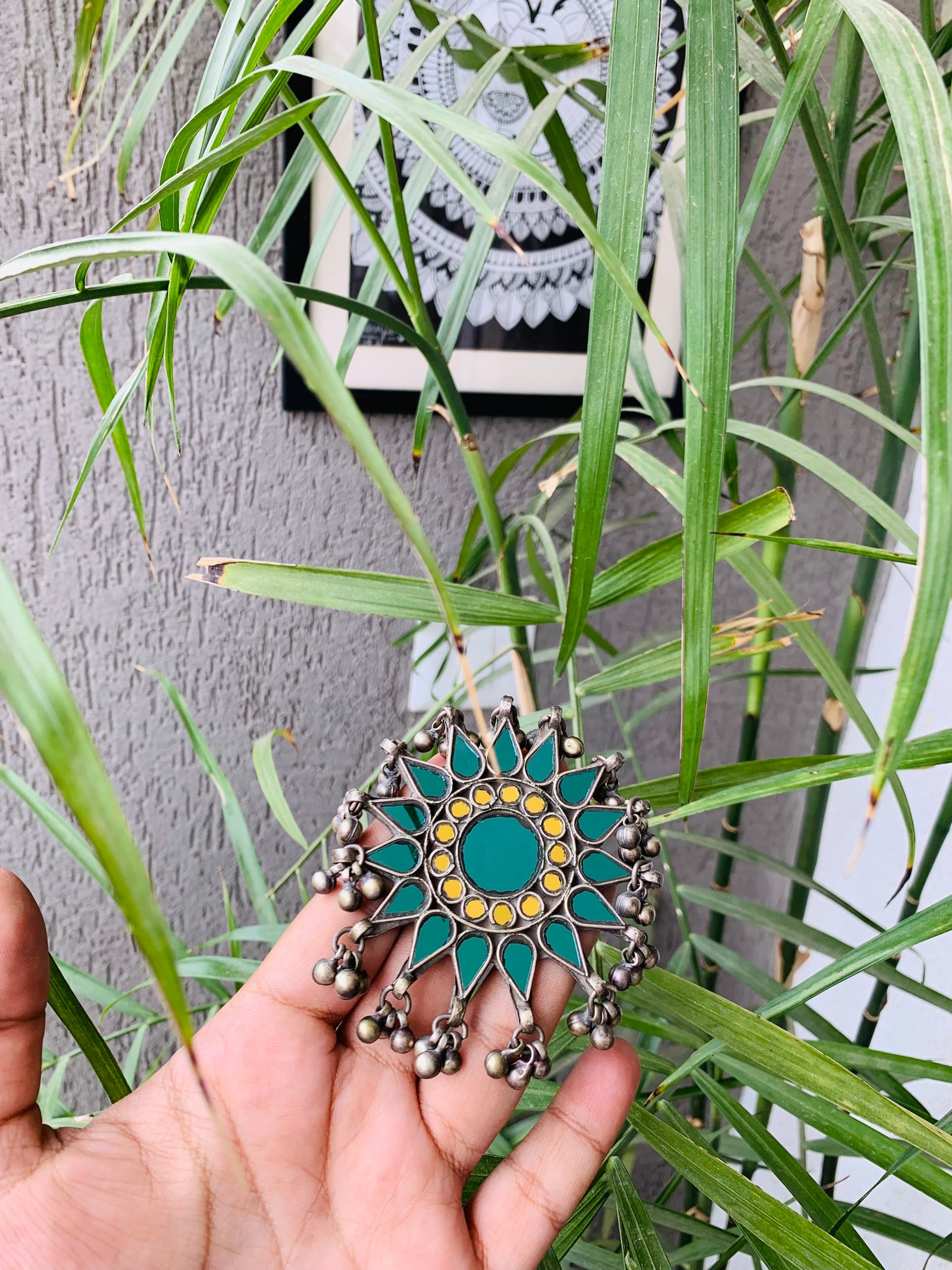 This Boho Bloom Teal & Yellow Ring features a beautiful combination of teal and yellow glass, enhanced by its unique afghani design. Perfect for adding a bohemian touch to any outfit. Elevate your style with this stunning piece.