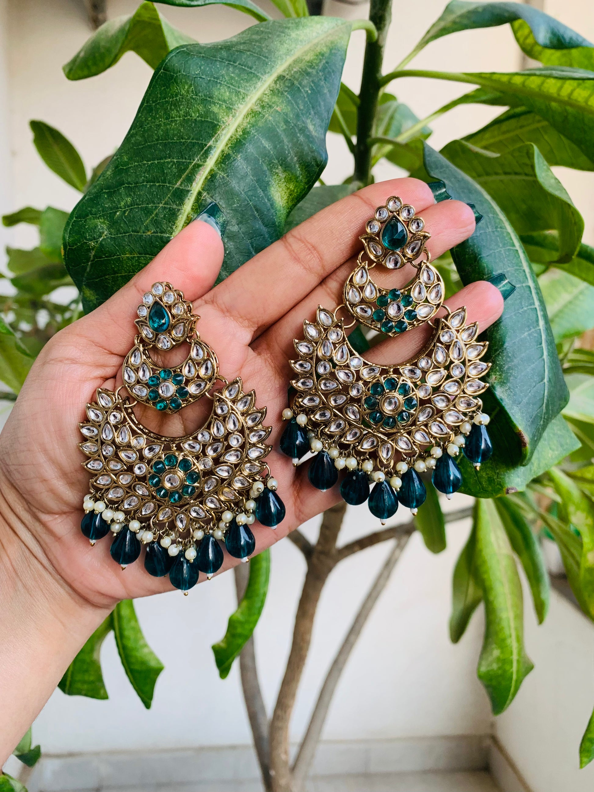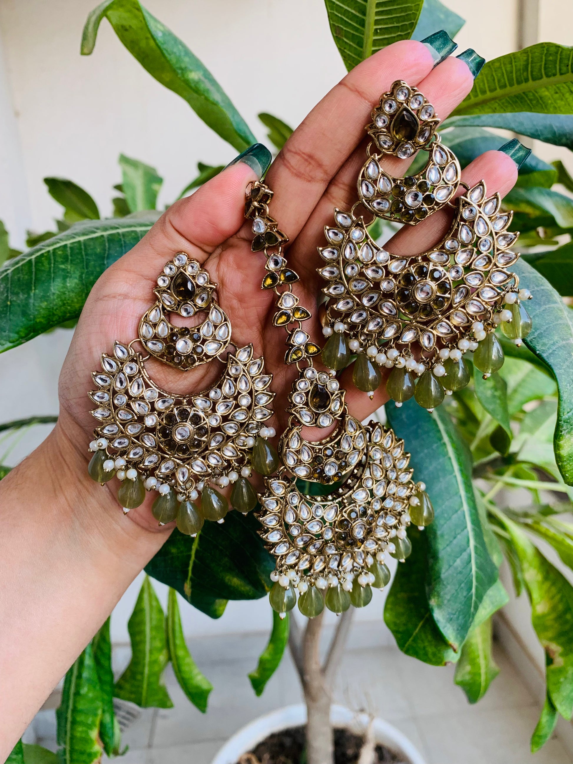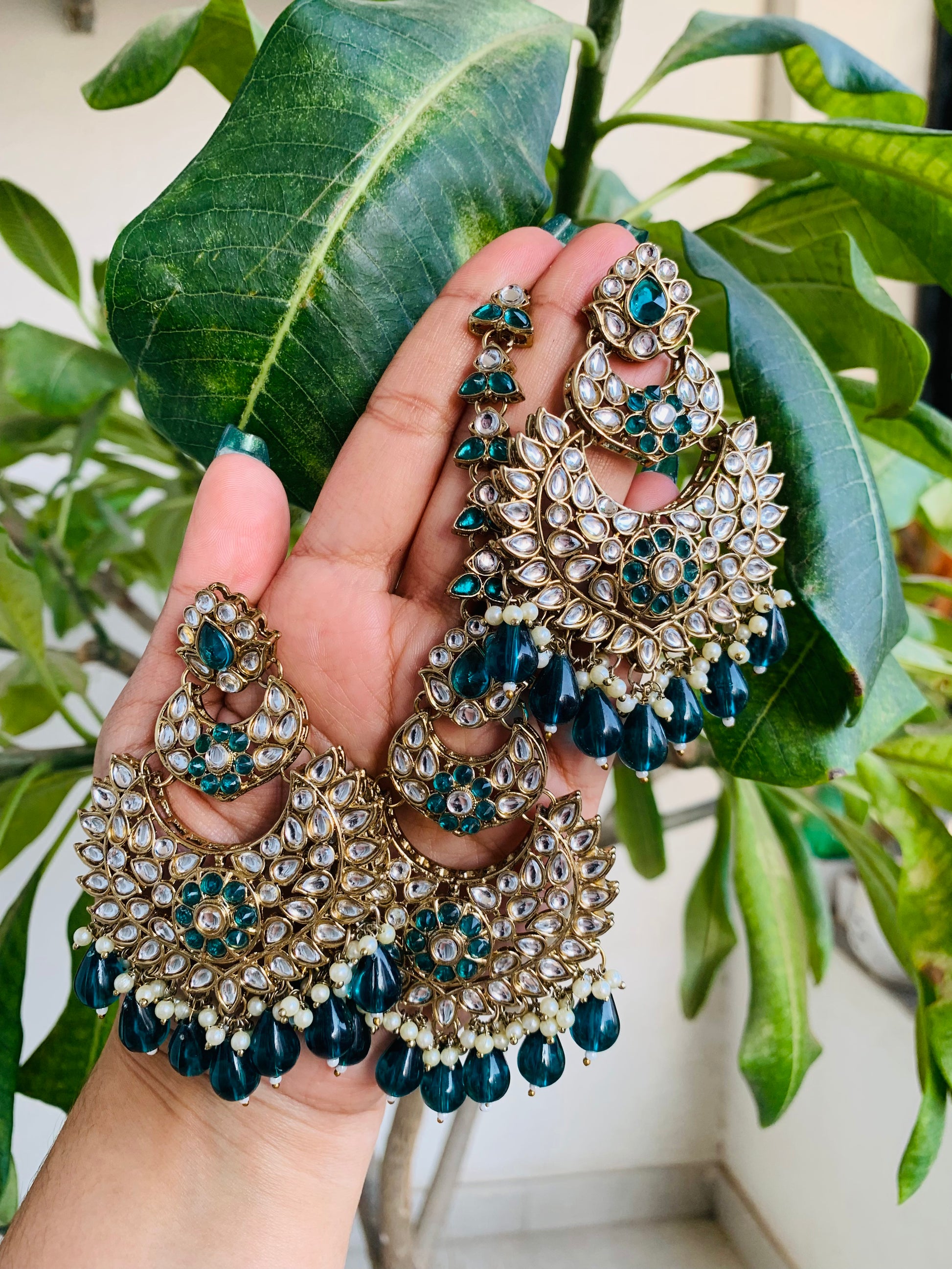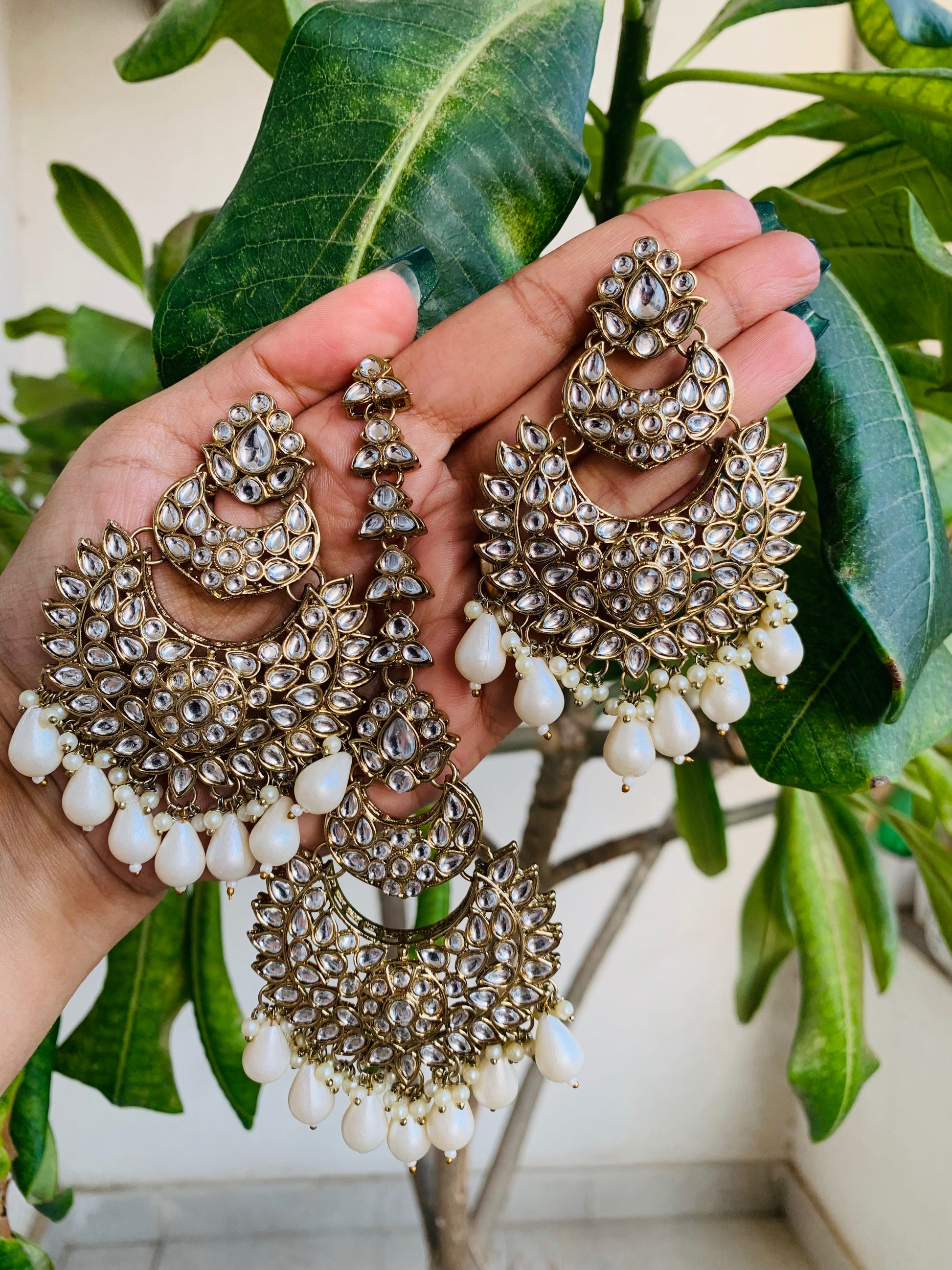 Discover elegance and tradition with our ChaandBaali earrings complemented by a Maang Tika. Adorned with Kundan, these traditional accessories add a touch of sophistication to any outfit. Perfect for special occasions.