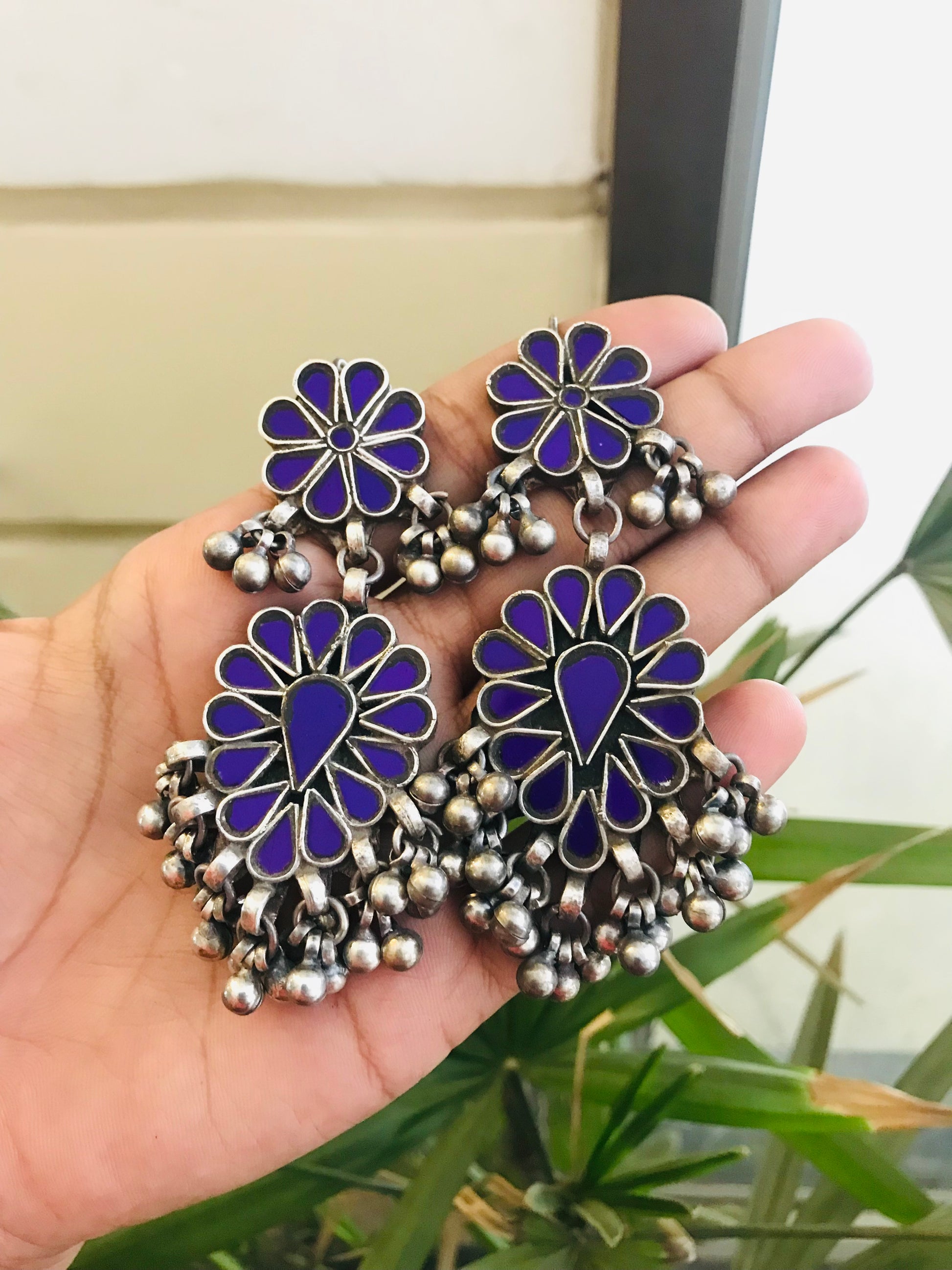 100% handcrafted mirror earrings in silver look-alike polish. It is made with a lot of love and precision by skilled artisans.