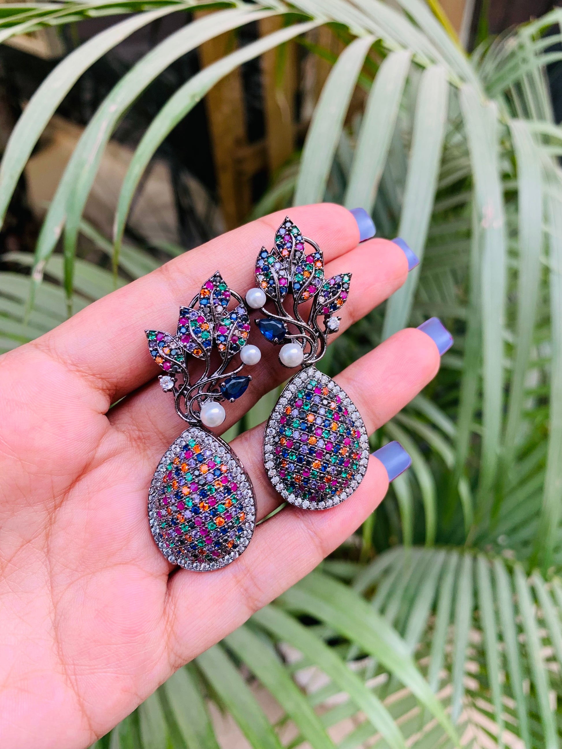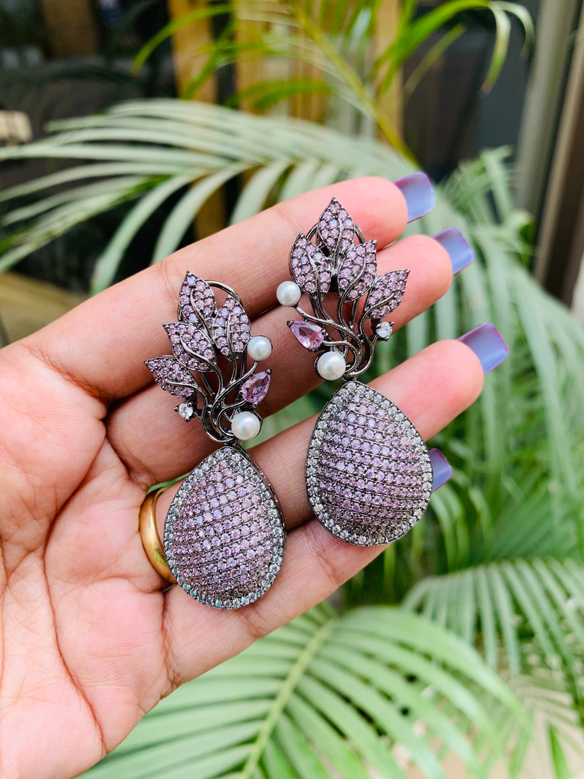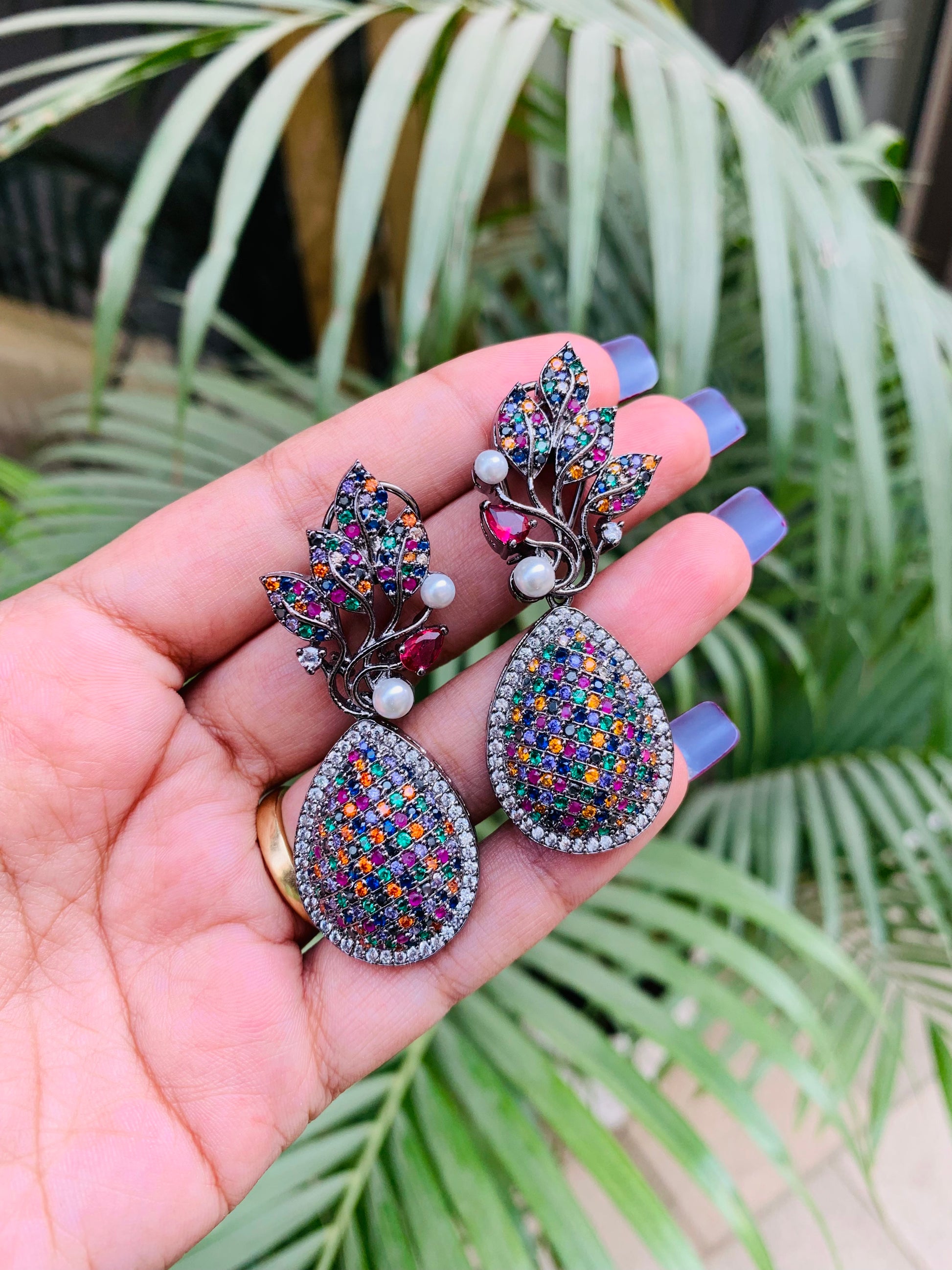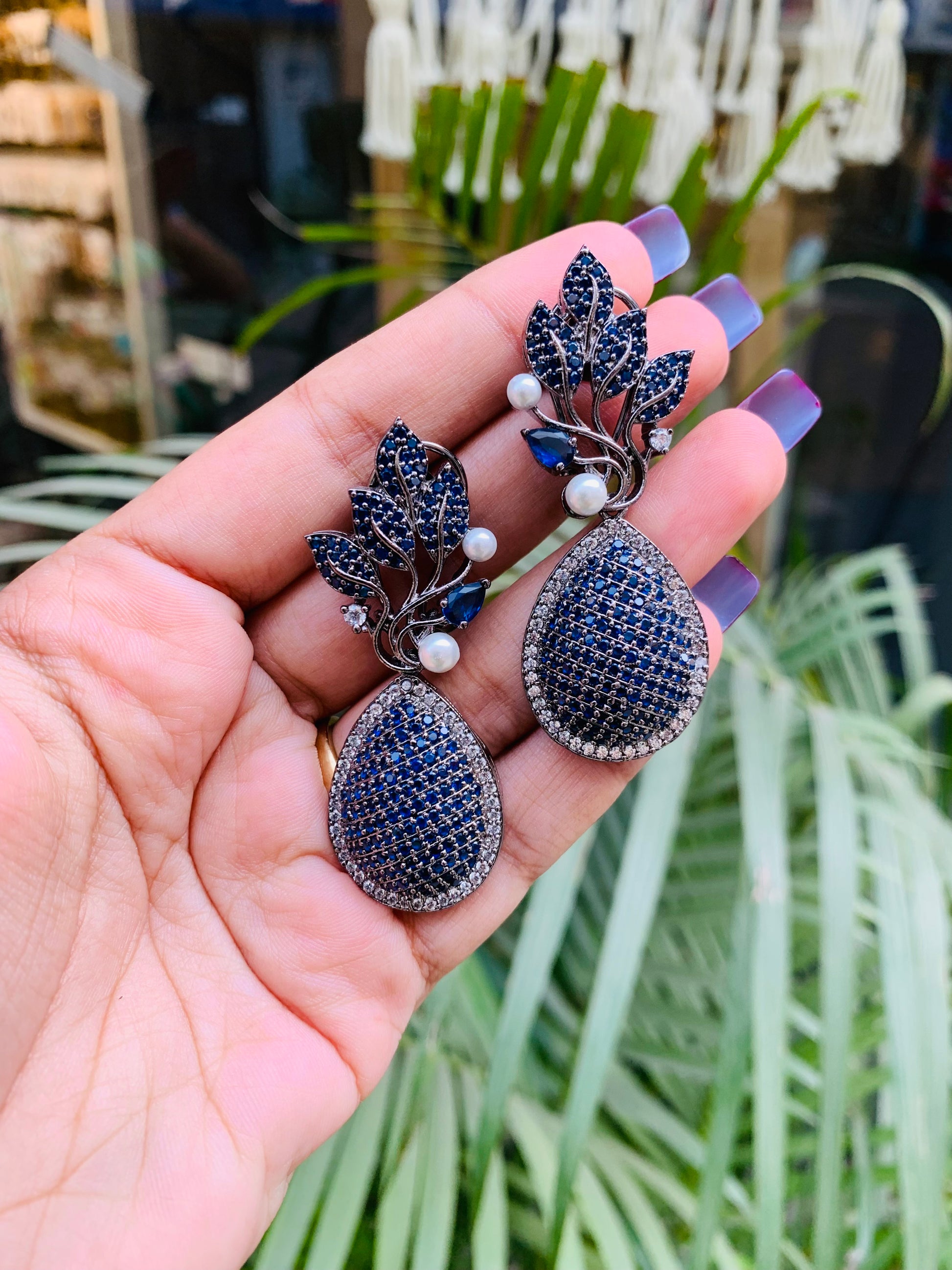 These one-of-a-kind designer studs are the perfect accessory to dress up any look. The drop adds an elegant touch to any outfit. Make a statement and stand out from the crowd with these unique earrings.