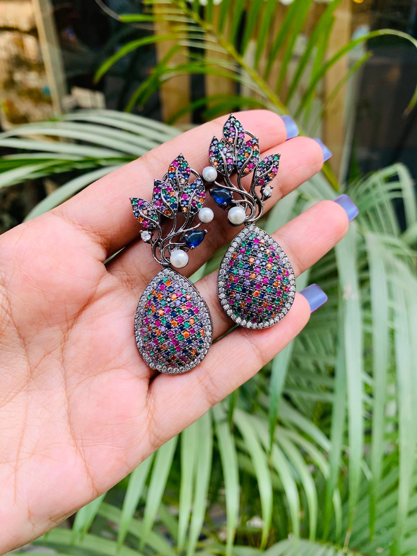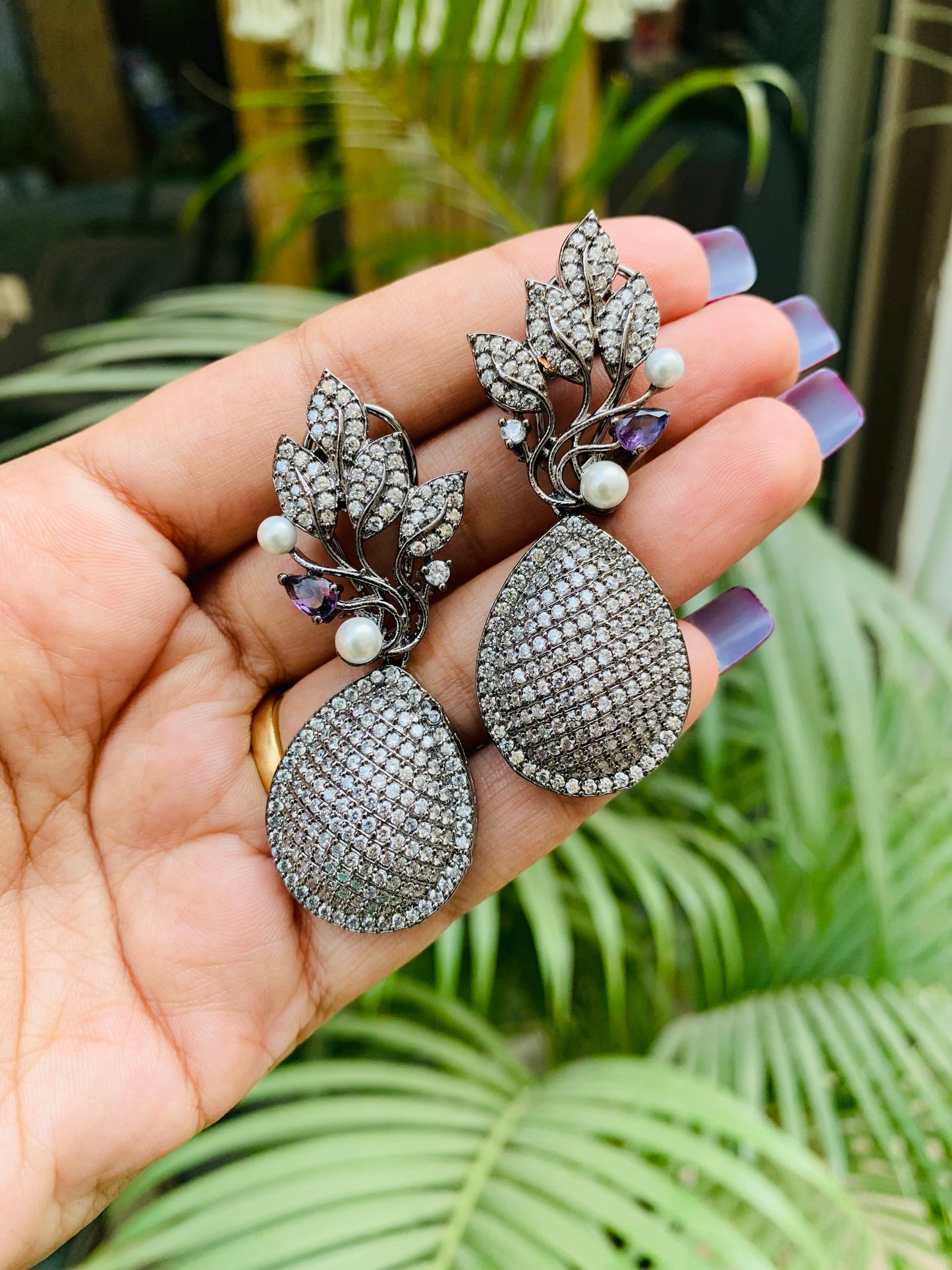 These one-of-a-kind designer studs are the perfect accessory to dress up any look. The drop adds an elegant touch to any outfit. Make a statement and stand out from the crowd with these unique earrings.