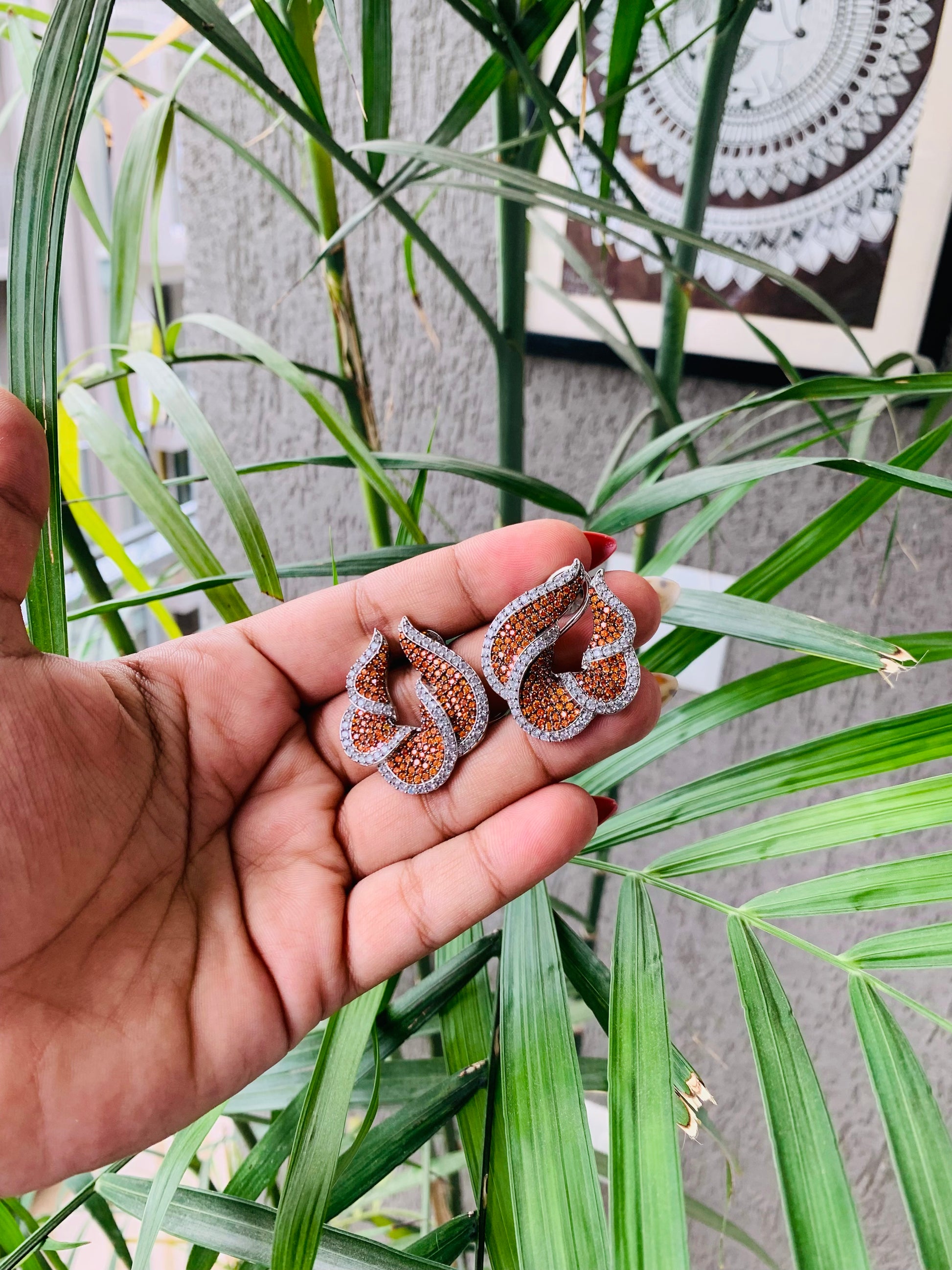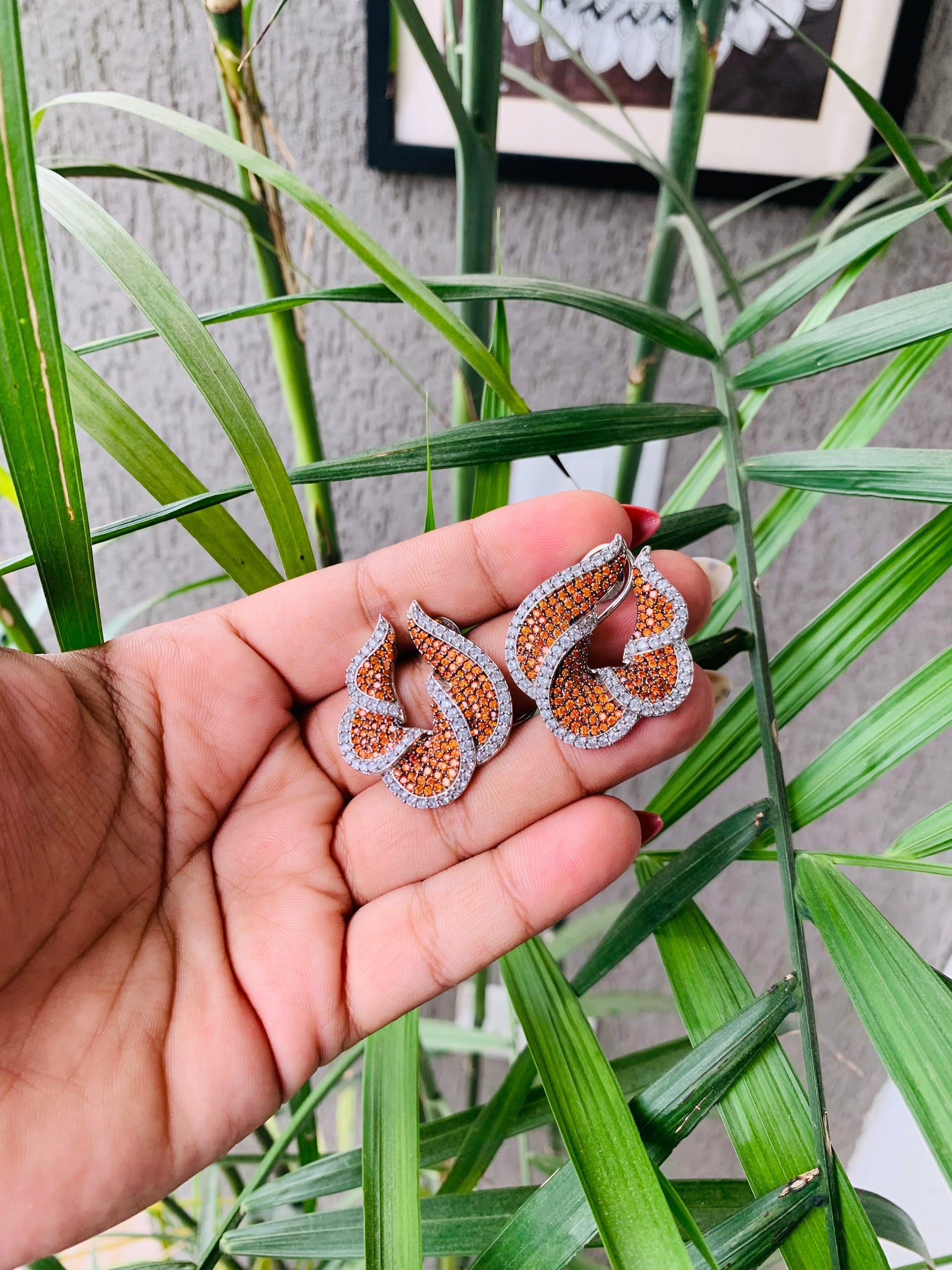 These Elegant Orange & White Stone Twist Earrings feature delicate flower-shaped design accented with shimmering micro AD stones. The vibrant orange hue adds a refined pop of color, while the twisting structure enhances their sophisticated appeal. Perfect for elevating both formal and festive looks with a touch of expert craftsmanship.