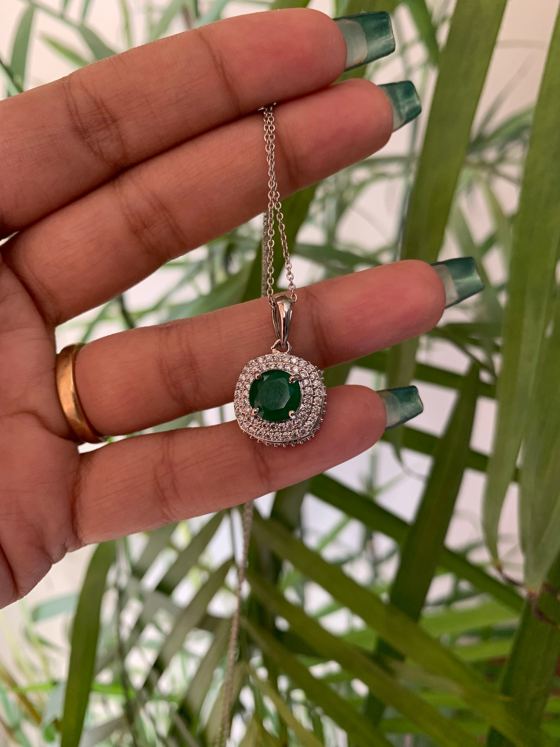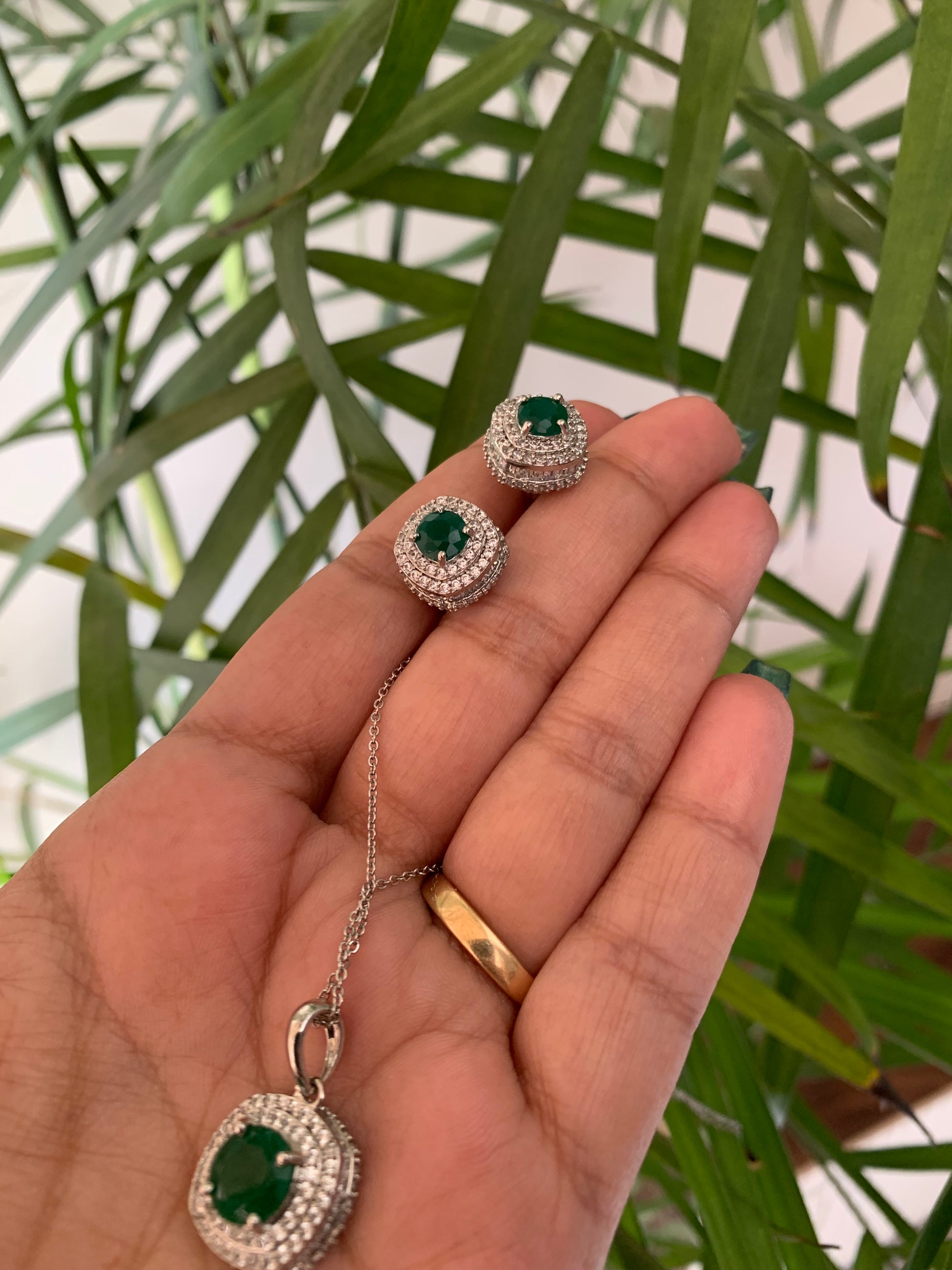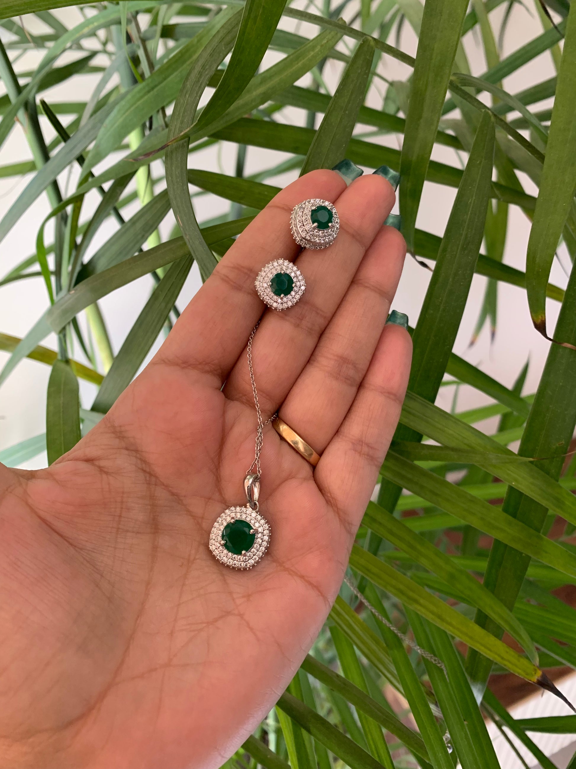 Elevate your style with our Emerald Green Elegant Pendant Set. Crafted with semi-precious stones and American diamonds, this set exudes luxury and elegance. Make a statement with its high-quality design, perfect for any occasion.