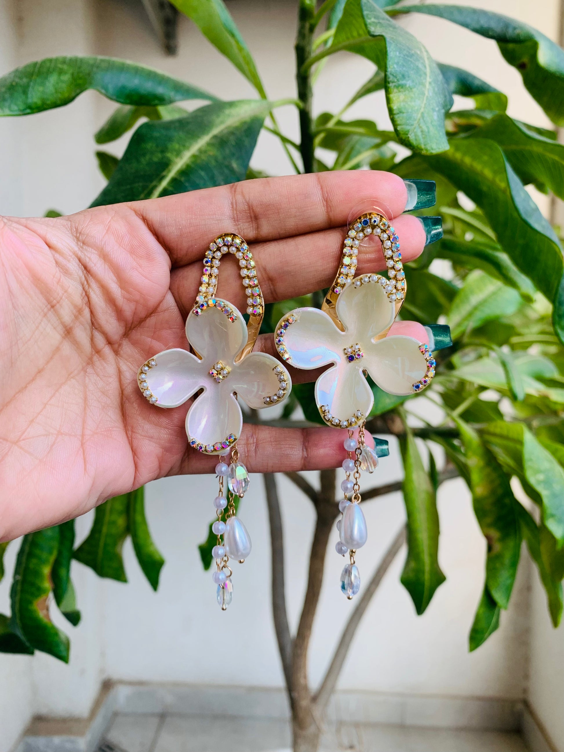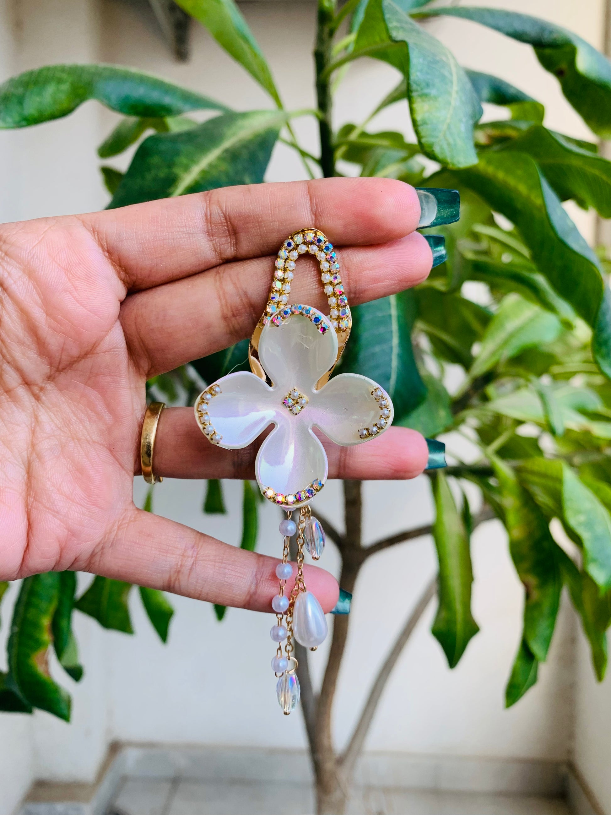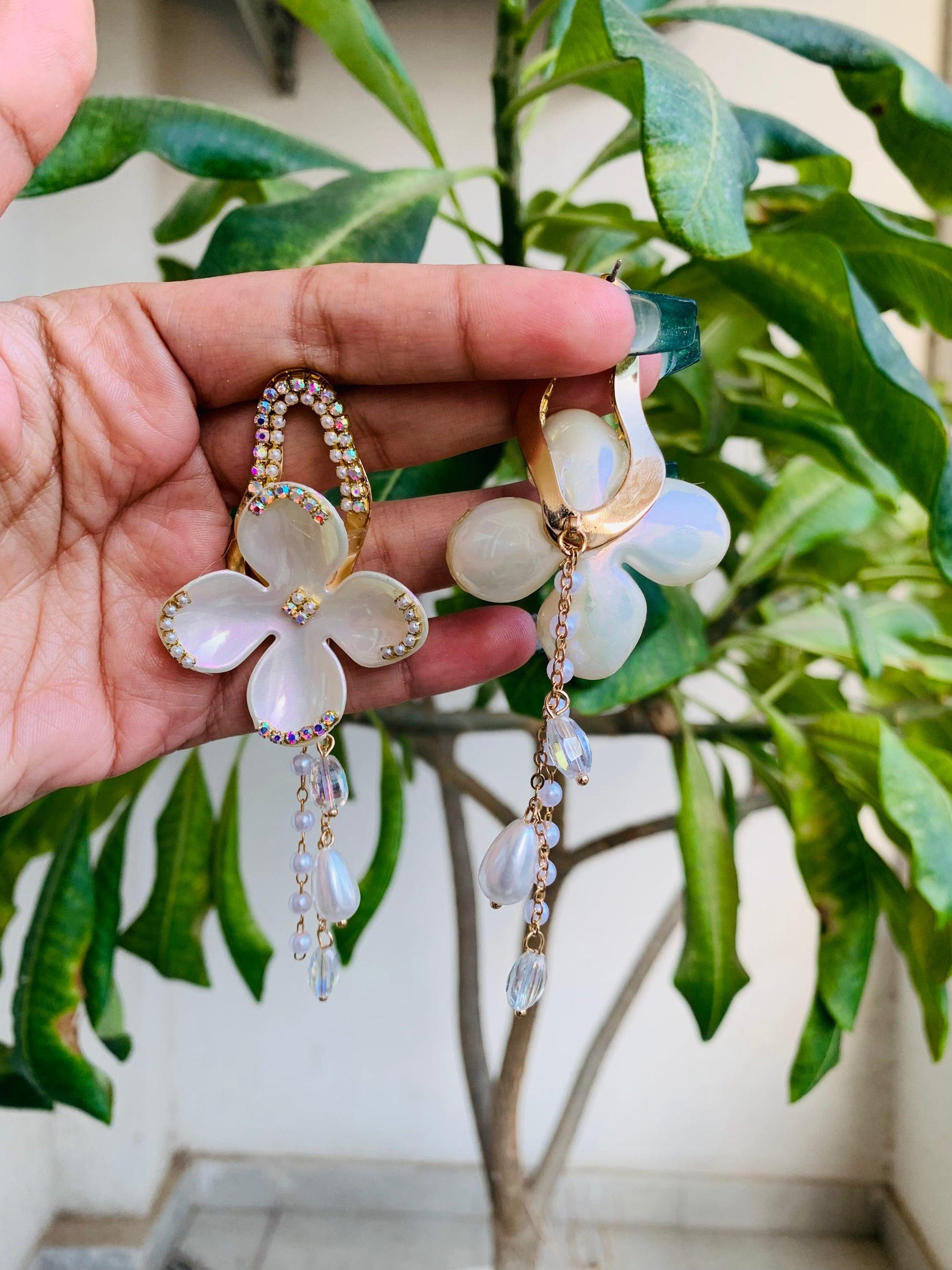 Enhance your outfit with our elegant Flower Shaped Long Earrings. The delicate flower design adds a touch of femininity while the long drops create a graceful silhouette. Made from high-quality materials, these earrings are the perfect accessory for any occasion.