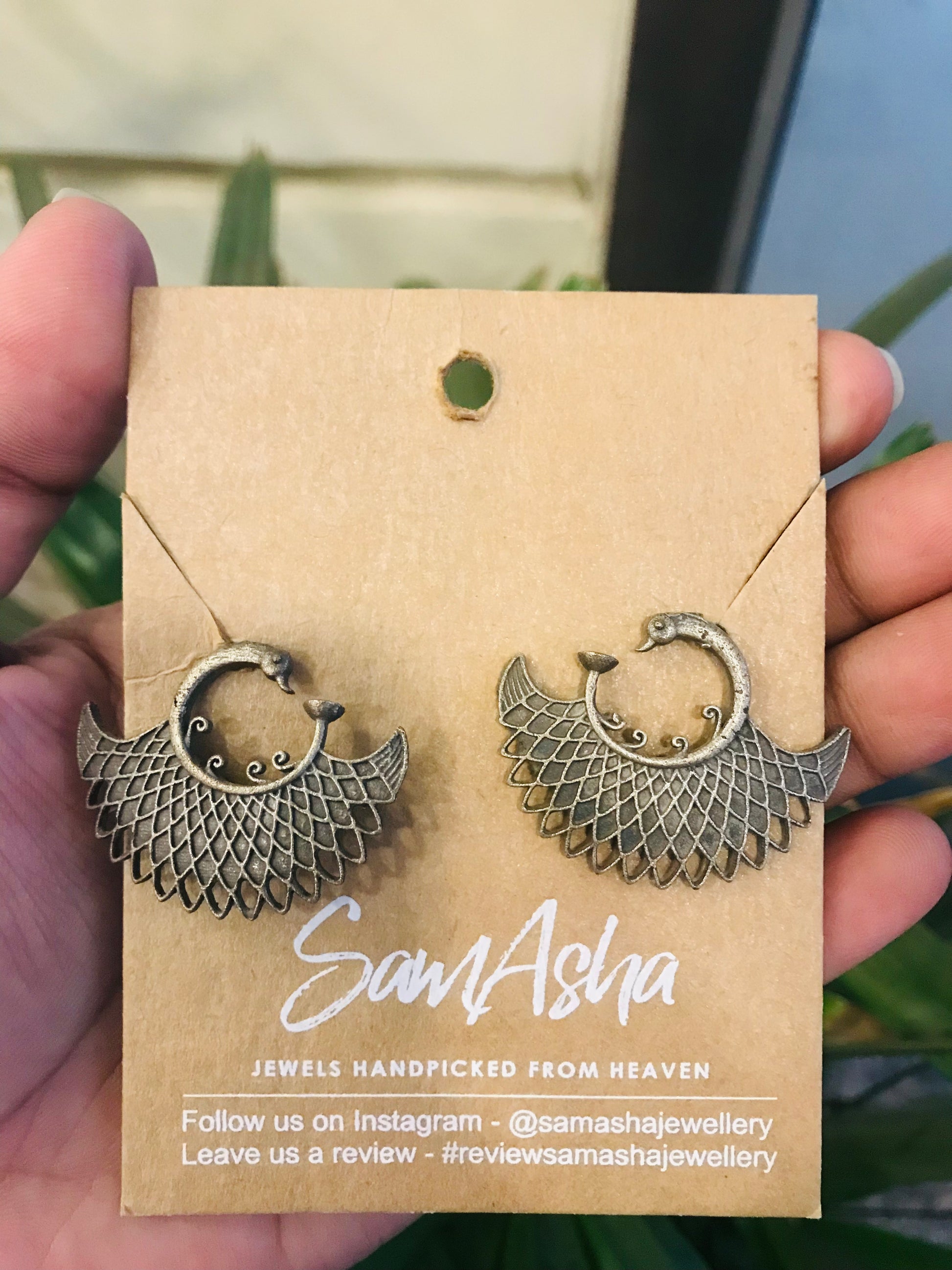 This is a very unique style of earrings with studs in a full peacock shape. These are super pretty and compliments the ethnic wear very beautifully.