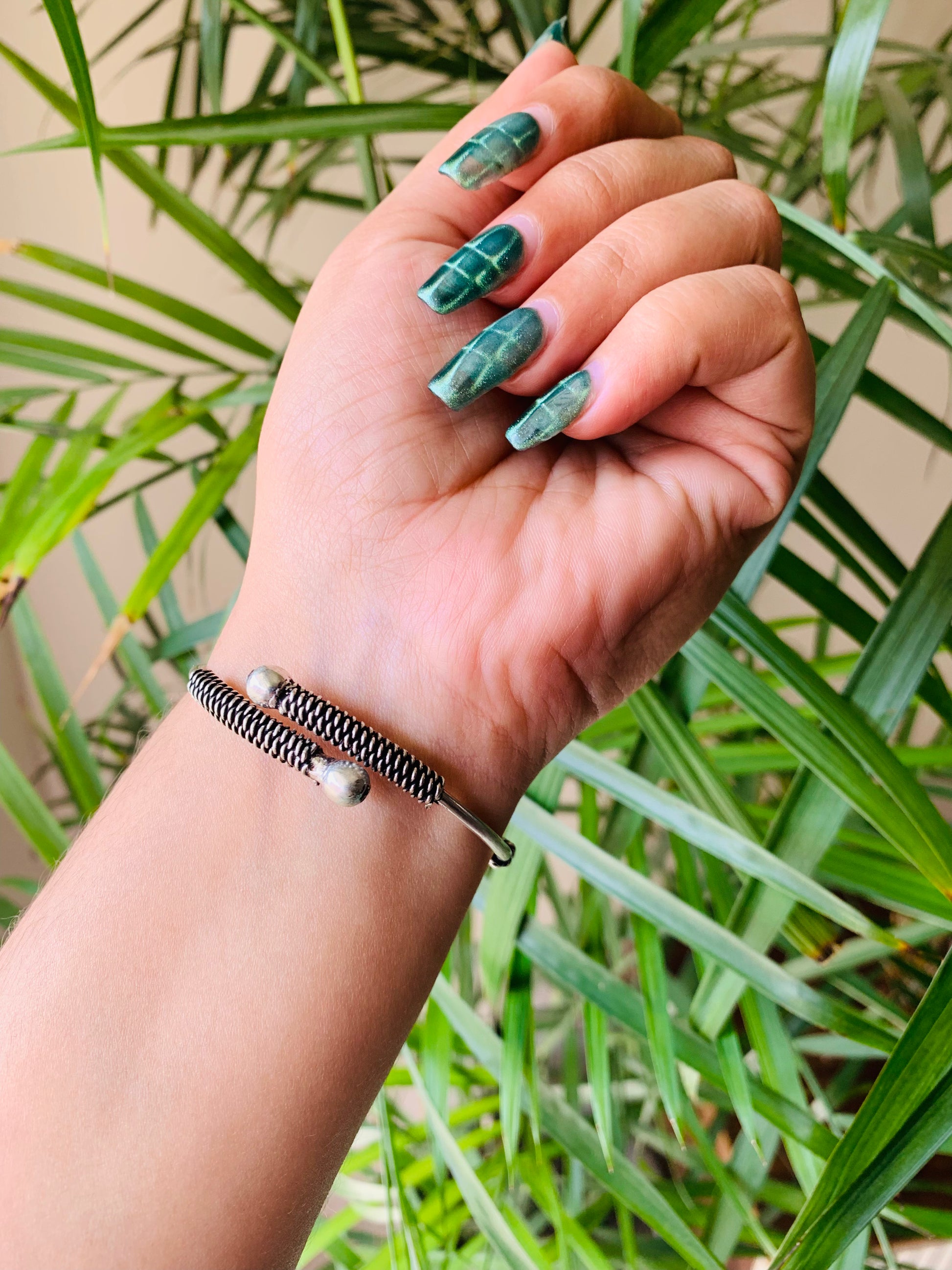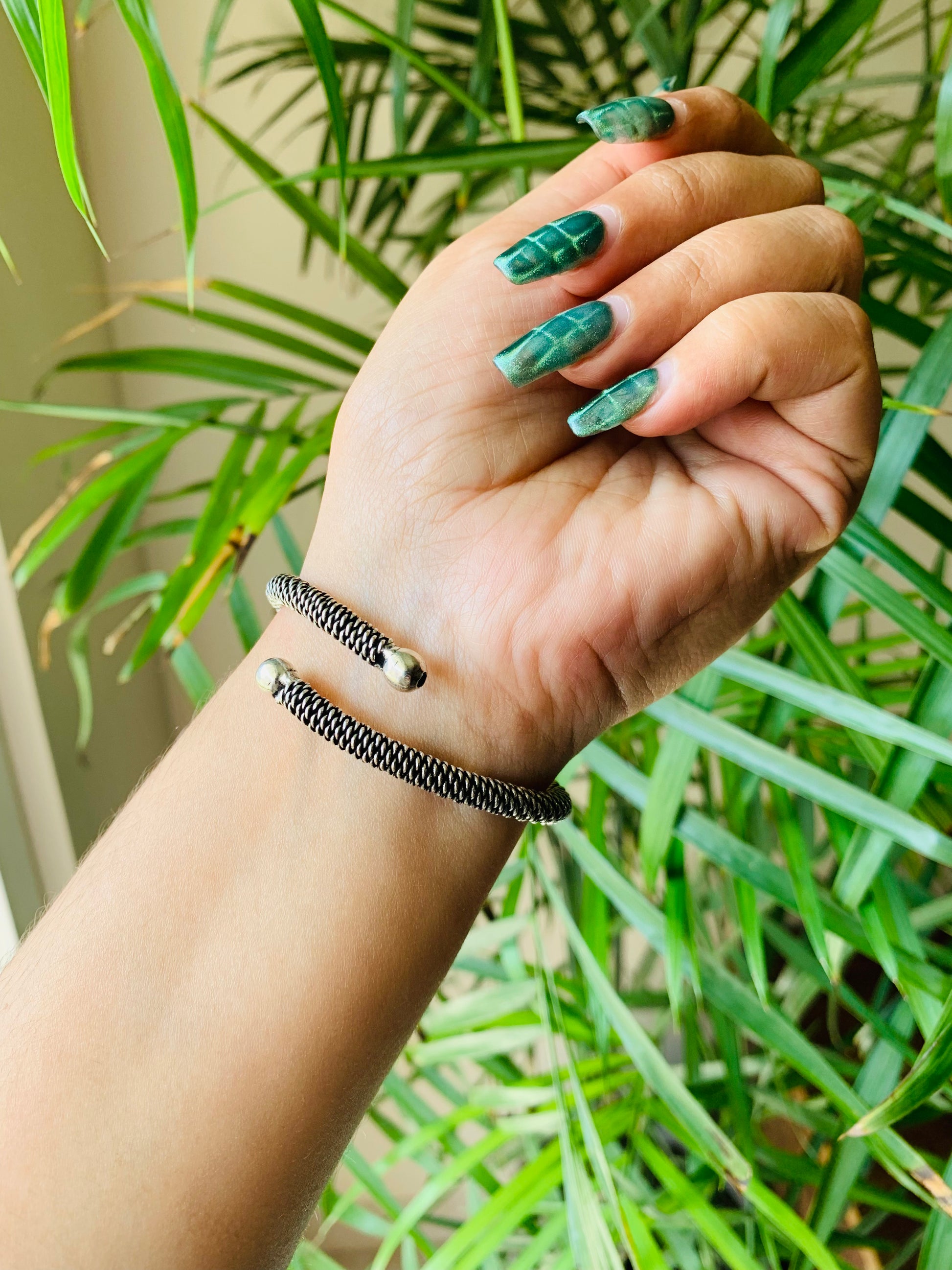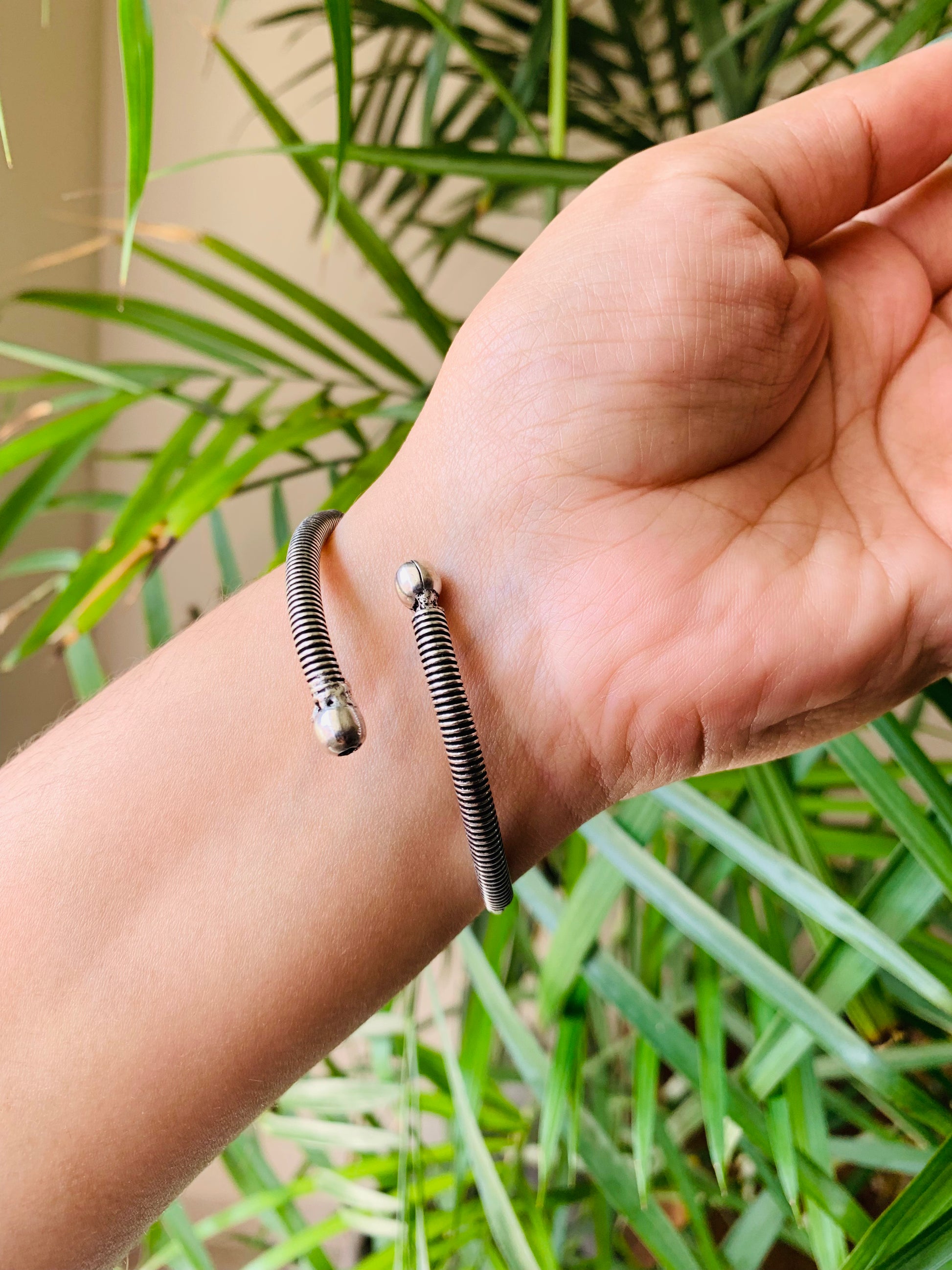 Crafted from high-quality German silver, this adjustable bracelet offers both style and durability. Its sleek design makes it a timeless accessory, perfect for any occasion. Elevate your wardrobe with this elegant and versatile piece.