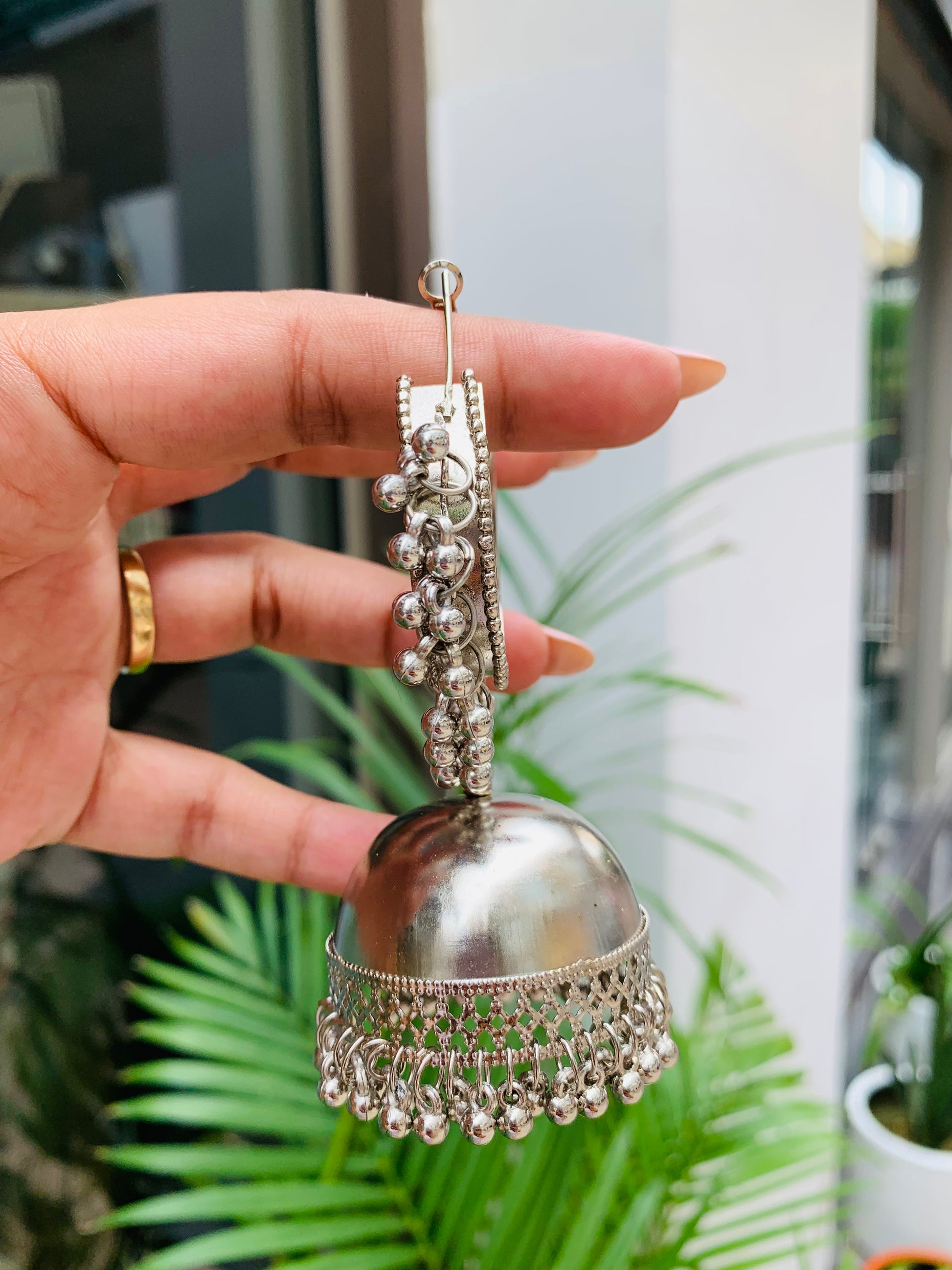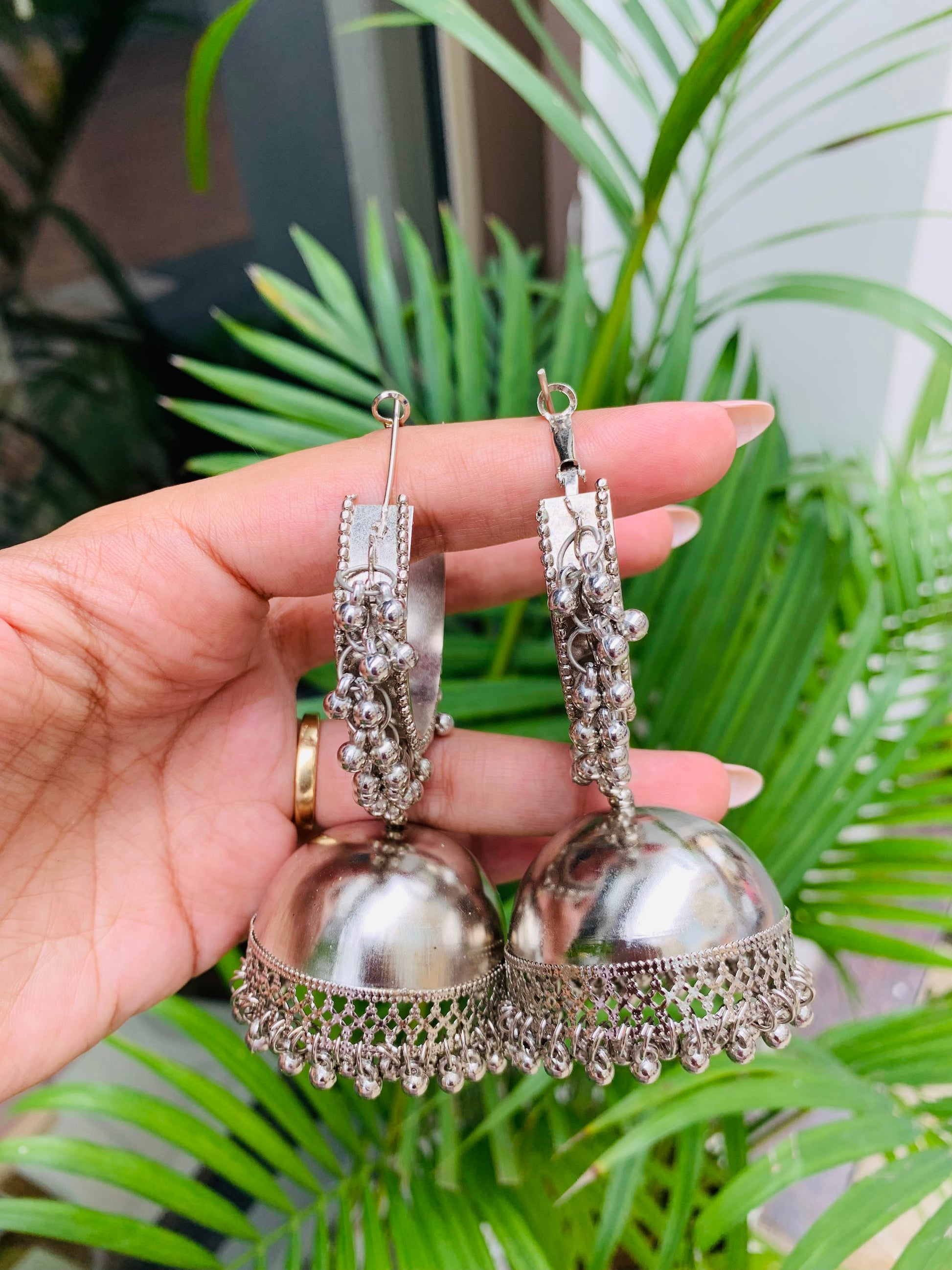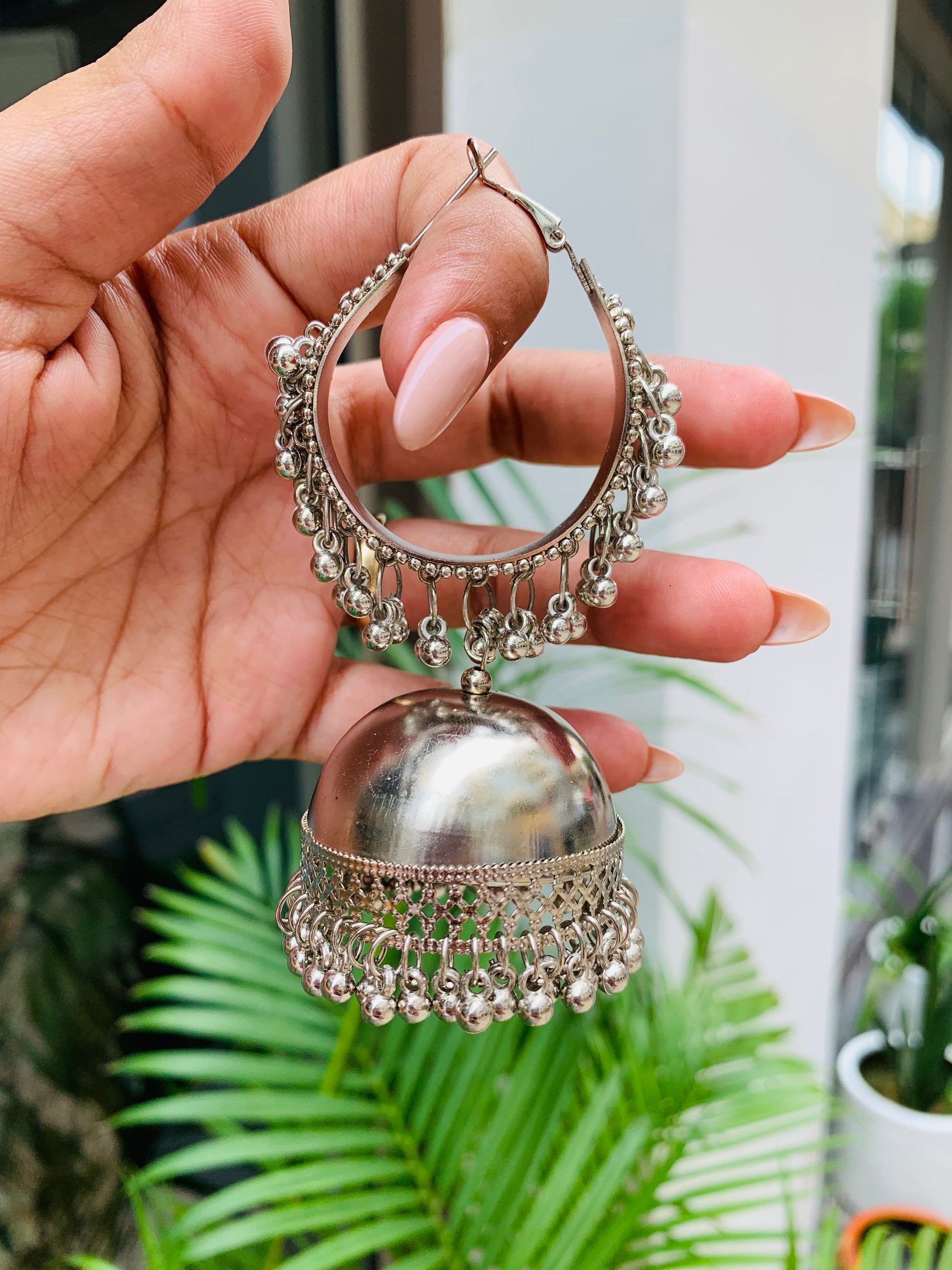 Are you looking for a statement piece? Show off these Ghunghroo Bali Jhumka earrings! Their lightweight silver hoop design is super comfortable, while their jumbo size makes a show-stopping impact. Get ready to make a statement!