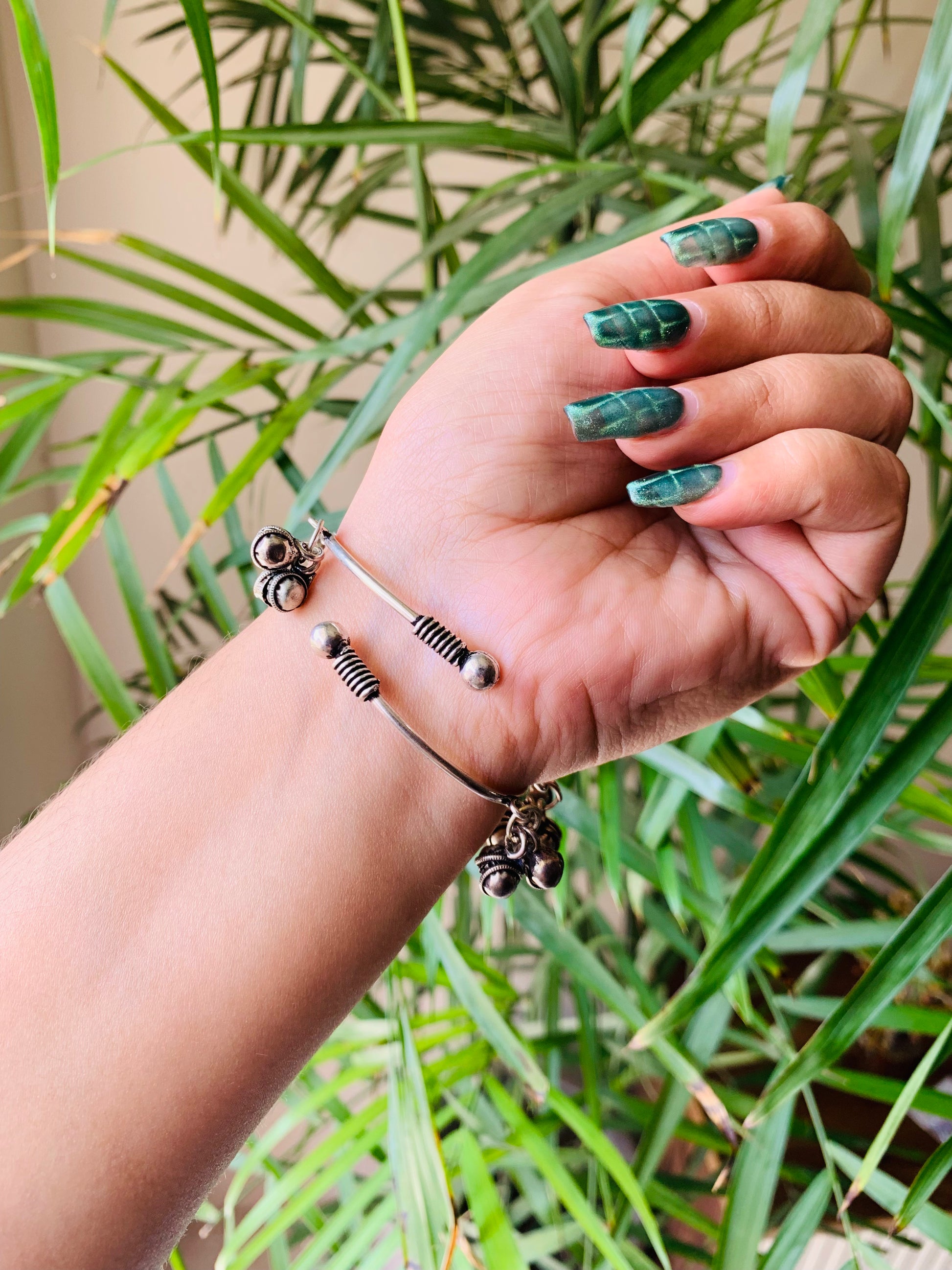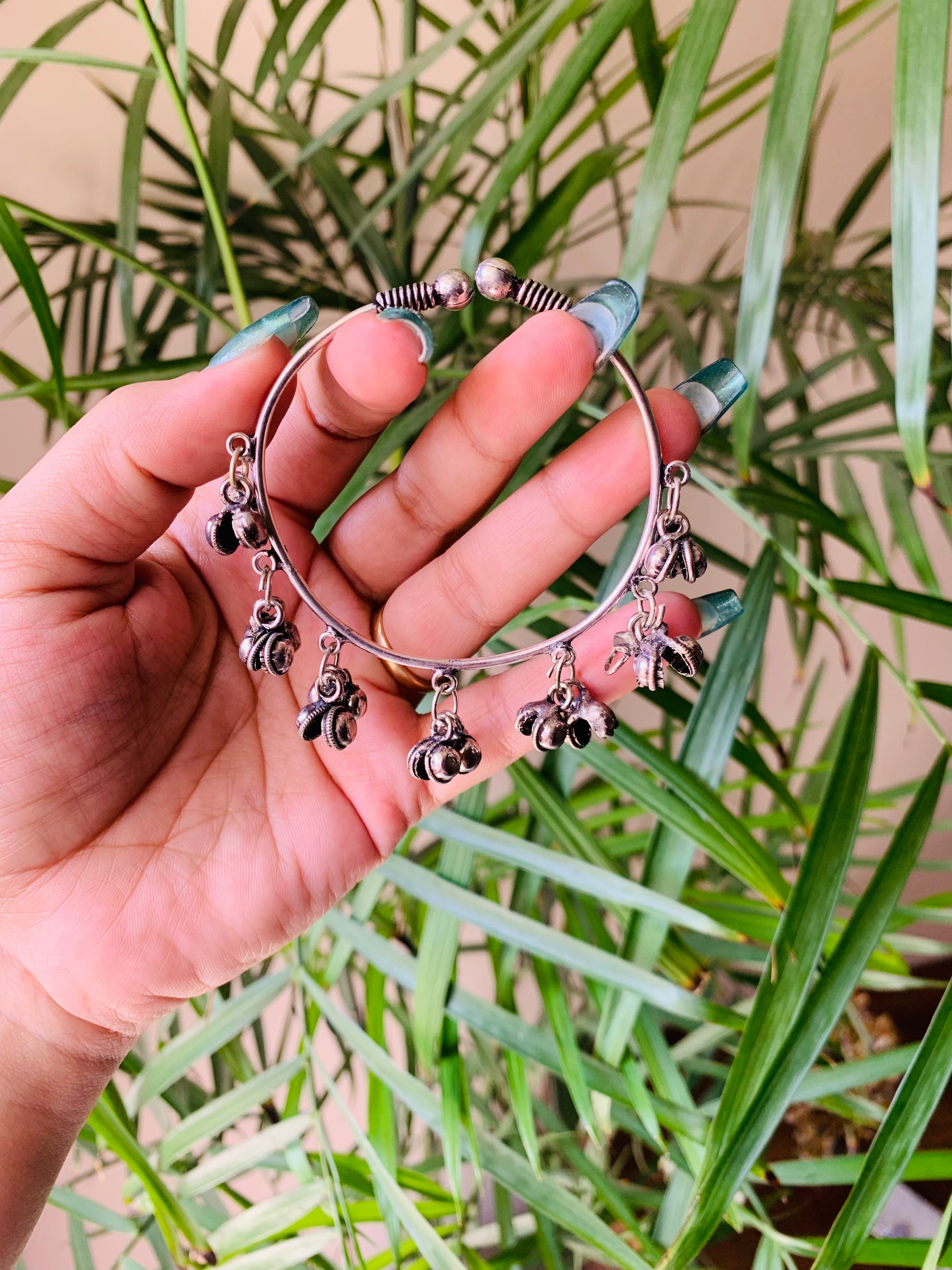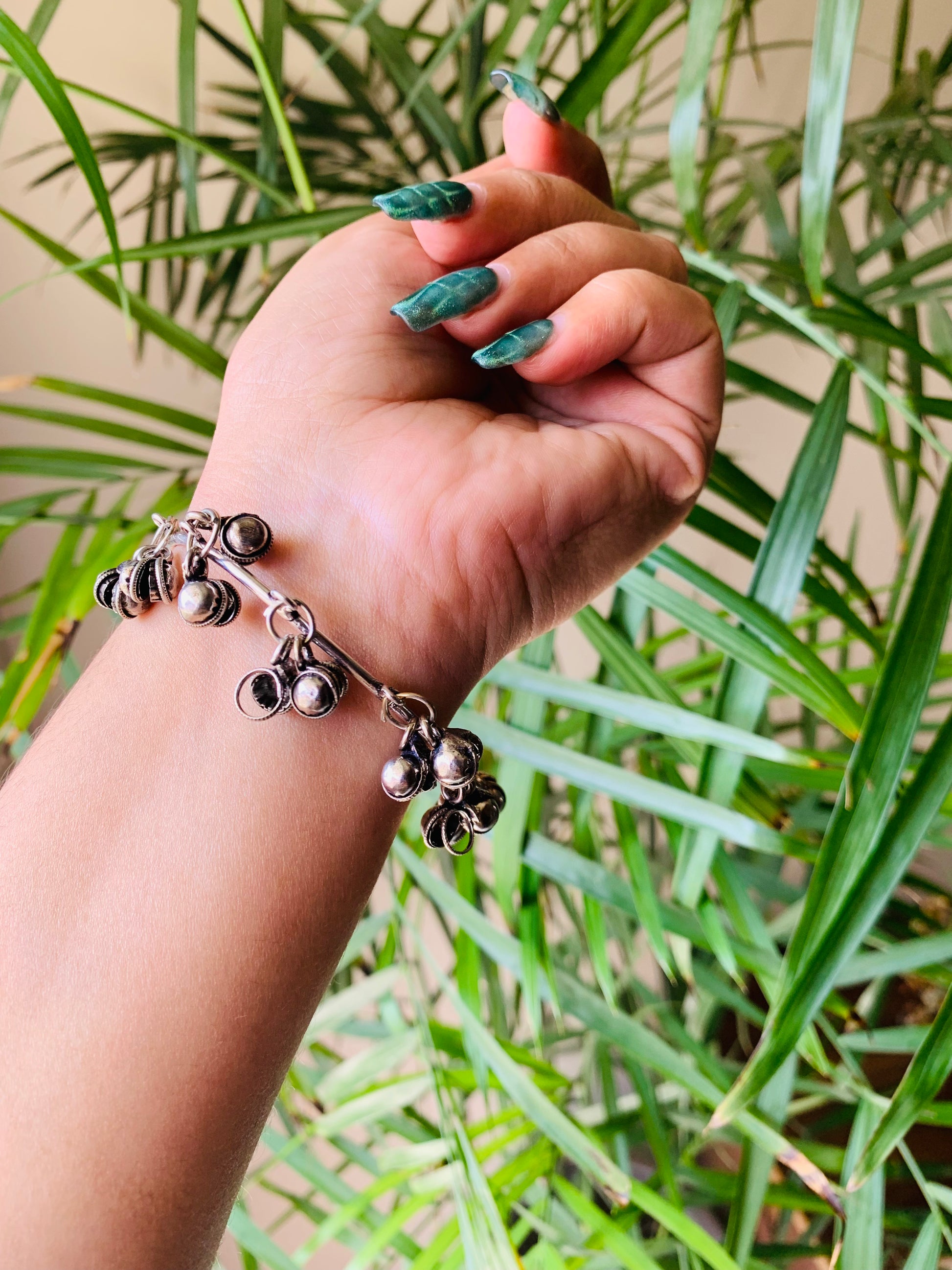 Enhance your style with Ghunghroo Drops Bracelets. These adjustable bracelets feature pretty drops made of German Silver, sure to add a touch of elegance to any outfit. Elevate your look with these stylish and versatile accessories.