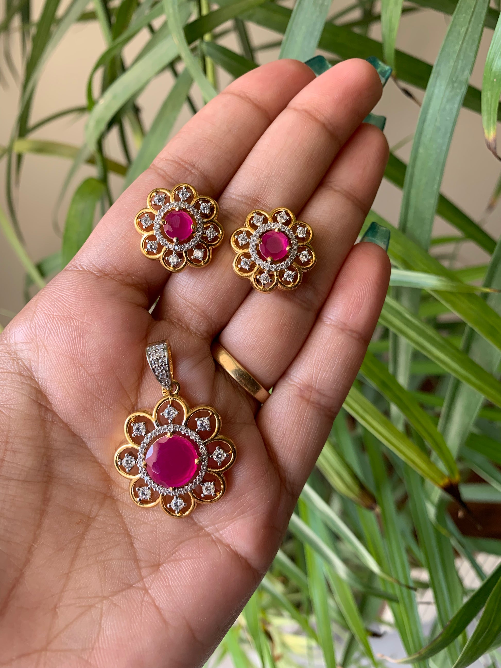Golden Ruby Pendant Set