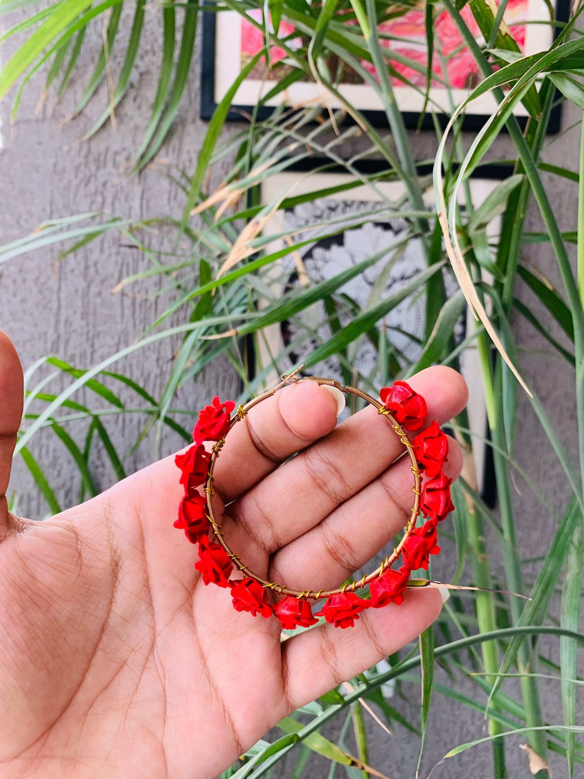These stunning rose hoops are perfect for parties. Each lightweight hoop is handcrafted with care, making them truly unique and beautiful. Add a touch of elegance to any outfit with these must-have accessories.