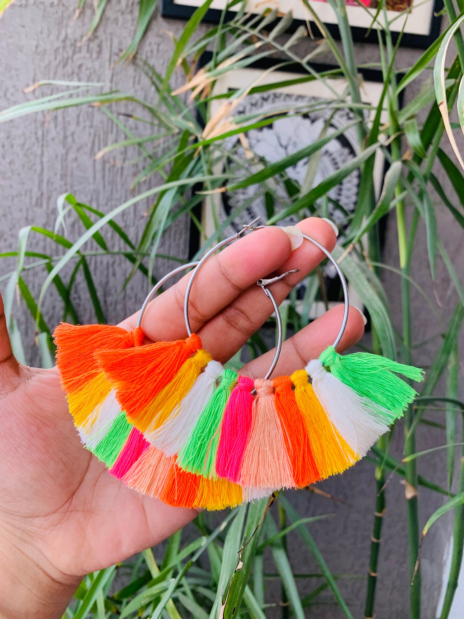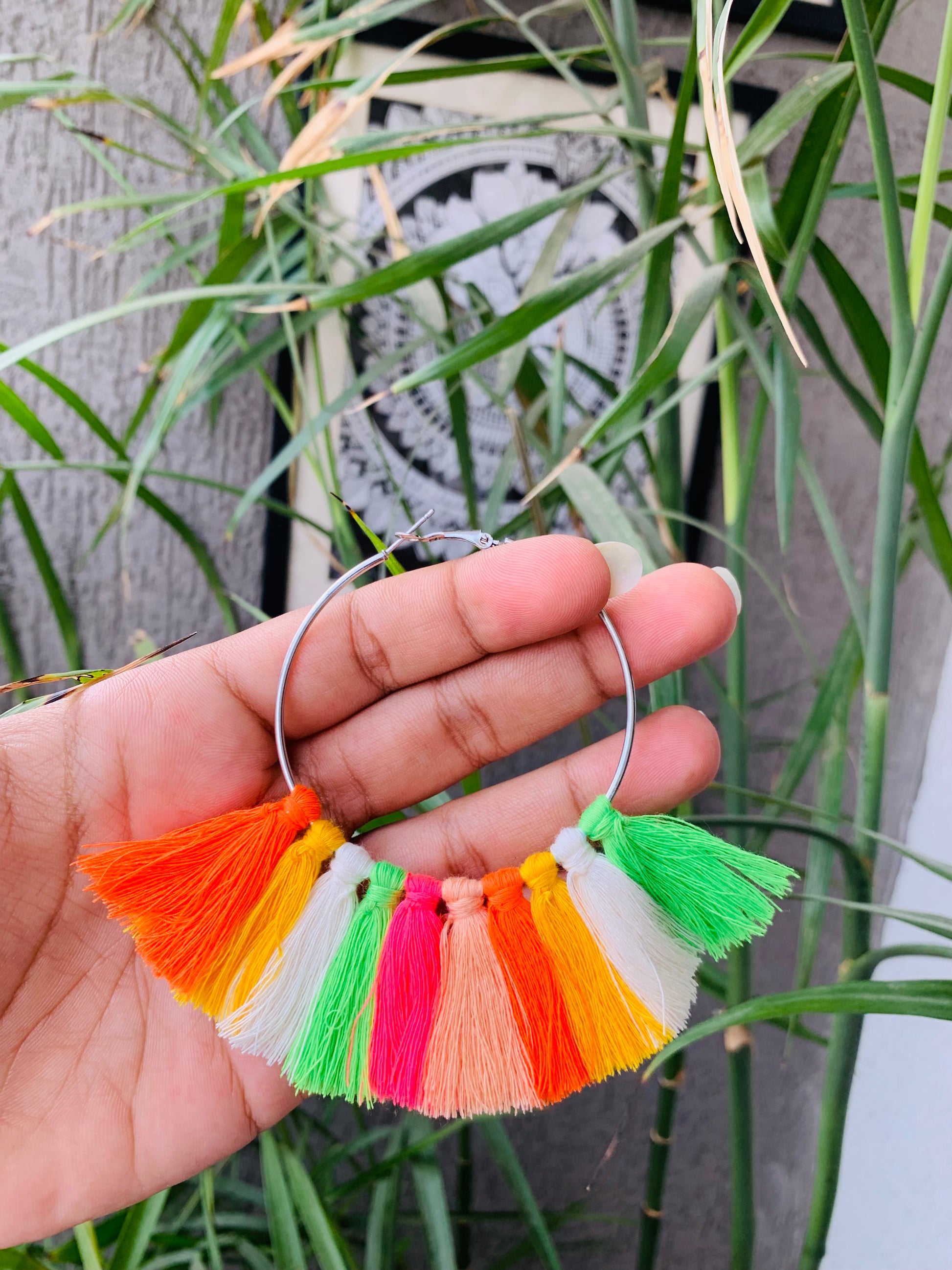 These multicolour hoops are the perfect addition to your summer wardrobe. With a variety of vibrant colors, they are sure to add a festive touch to any outfit.