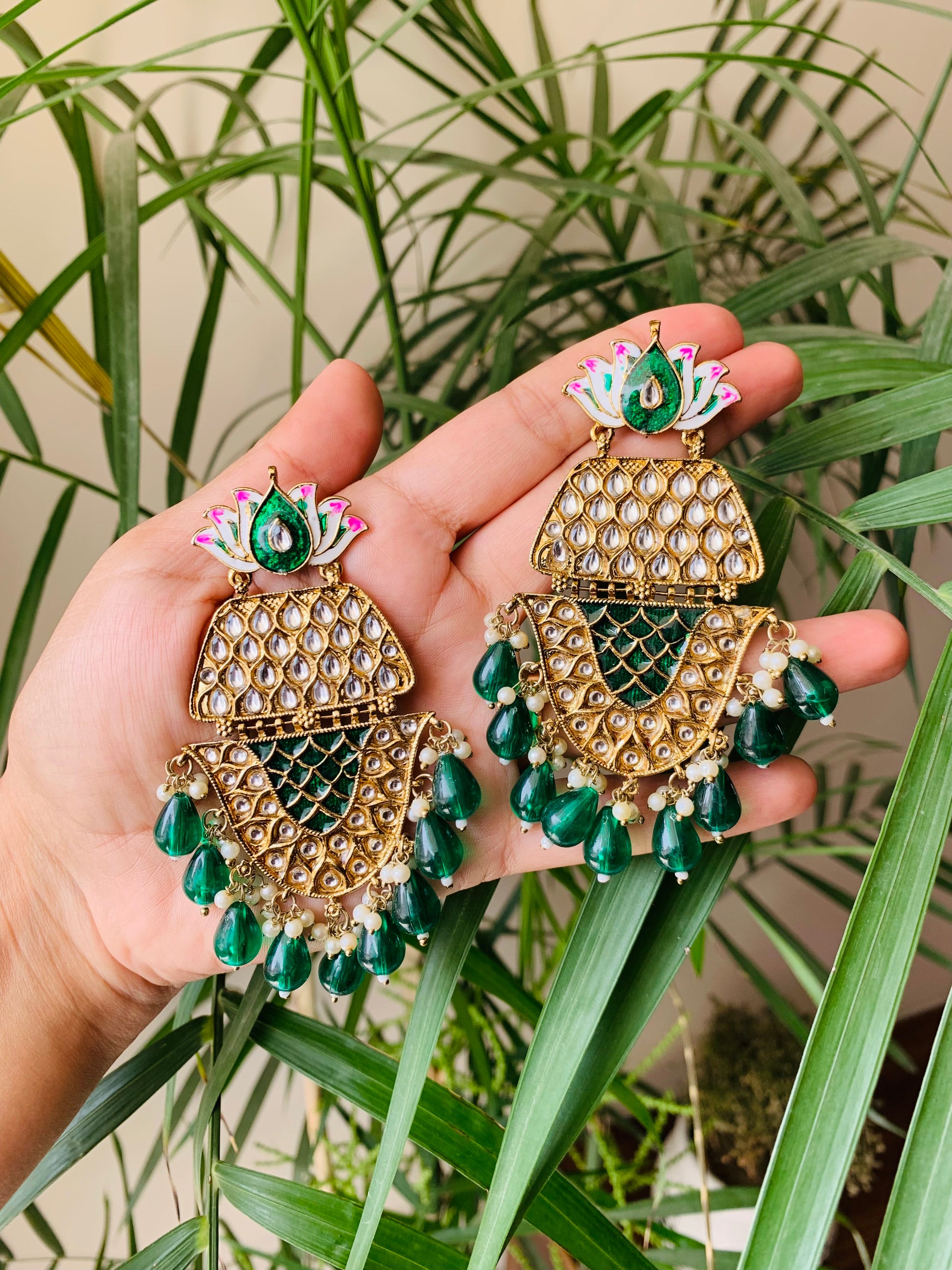 Elevate your look with Jhanvi Traditional Earrings featuring exquisite Meenakari craftsmanship. These elegant earrings showcase intricate designs that are sure to make a statement. Handcrafted with expertise, these earrings are a perfect blend of tradition and contemporary style.