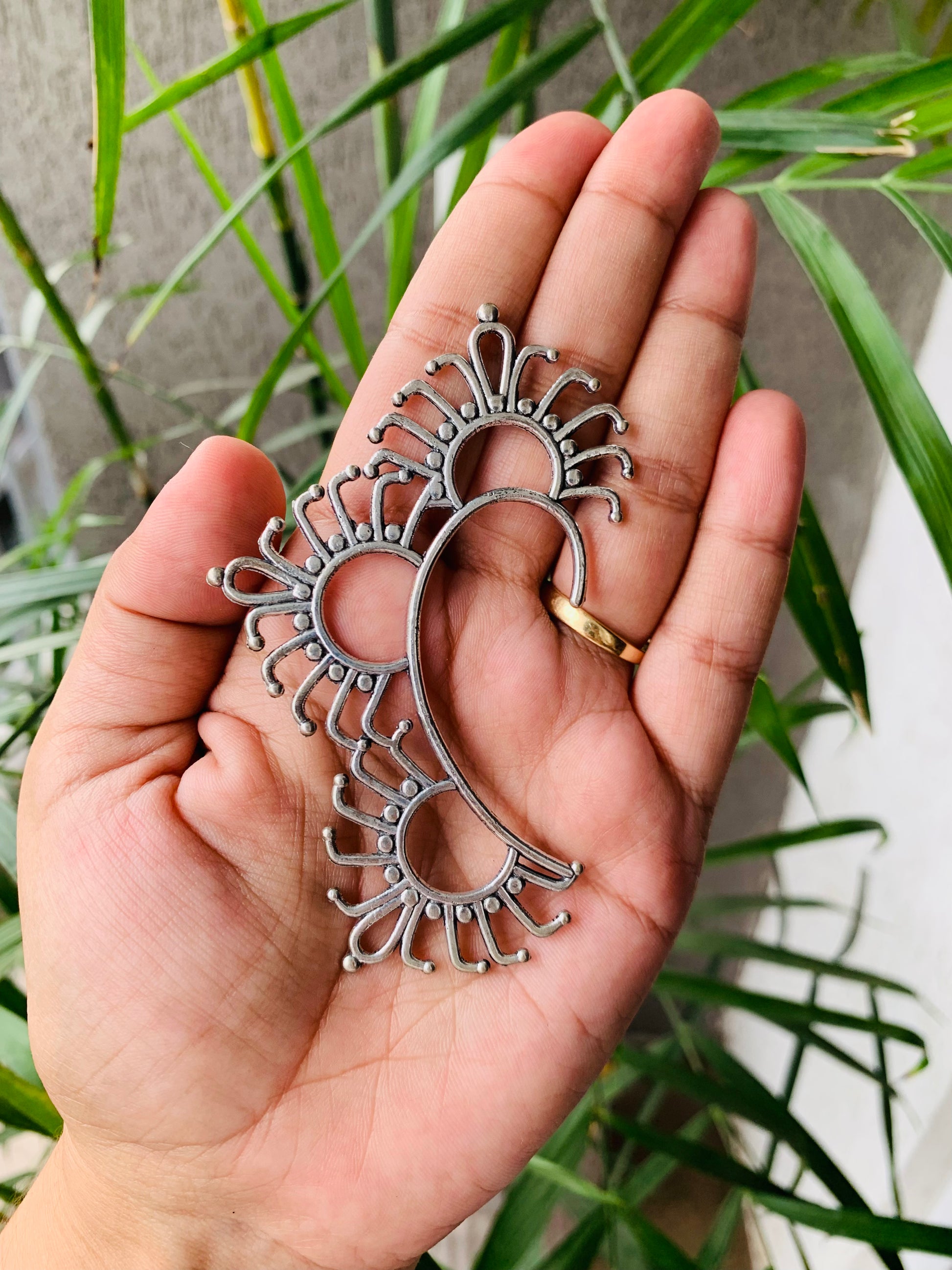 Crafted from durable German silver, these Leaf Earcuffs combine nature-inspired elegance with a contemporary edge. Their intricate leaf design gracefully contours to the ear, offering a sophisticated accessory for those seeking a unique and refined look without the need for piercings. Perfect for adding subtle charm and expert craftsmanship to any outfit.