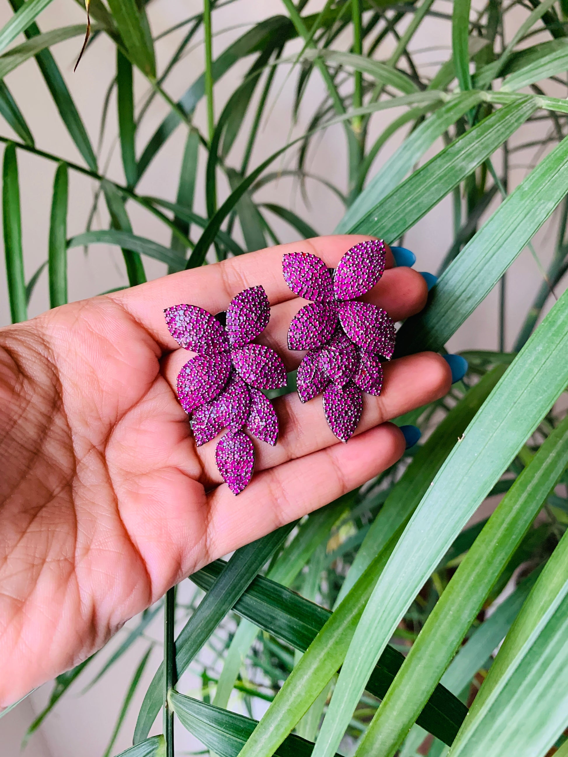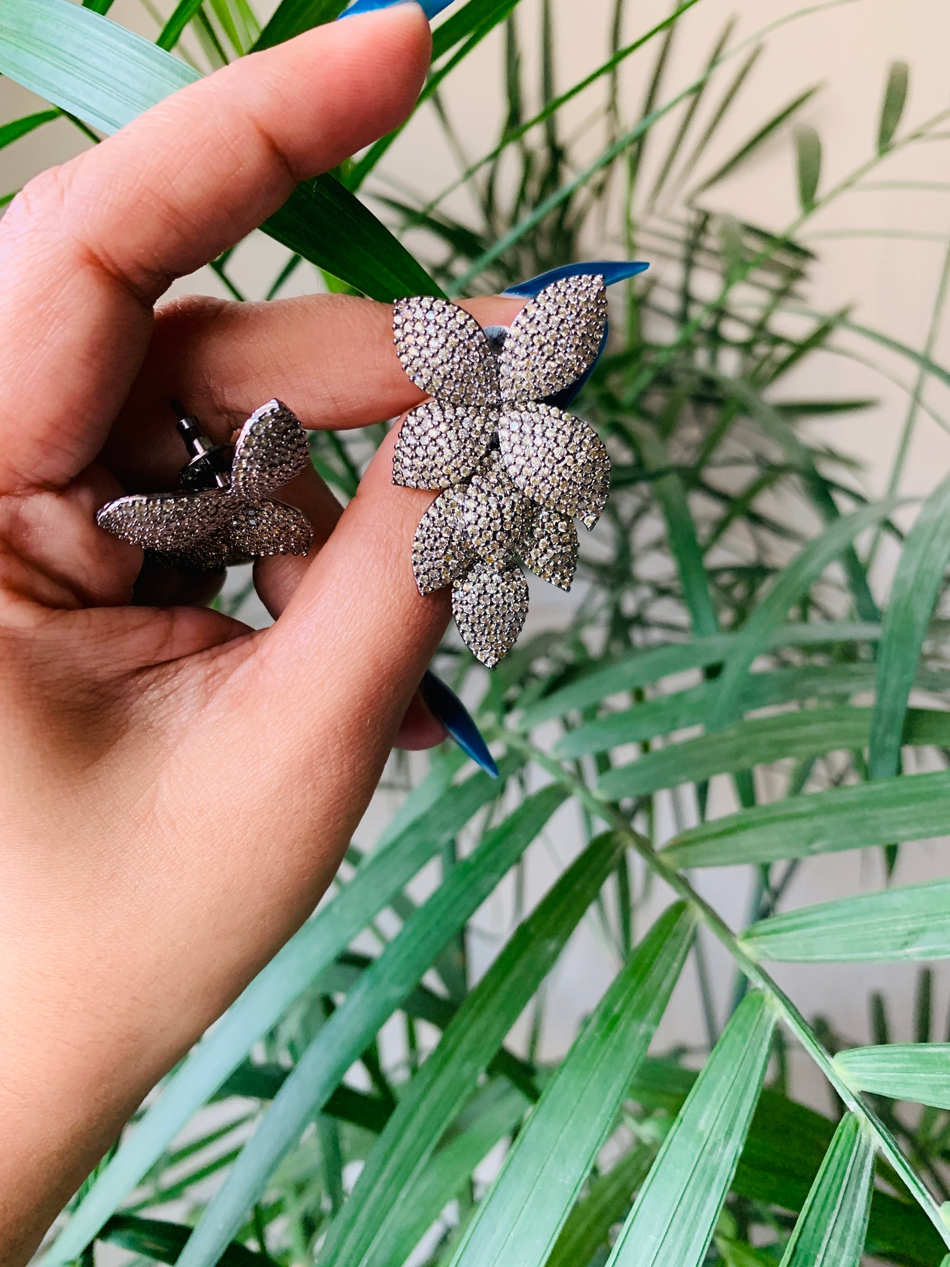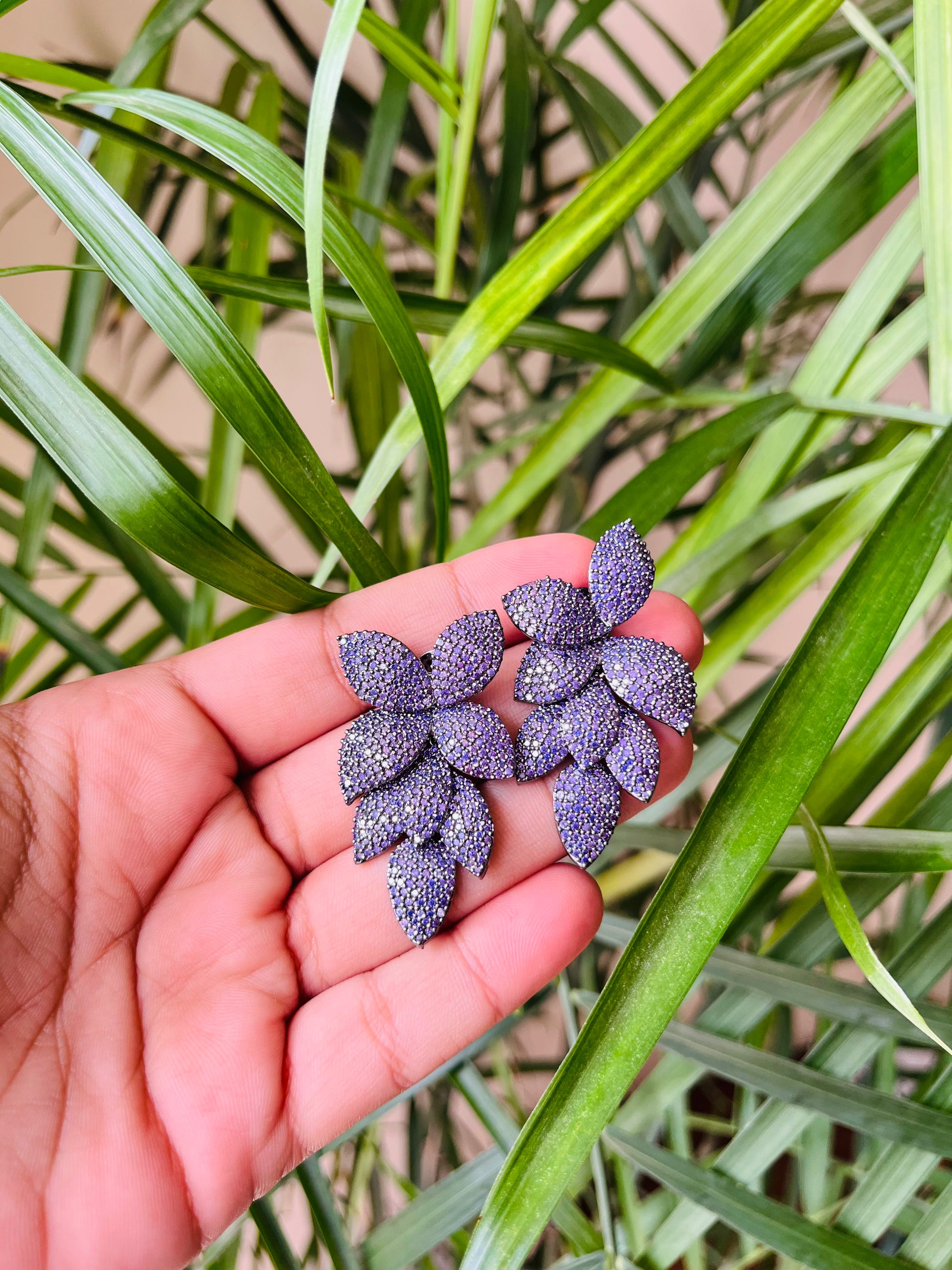 The perfect Flower Shaped Danglers for your party wear classy outfits. Glam up your look with these dazzling American Diamond Danglers! These earrings feature intricate detailing and luxurious American Diamonds, perfect for any ensemble. Add a touch of sparkle to your wardrobe today!