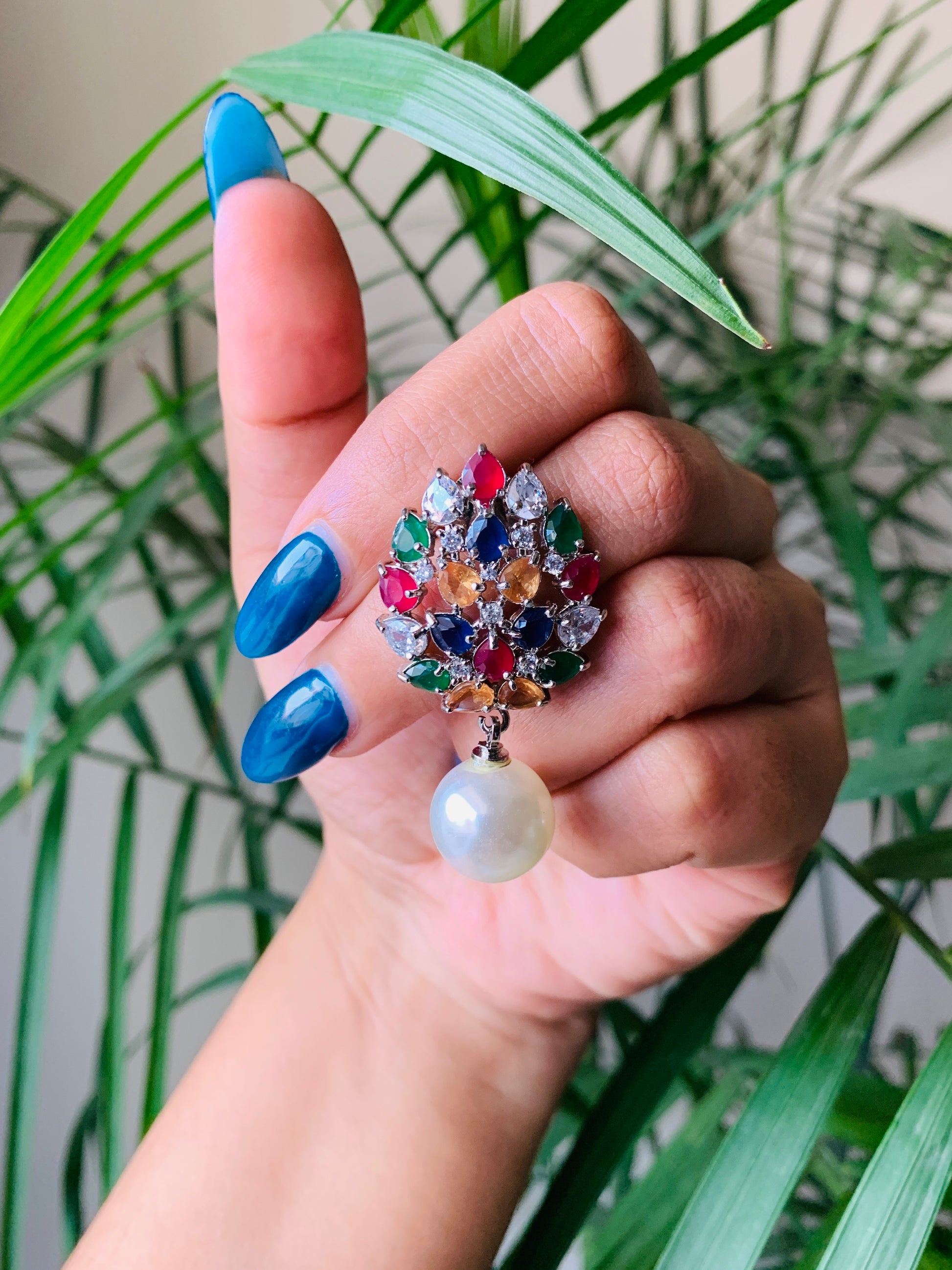 The perfect bright crystal studs for your party wear classy outfits. These are light studs with a sweet little pearl. This is typically for someone who wants a stud with great fitting onto the ear. This sits so beautifully that you will love it, I promise.