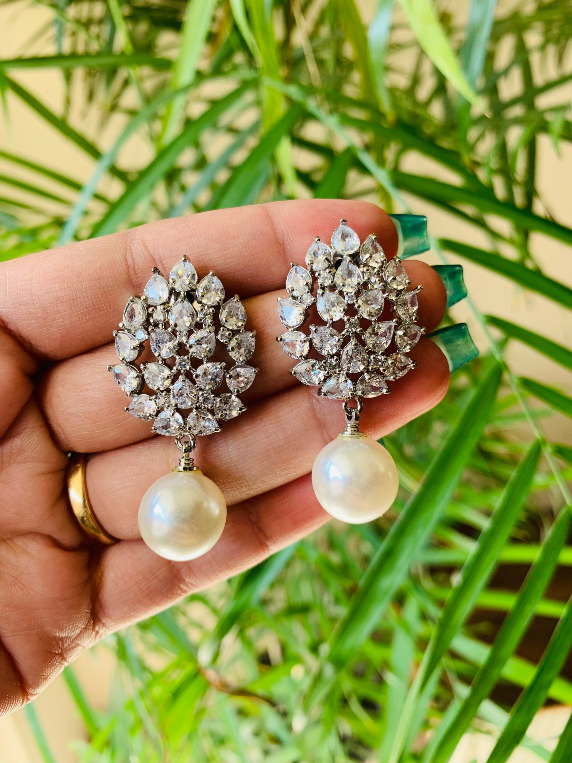 This is a very sweet design of studs with a pearl drop. These are perfect for small to medium size earring lovers who like a drop too.