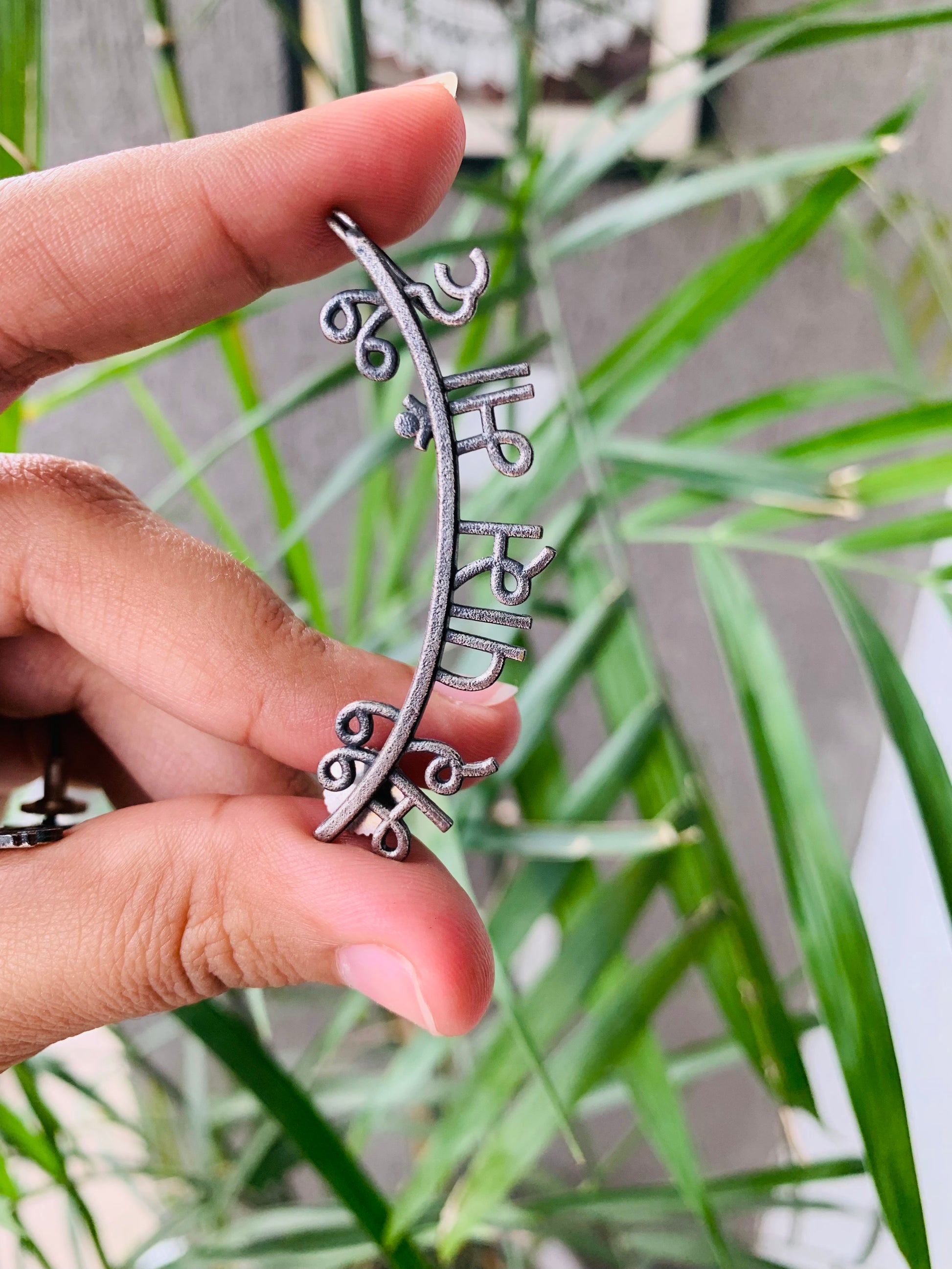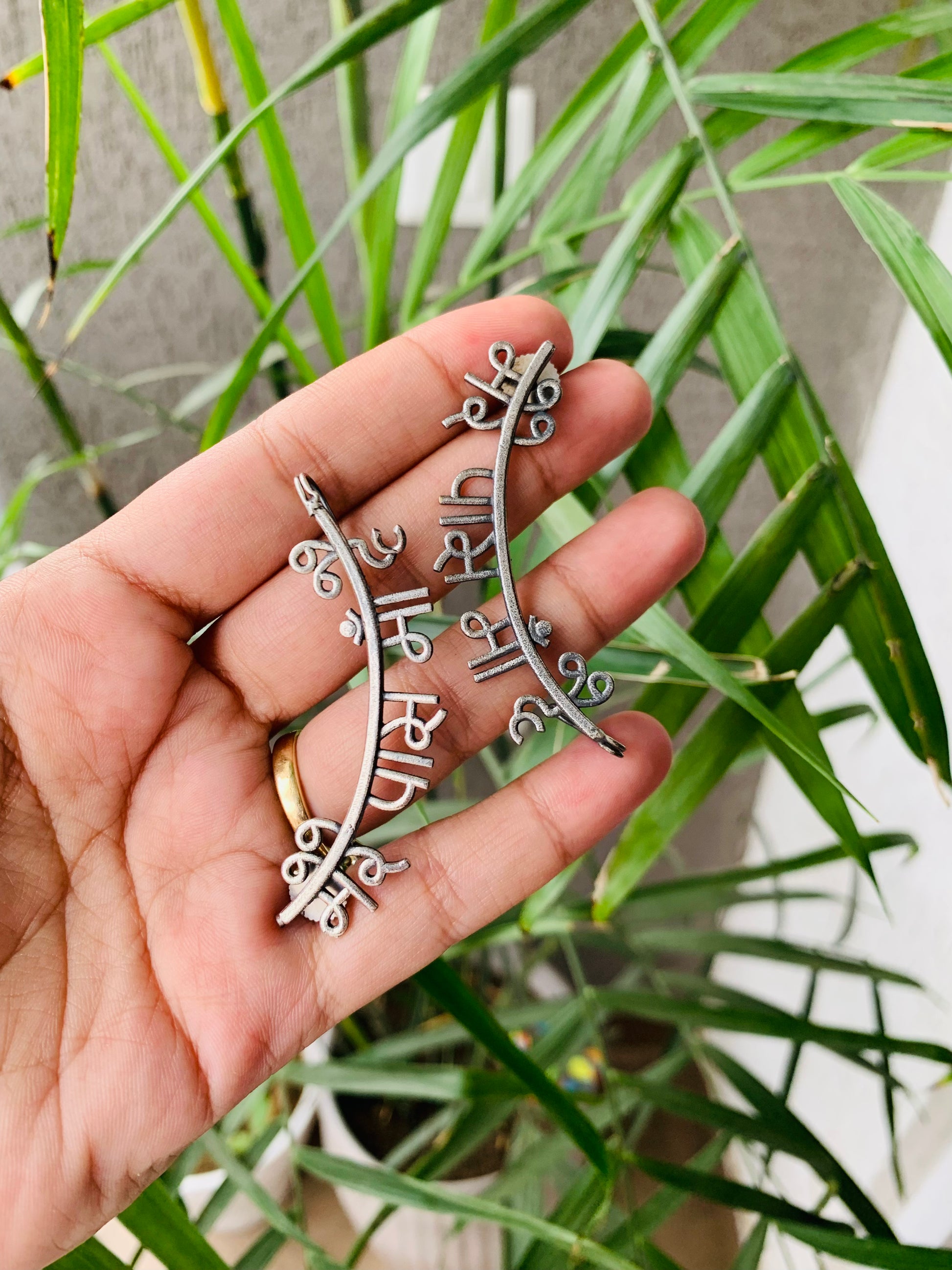 The one for ear cuff lovers. This one has a carving in Hindi that says *Mere Paas Maa Hai**