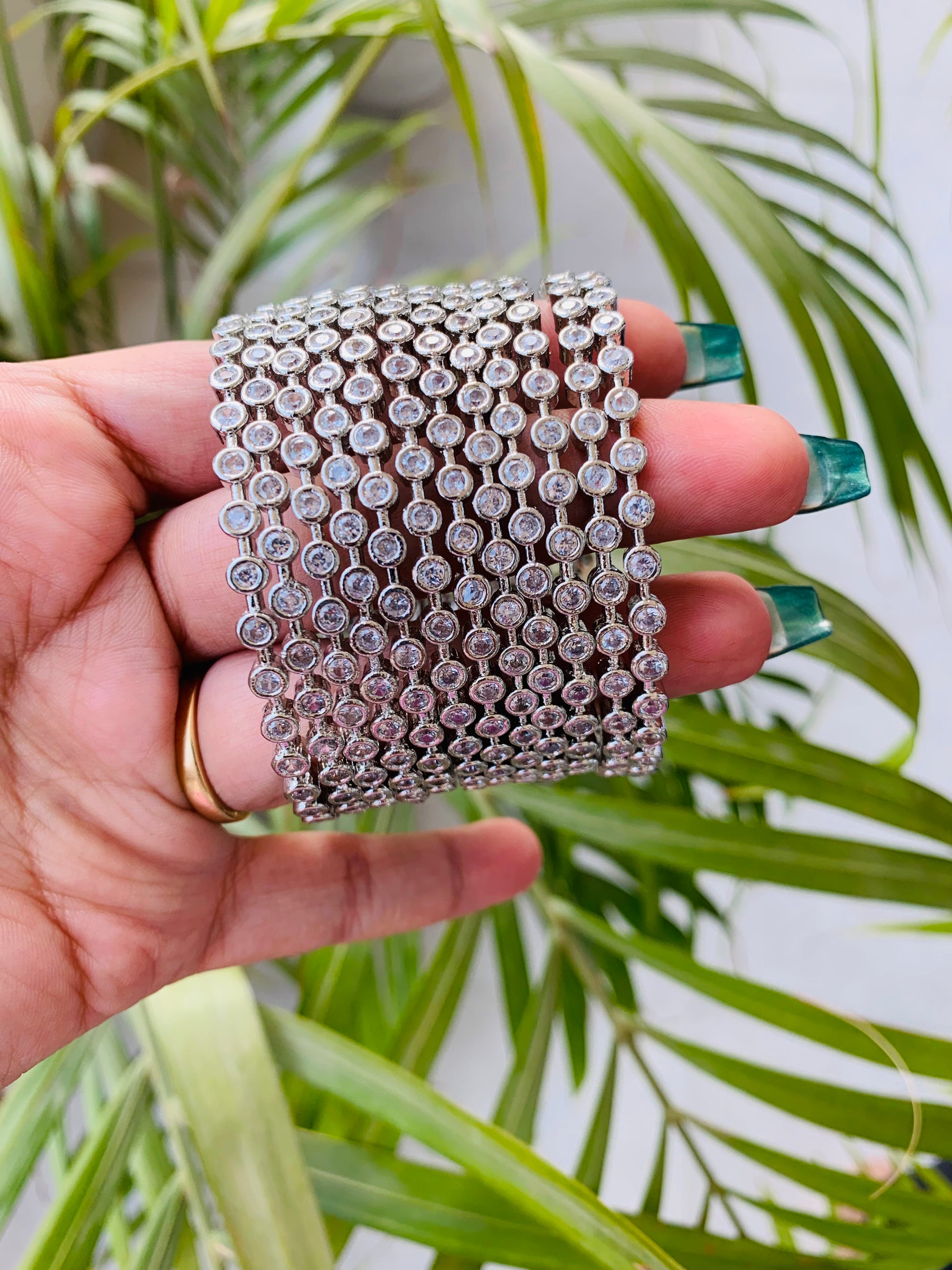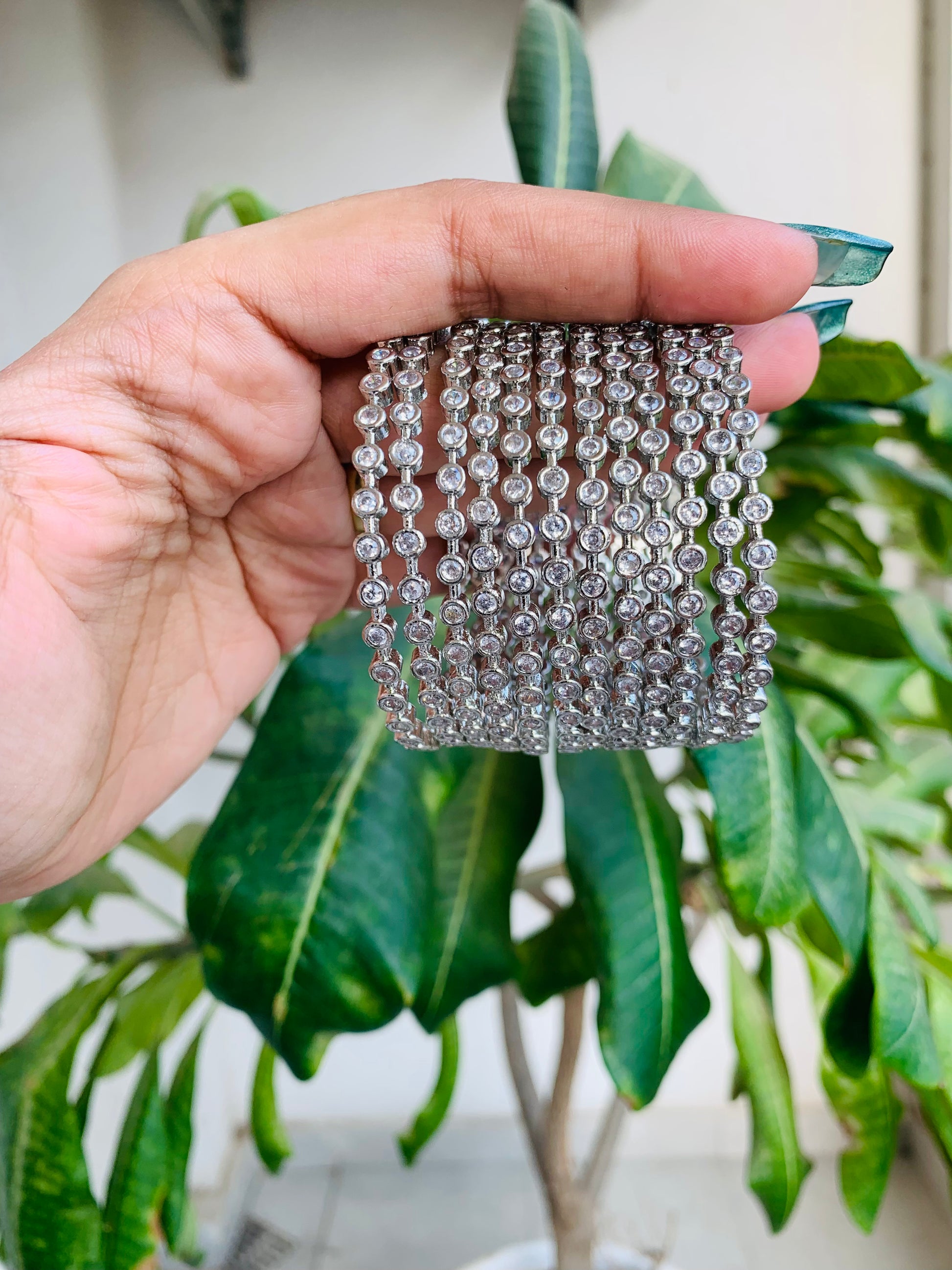 Crafted with high-quality silver polish, our Multiple AD Bangles come in a set of 12 and offer amazing quality. Add a touch of elegance to any outfit with these stunning bangles. Perfect for any occasion, these bangles are a must-have for any jewelry collection.