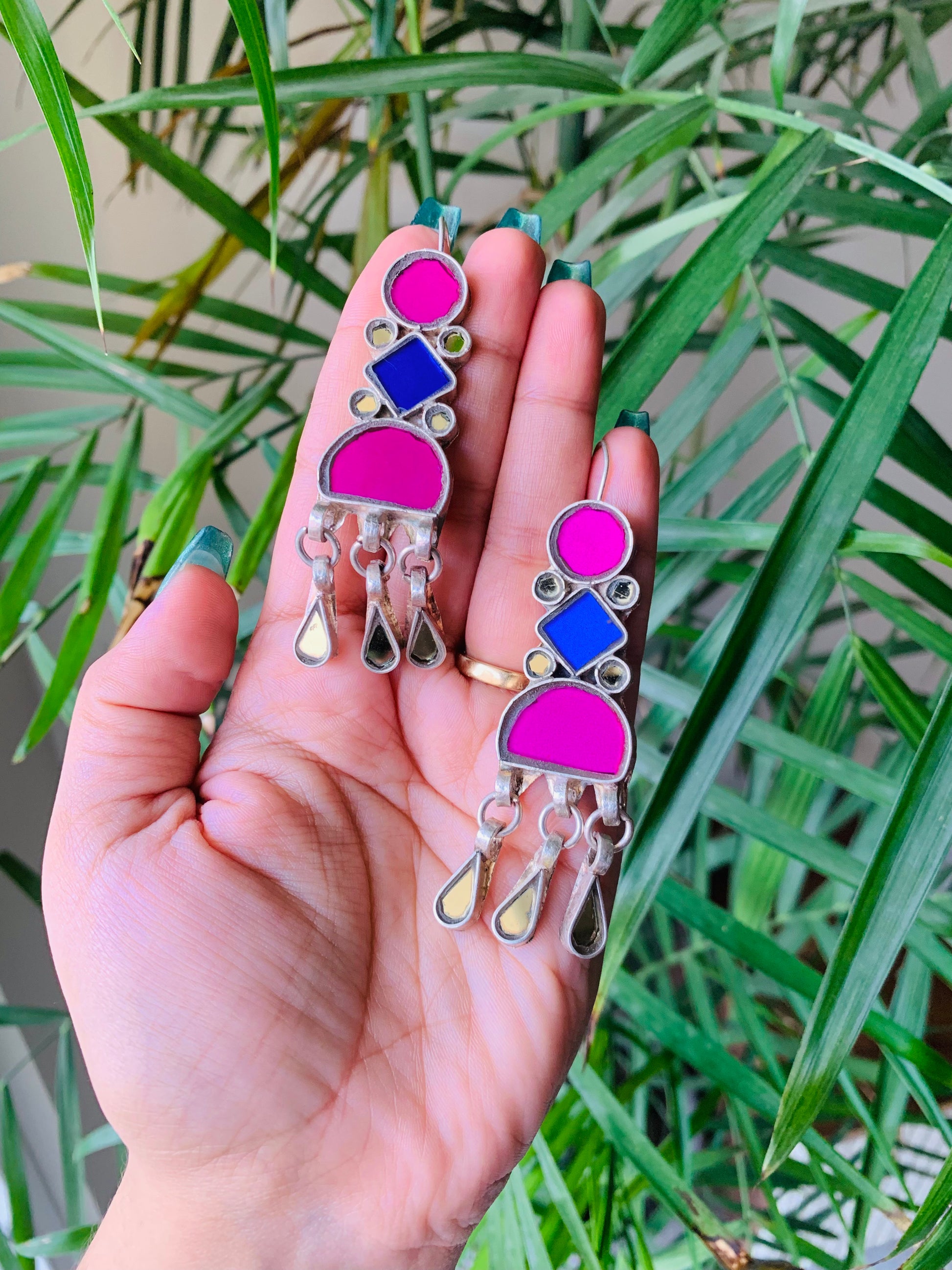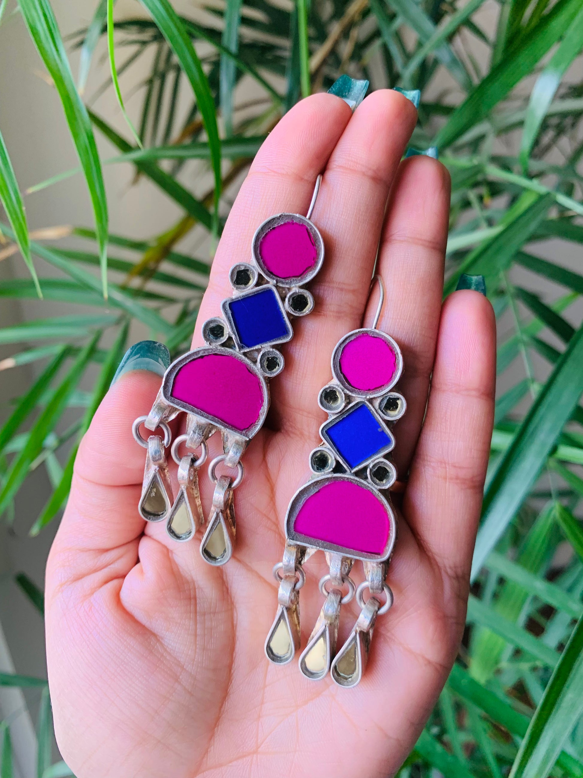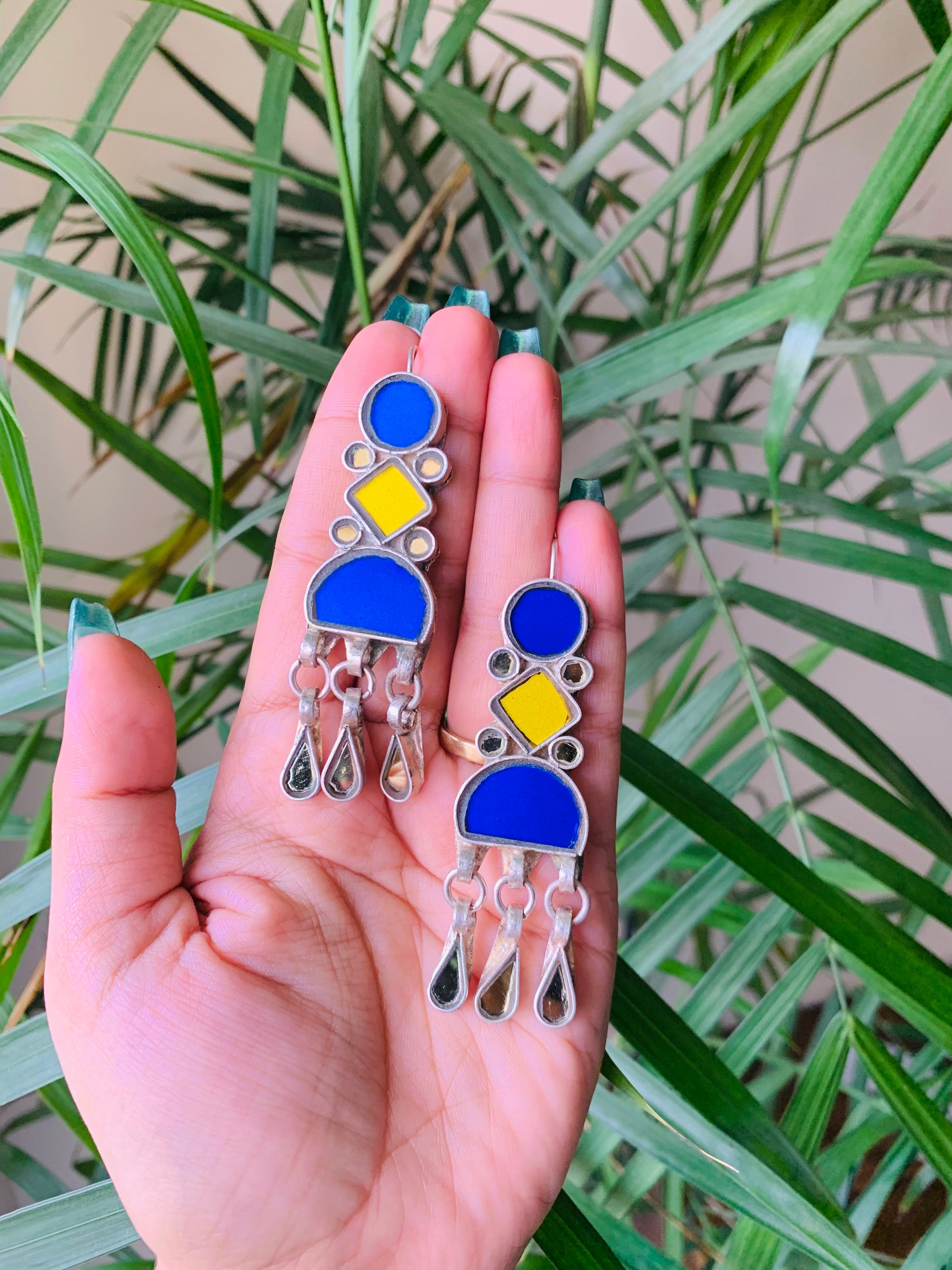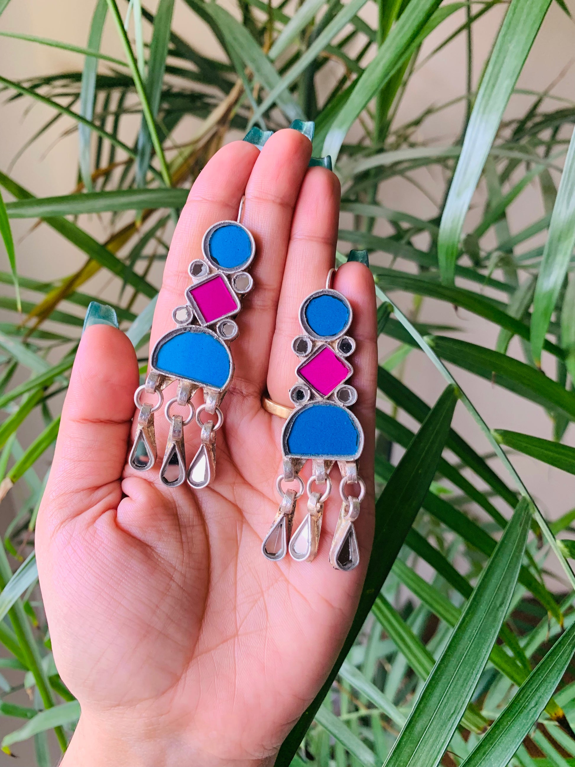 100% handcrafted mirror earrings in silver look-alike polish. It is made with a lot of love and precision by skilled artisans.