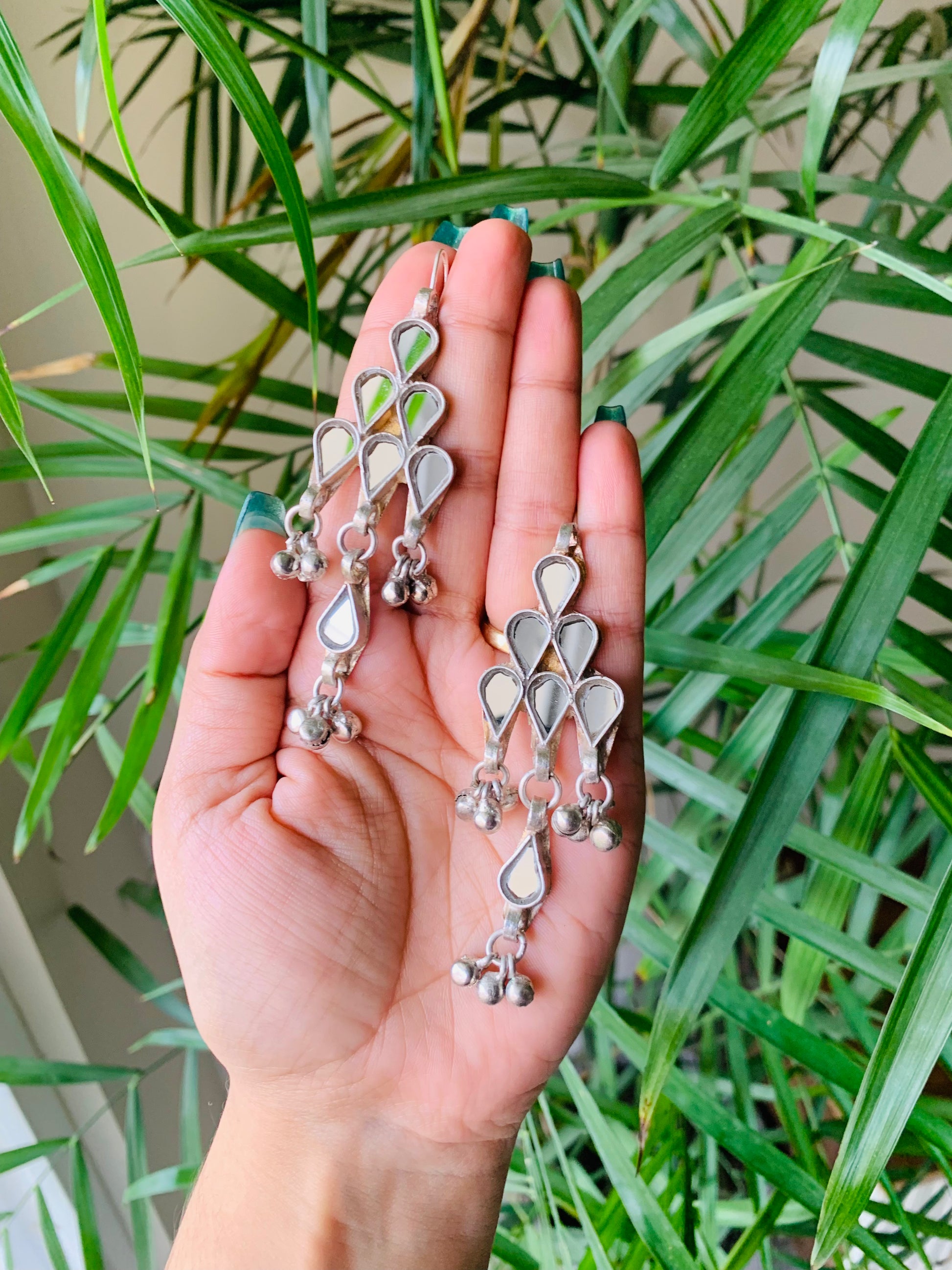 100% handcrafted mirror earrings in silver look-alike polish. It is made with a lot of love and precision by skilled artisans.
