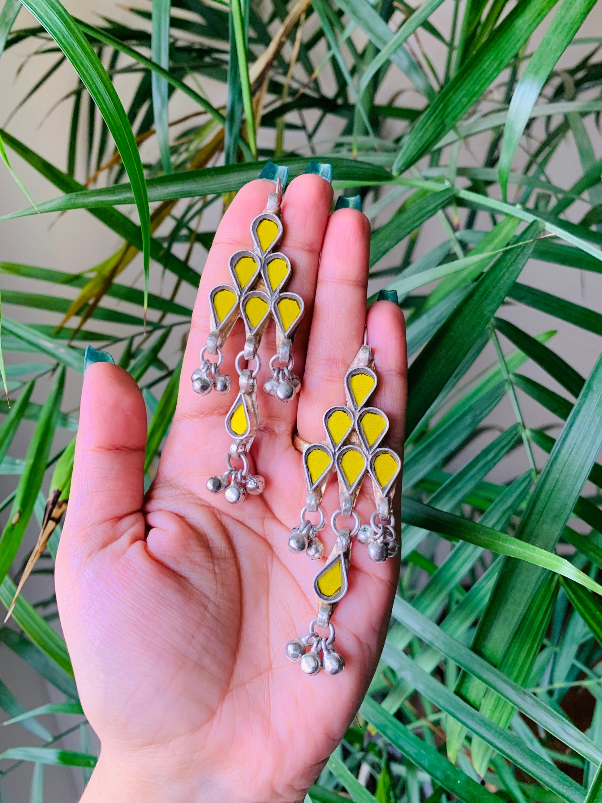 These earrings are long in pattern and moderately heavy. These will look amazing with almost all outfits and have become a must-add to your wardrobe. The colors are vibrant and catchy.