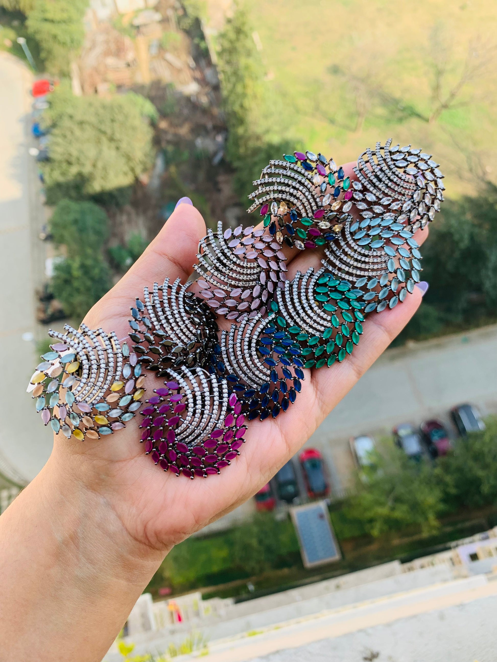 This piece is one of the hot selling items at our store, we constantly restock it, yet are never able to fulfill the demand. These studs are made with so much detailing and are available in some very beautiful colors. The design and size are so wearable and compliment both western and indo western outfits.