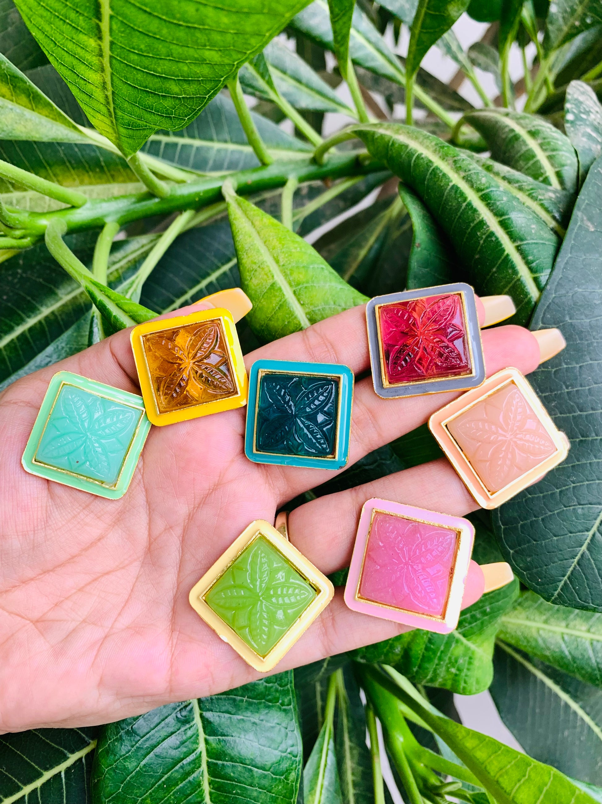 Enhance your fashion game with these Square Shaped Meenakari Studs. Crafted in a stunning meenakari style, these square-shaped studs are a perfect blend of traditional and modern designs. With their versatile design, they can be paired with any outfit, adding a touch of elegance to your look.