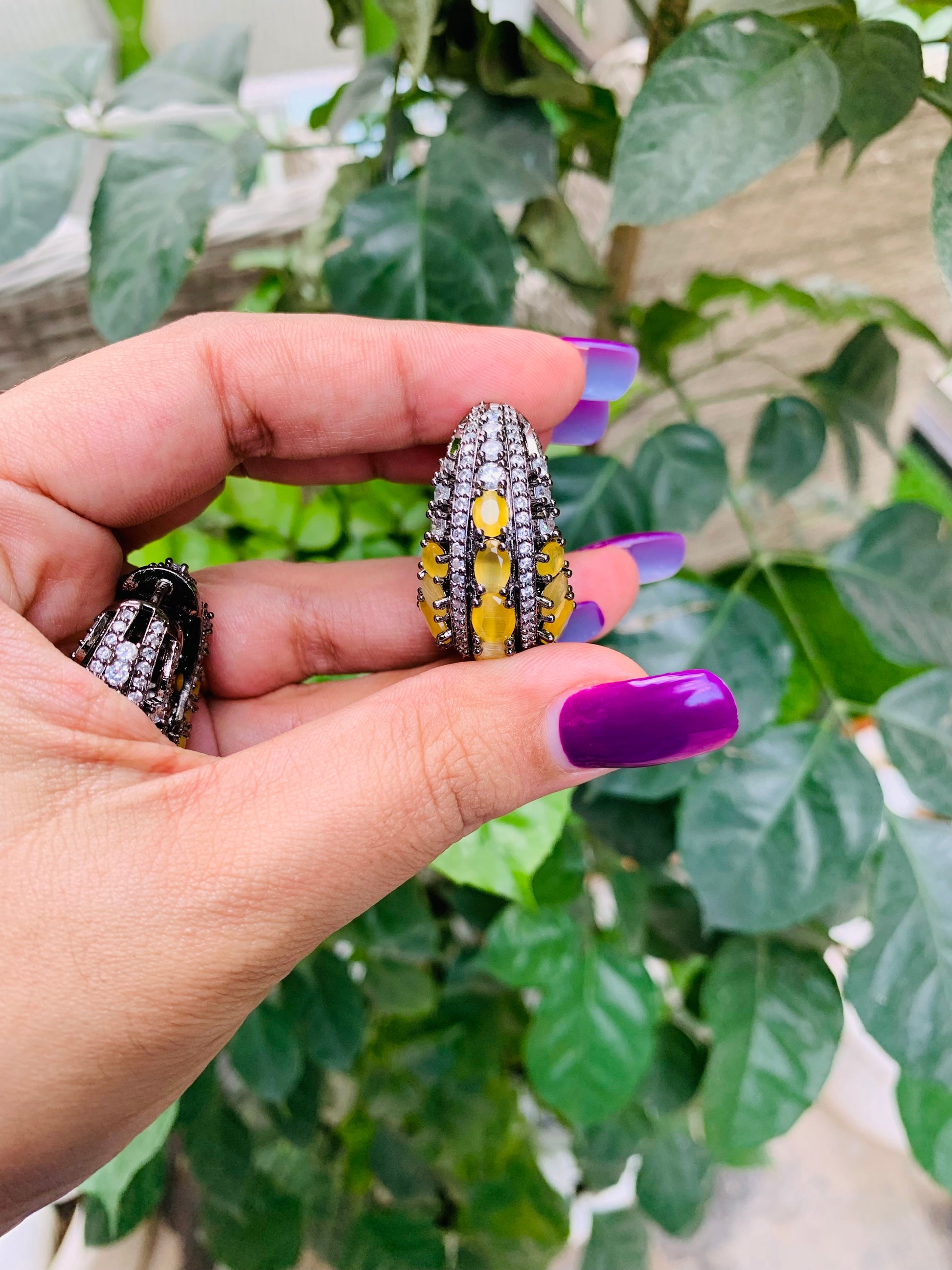 These are evergreen and are a perfect match for everyday office wear or party wear. These American diamond earrings are a must-have for every woman's collection.