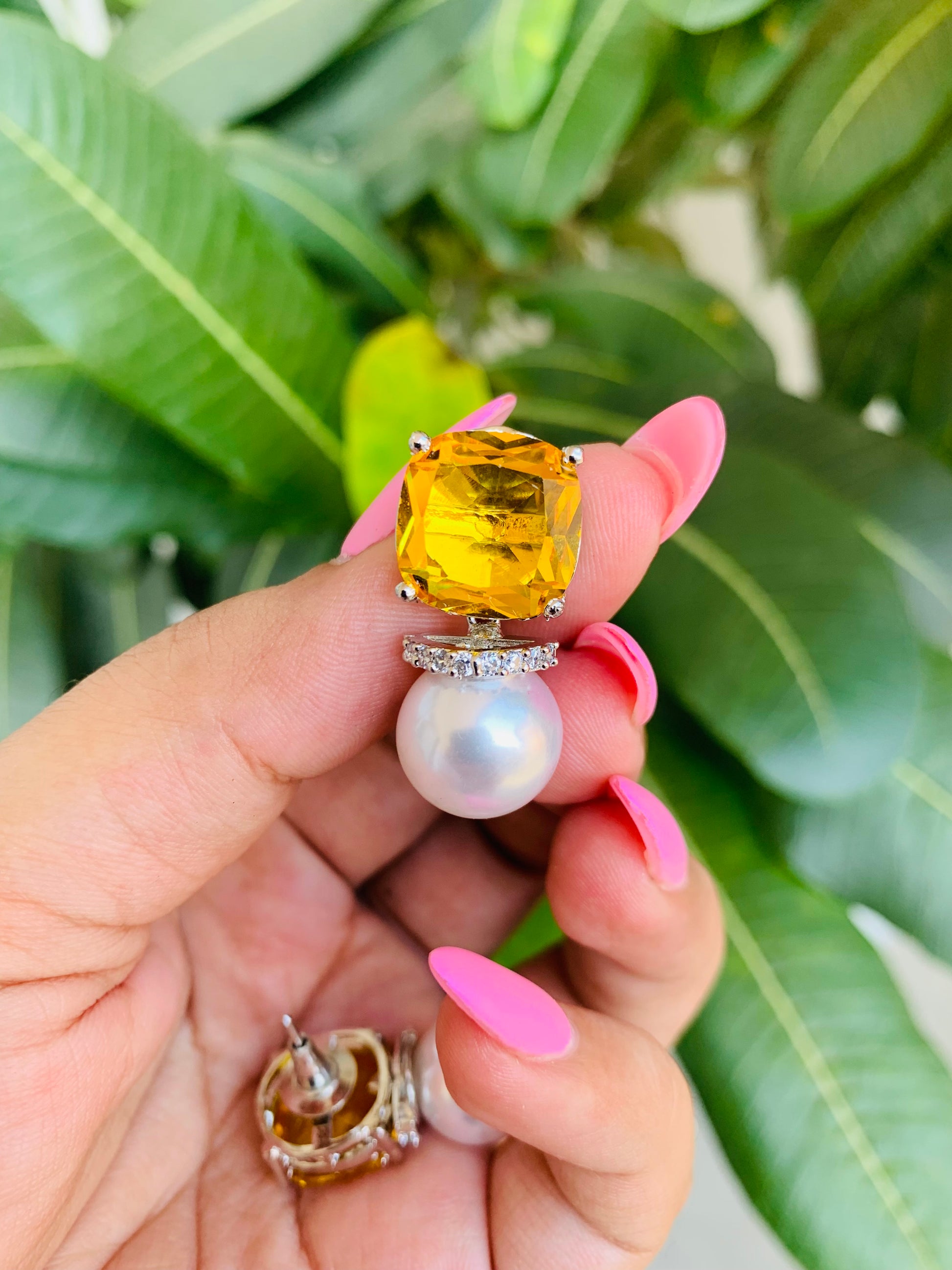 The perfect bright studs for your party wear classy outfits. These are light studs with a sweet little pearl.