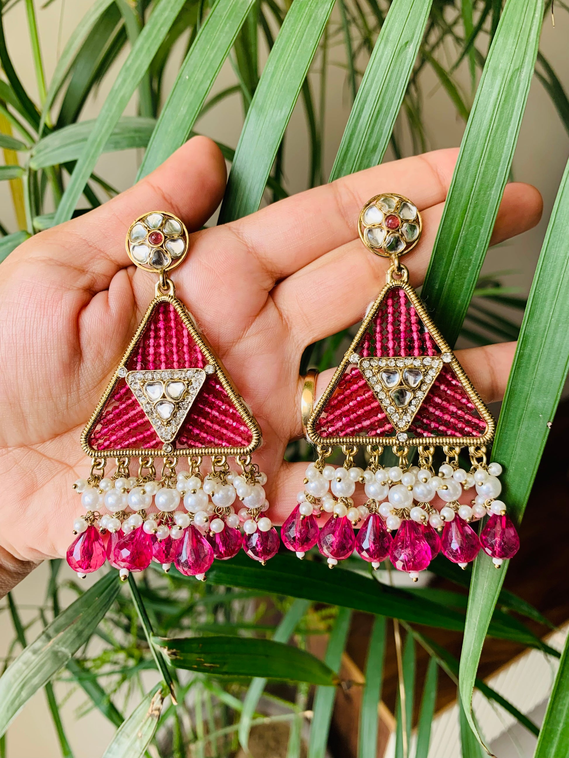 Expertly crafted with a modern twist, these Triangle Pearl Drop Earrings are a must-have for any jewelry collection. The unique triangle shape adds a touch of sophistication, while the pearl drop adds a touch of elegance. Perfect for any occasion, these earrings are sure to make a statement.