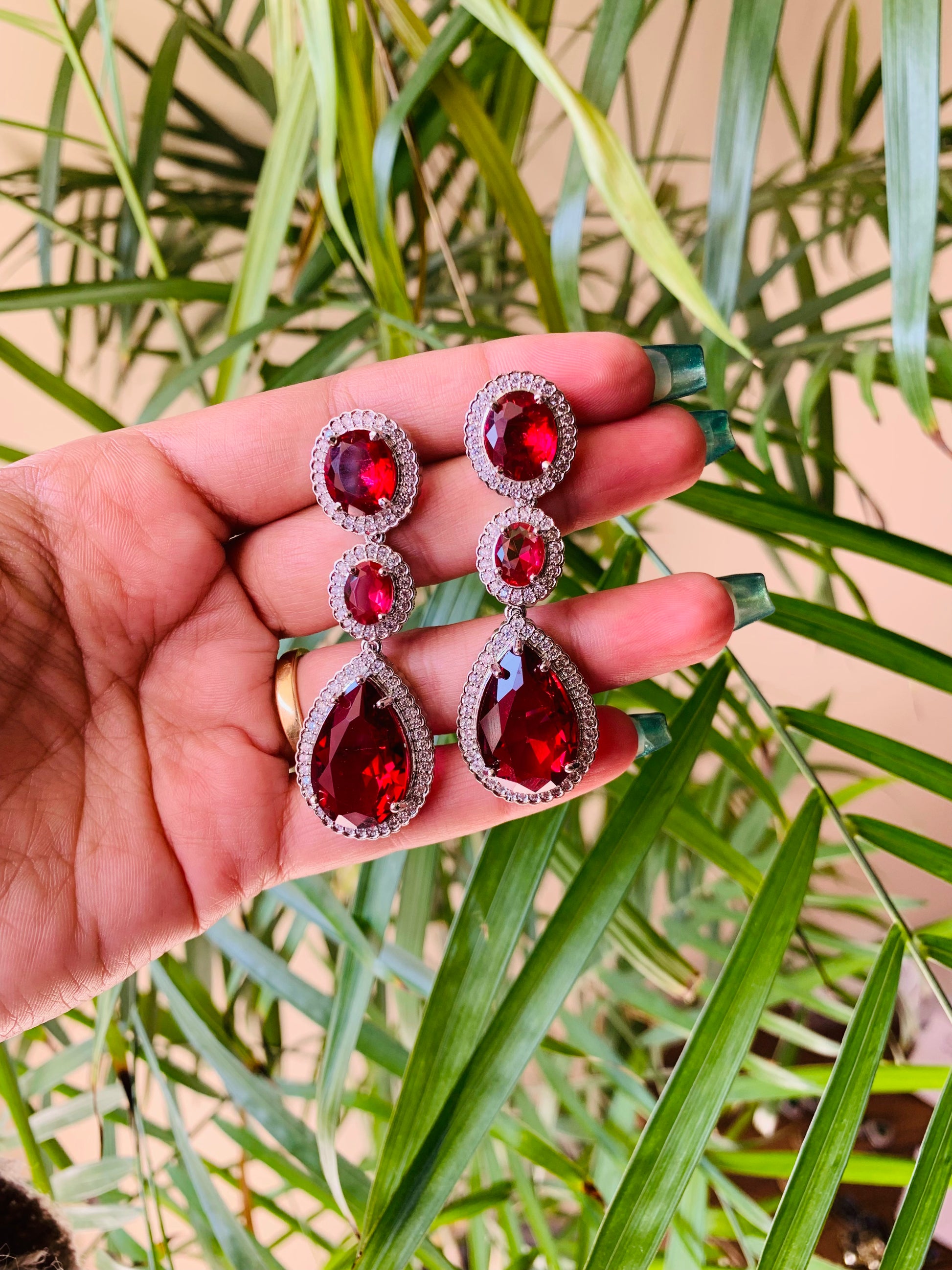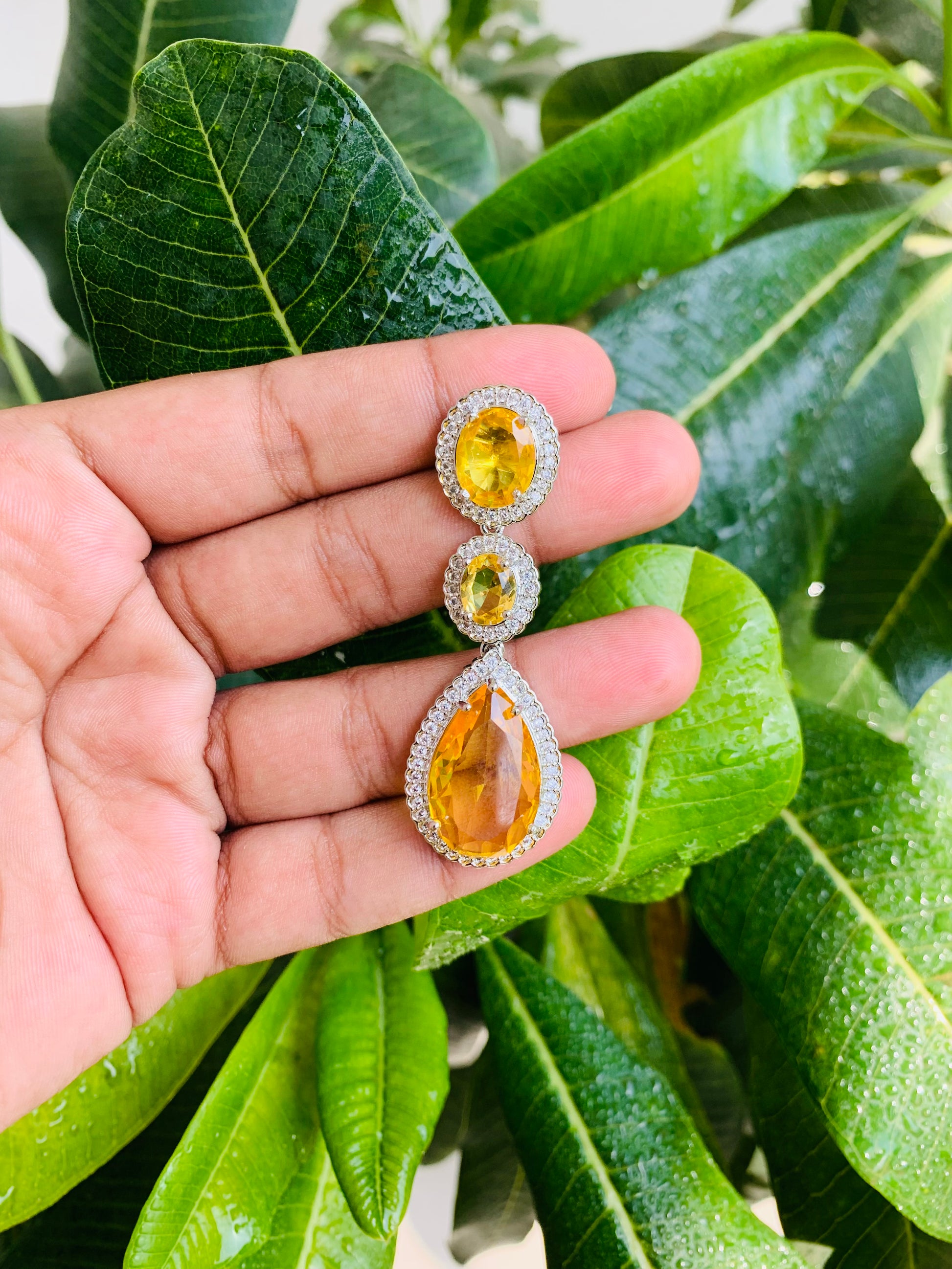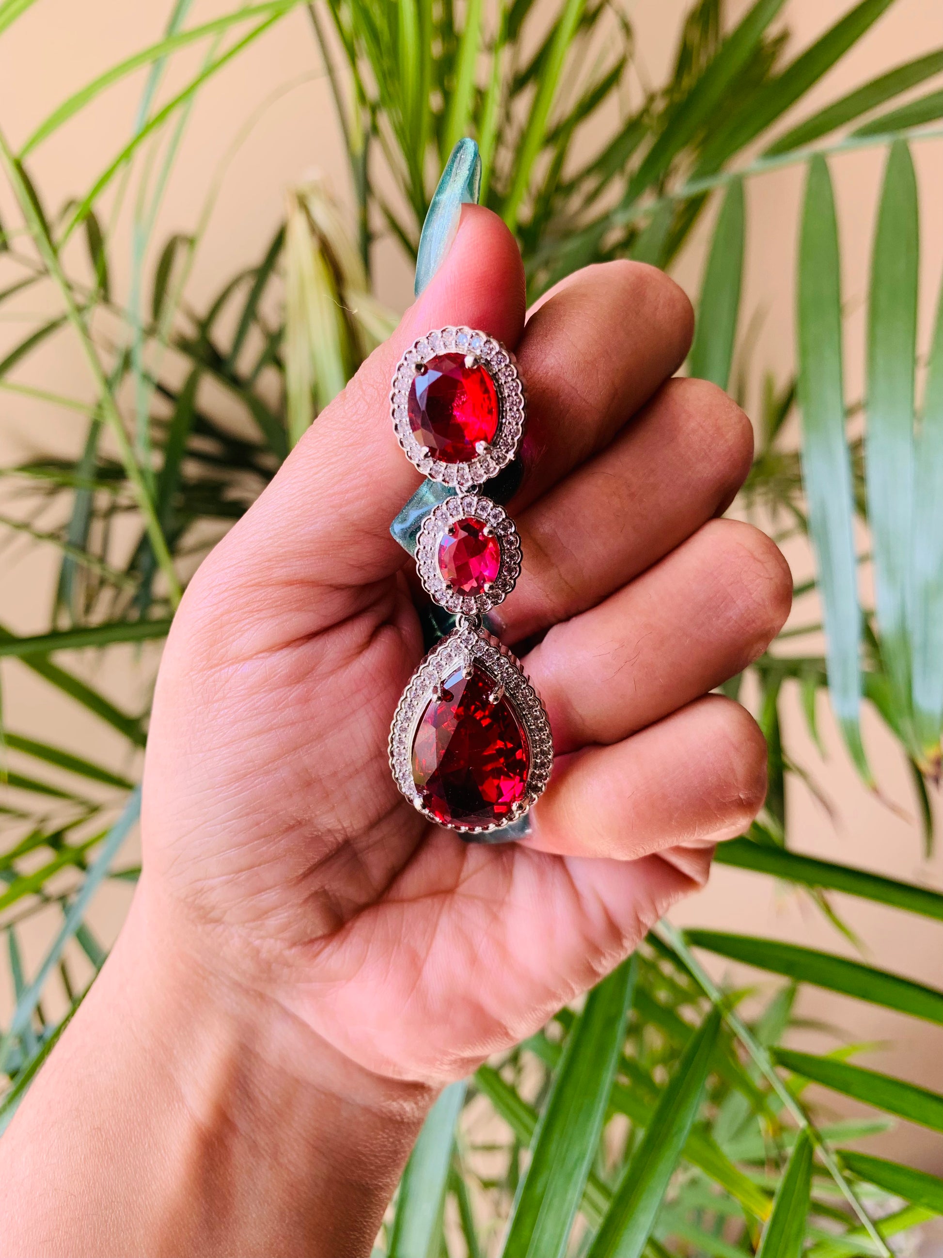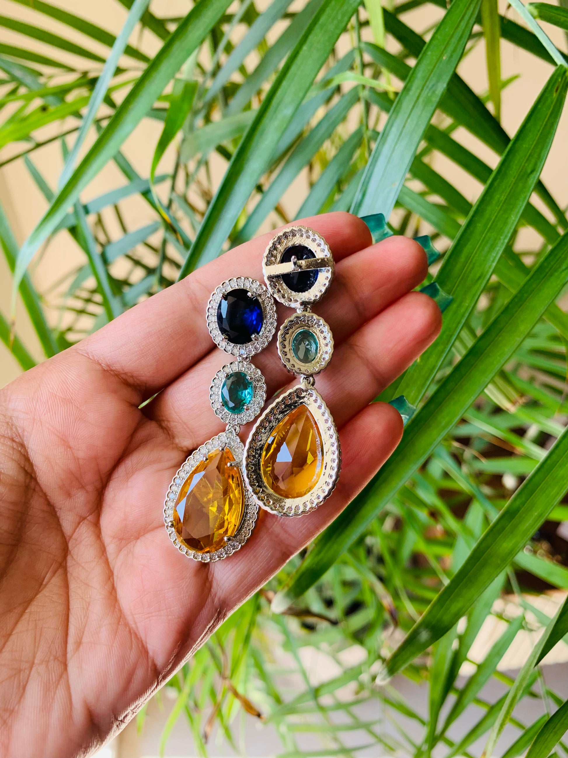 Expertly handcrafted with three layers of stunning Swarovski stones, these danglers are a must-have for any fashion-forward individual. The layered design provides a unique and eye-catching look, making them the perfect accessory to elevate any outfit. Add a touch of elegance and sophistication to your wardrobe with these exquisite earrings.