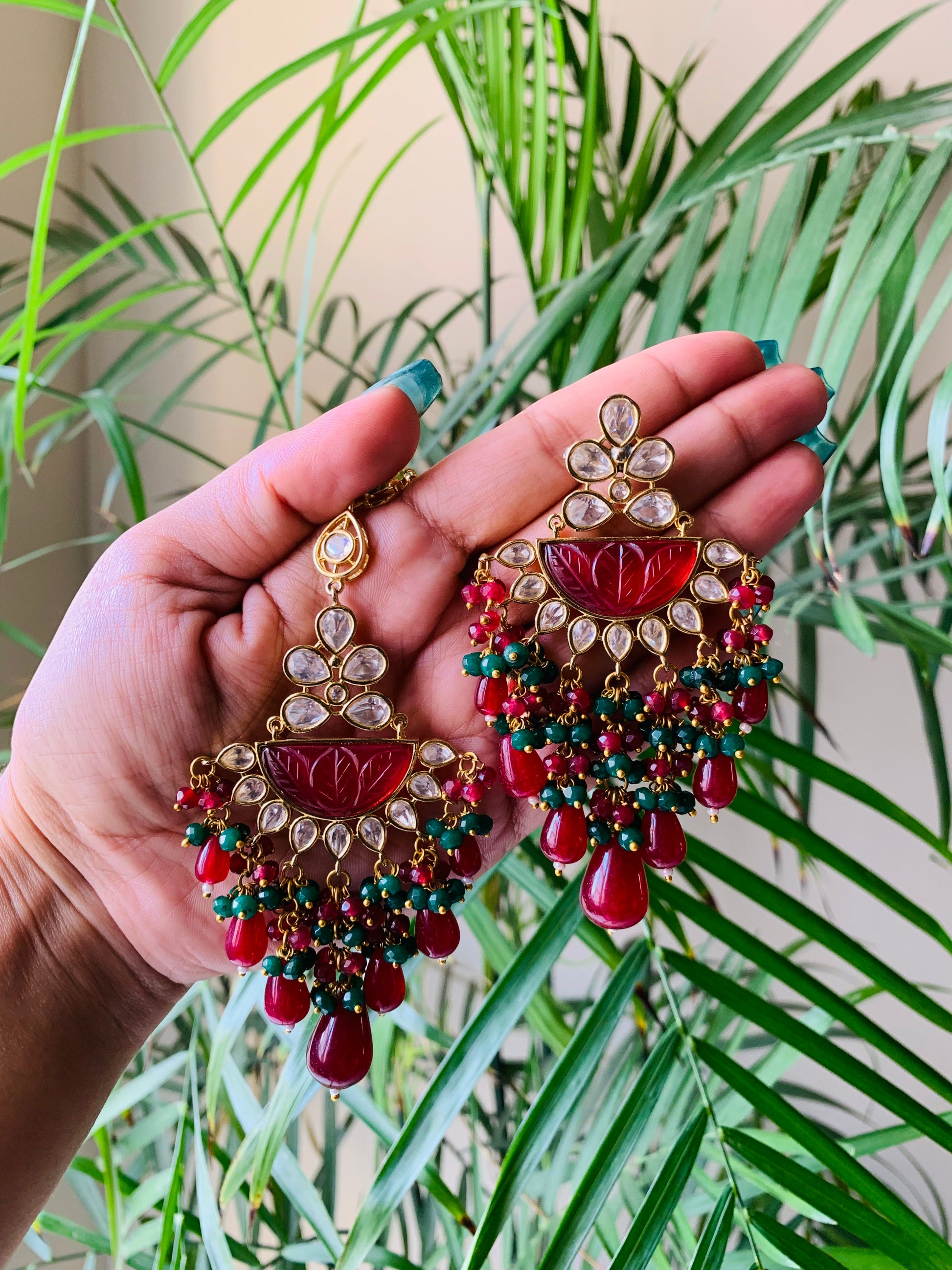 Tyani Kundan Maroon Earrings with Maang Tikka