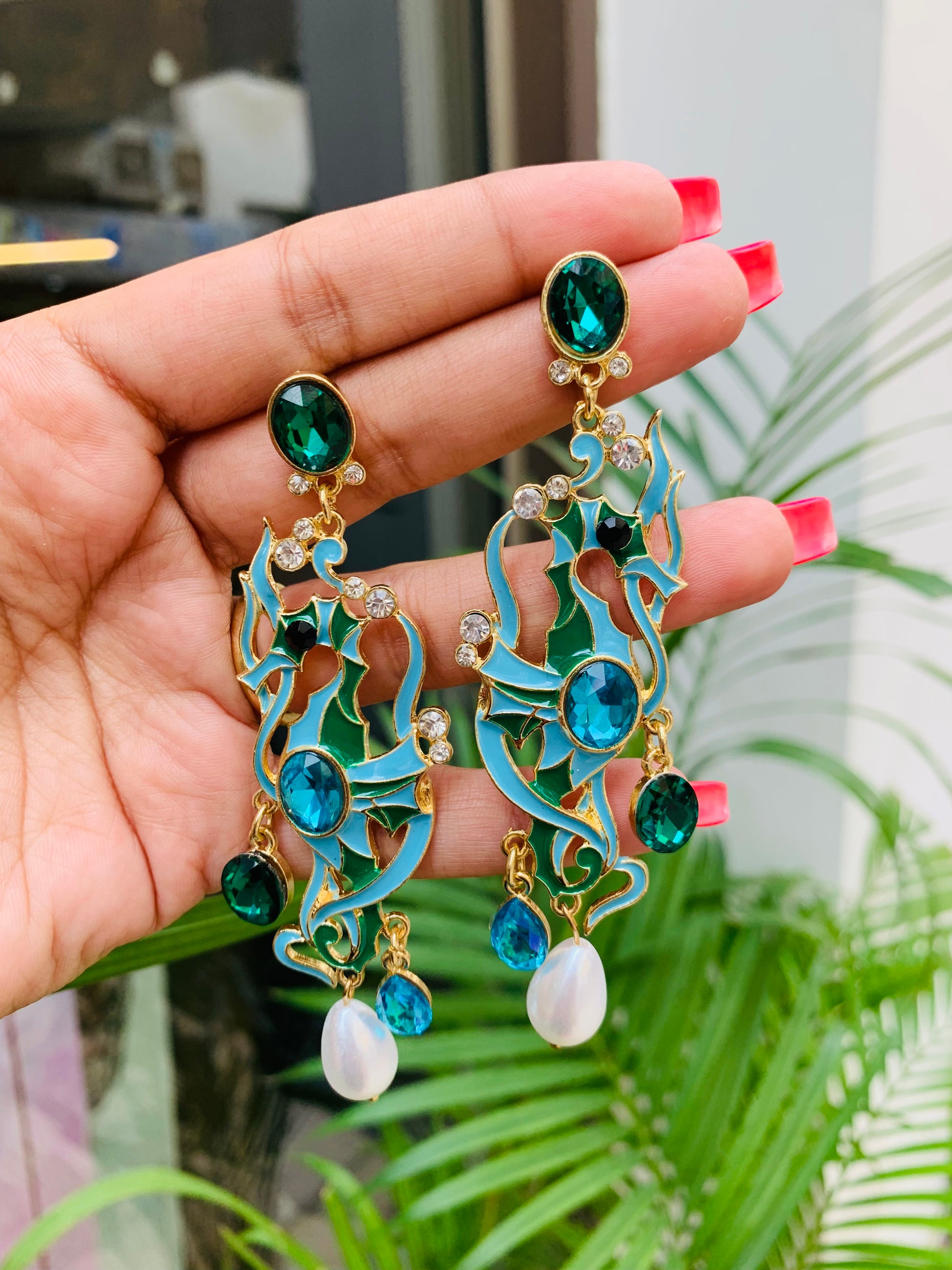 These unique western danglers add a charming accent to your look. They feature a beautiful combination of stones and pearl drops for a stylishly rustic look. An eye-catching addition to any ensemble.