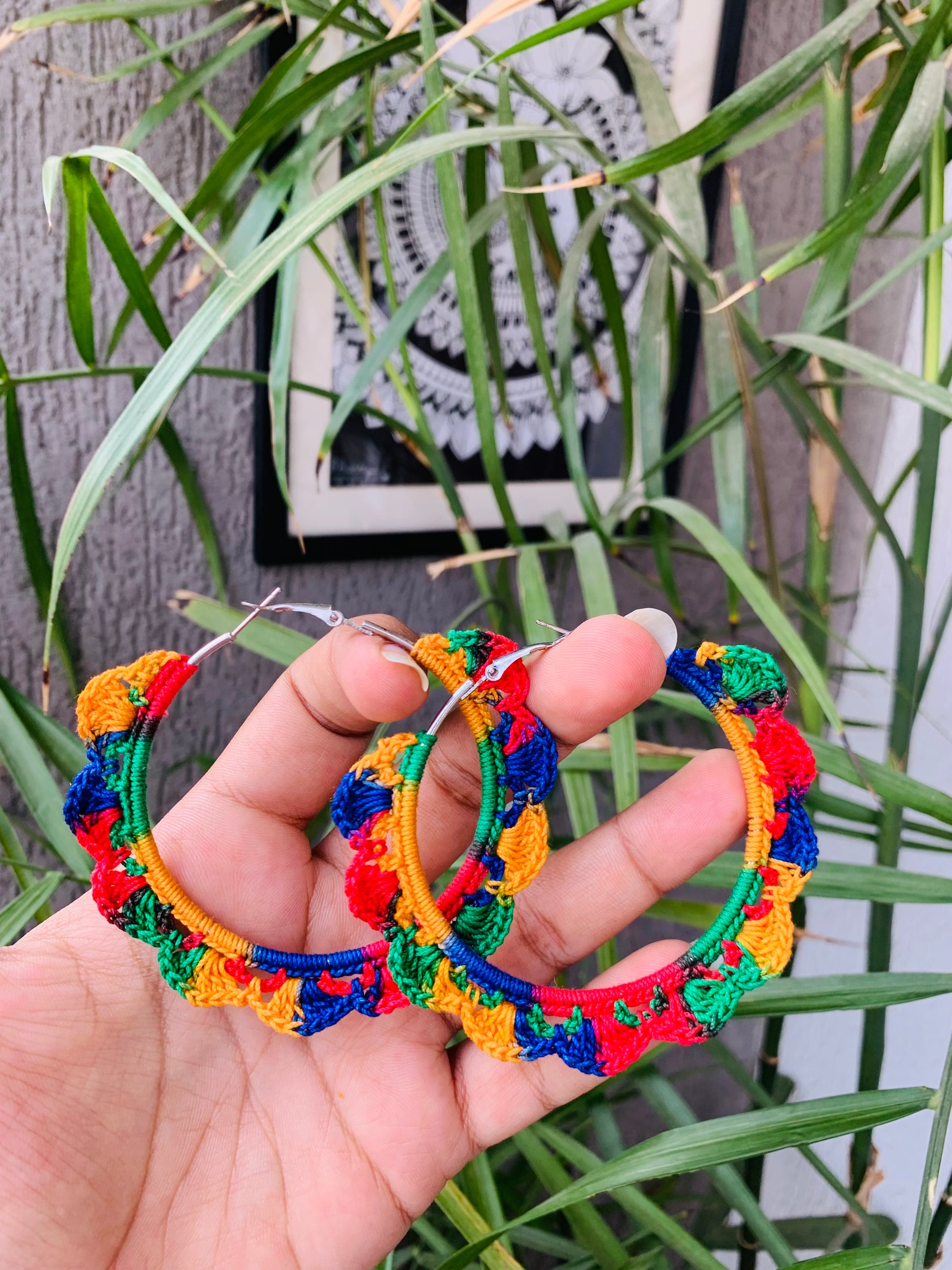 These multicolor handmade hoops are a beautiful and unique addition to any jewelry collection. Made with expert craftsmanship, each hoop features a vibrant mix of colors. Perfect for adding a pop of color to any outfit.